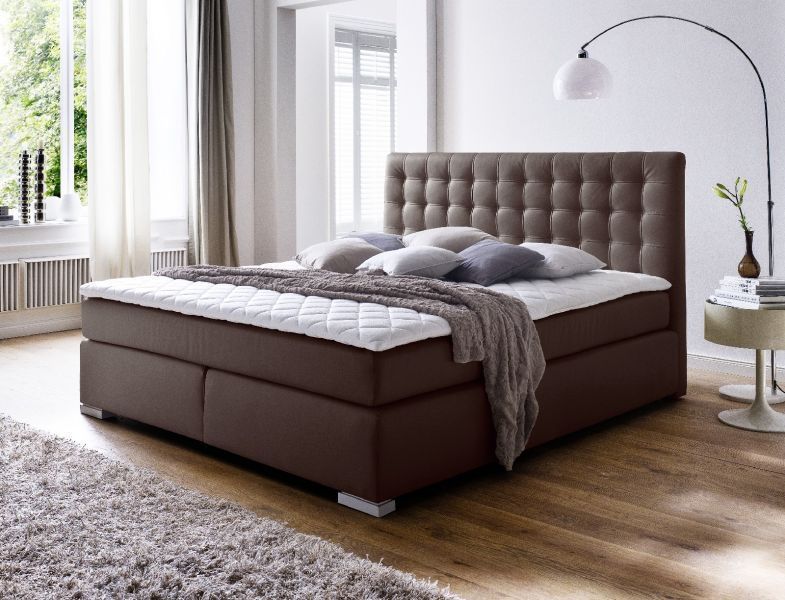 Boxspringbett Isabelle 180 x 200 cm Leder Optik braun 7 Zonen Tonnentaschenfederkern