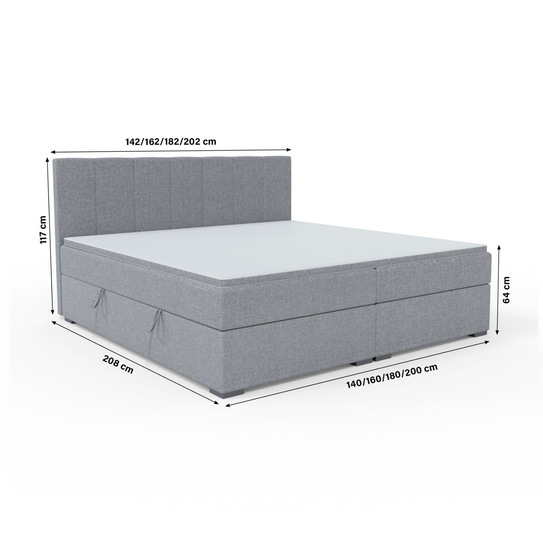 Boxspringbett Kolorado 2 Bettkästen Bonell-Matratze und Topper 140/160/180/200x200