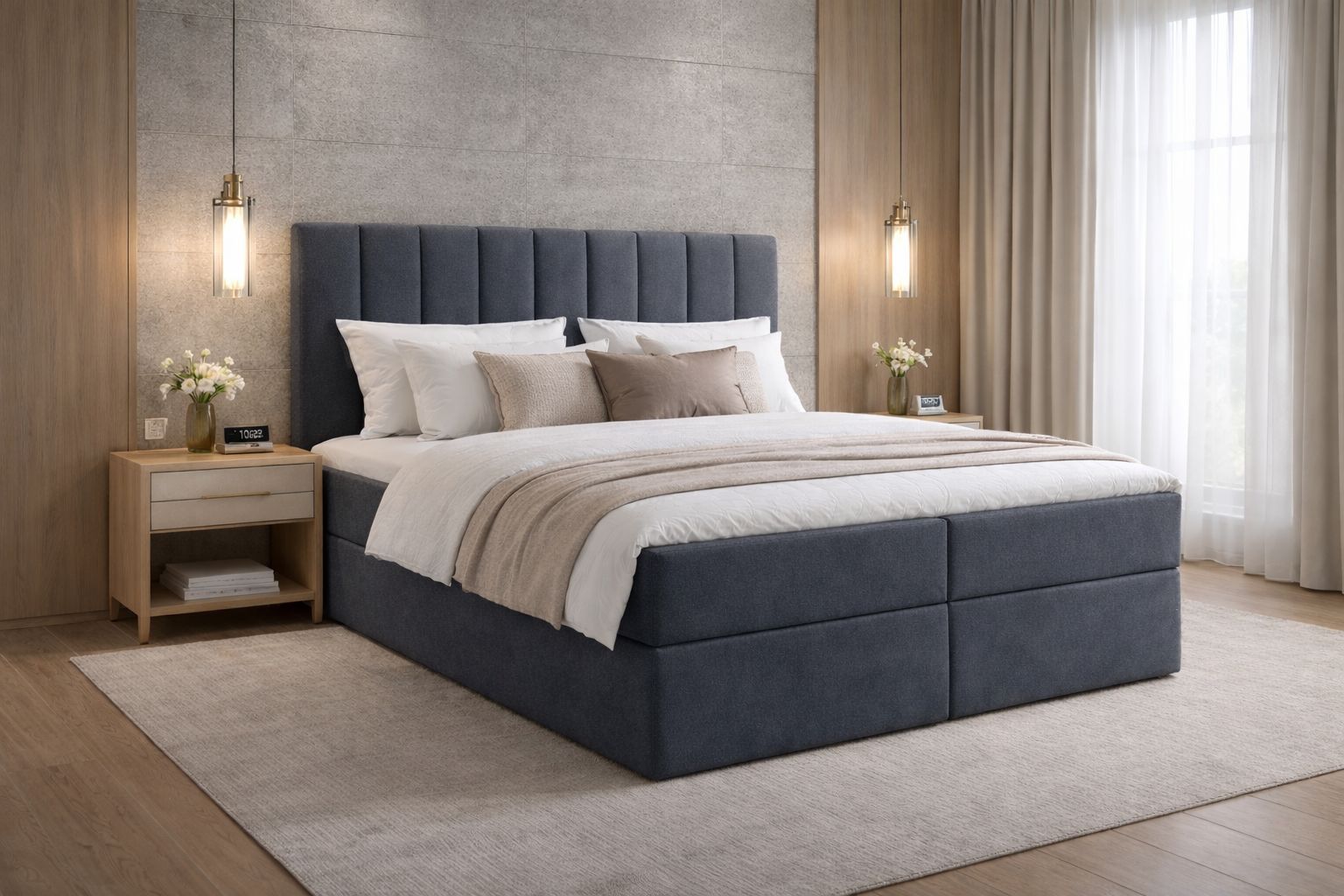 Boxspringbett LAMERE 140x200 mit Bettkasten + Bonell-Matratze & Topper, Polsterbett