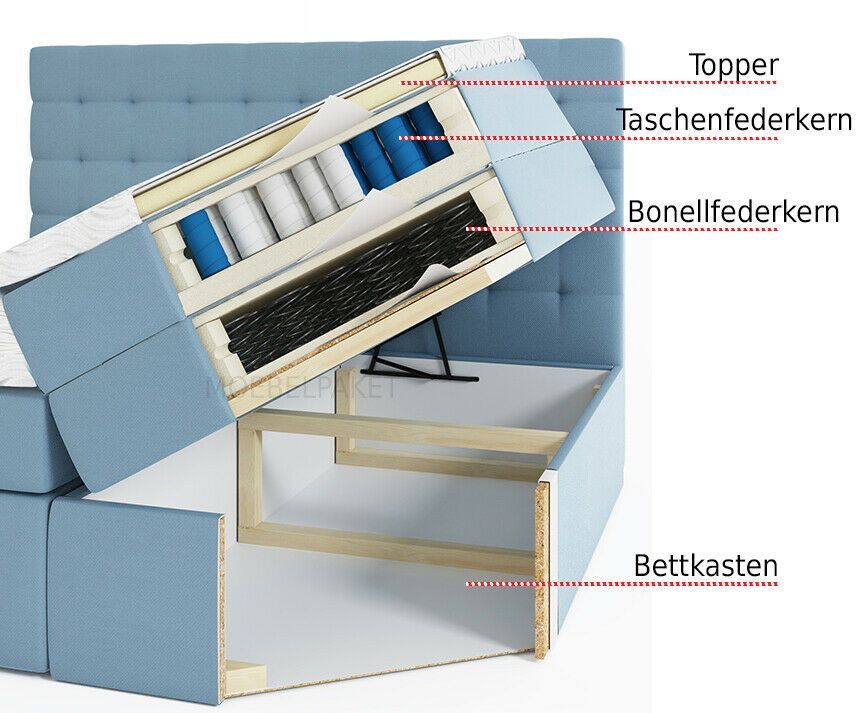 Boxspringbett MAGNUS mit Bettkasten und Topper Ehebett140 160 180 200 Qualität