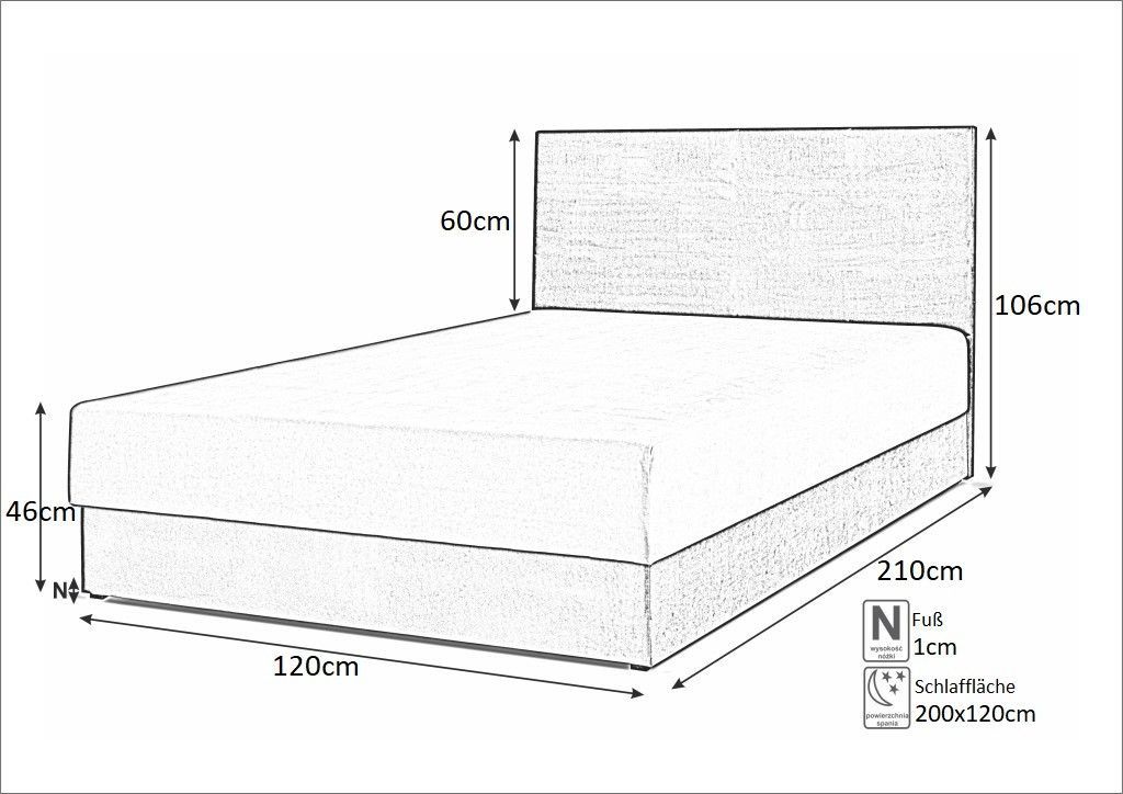 Boxspringbett Majorka mit Matratze 120 cm Bettkasten inklusive Matratze Doppelbett