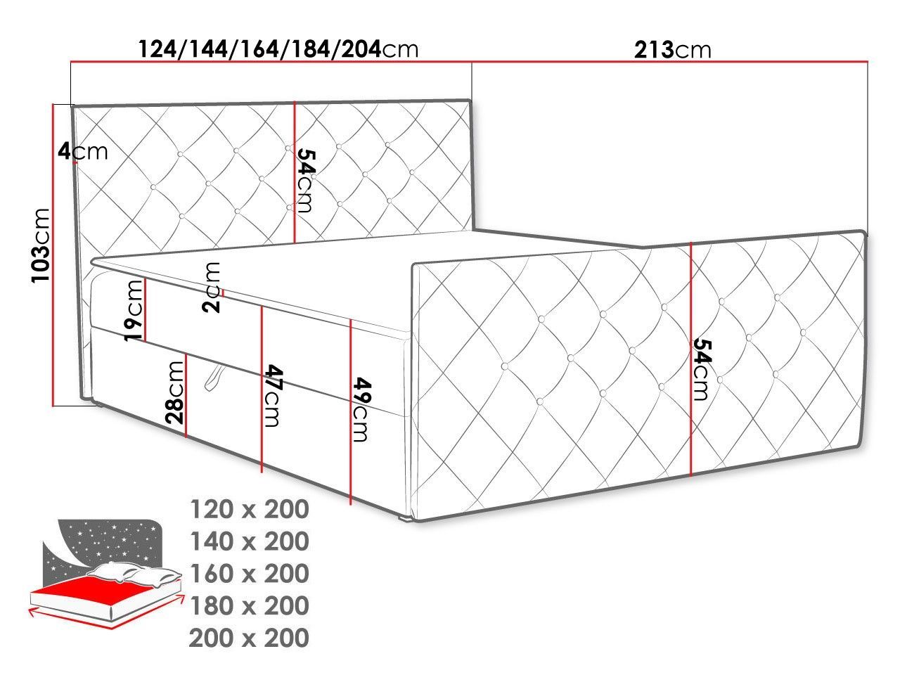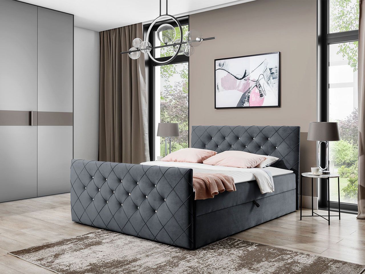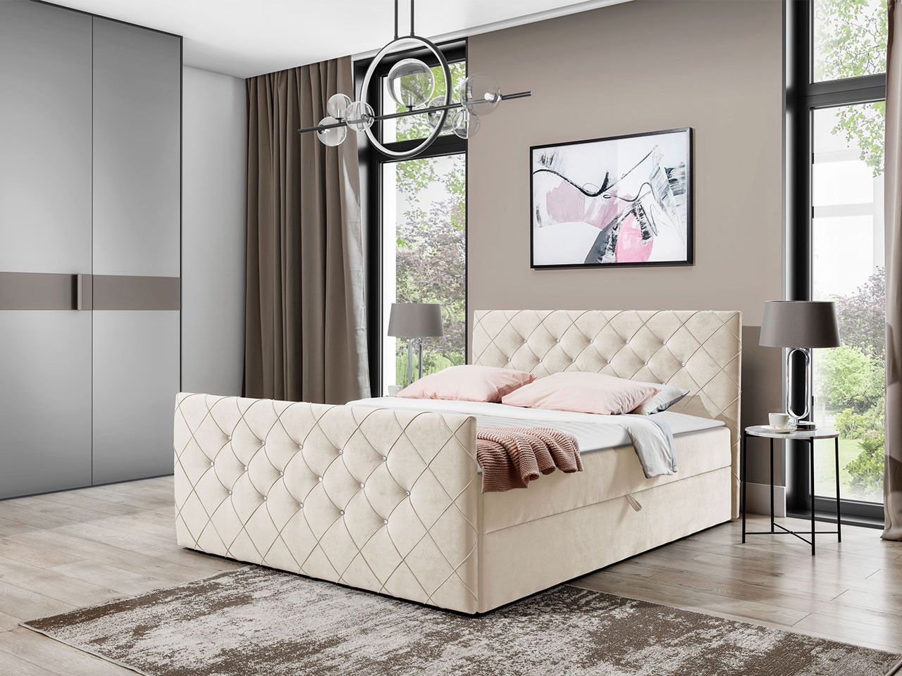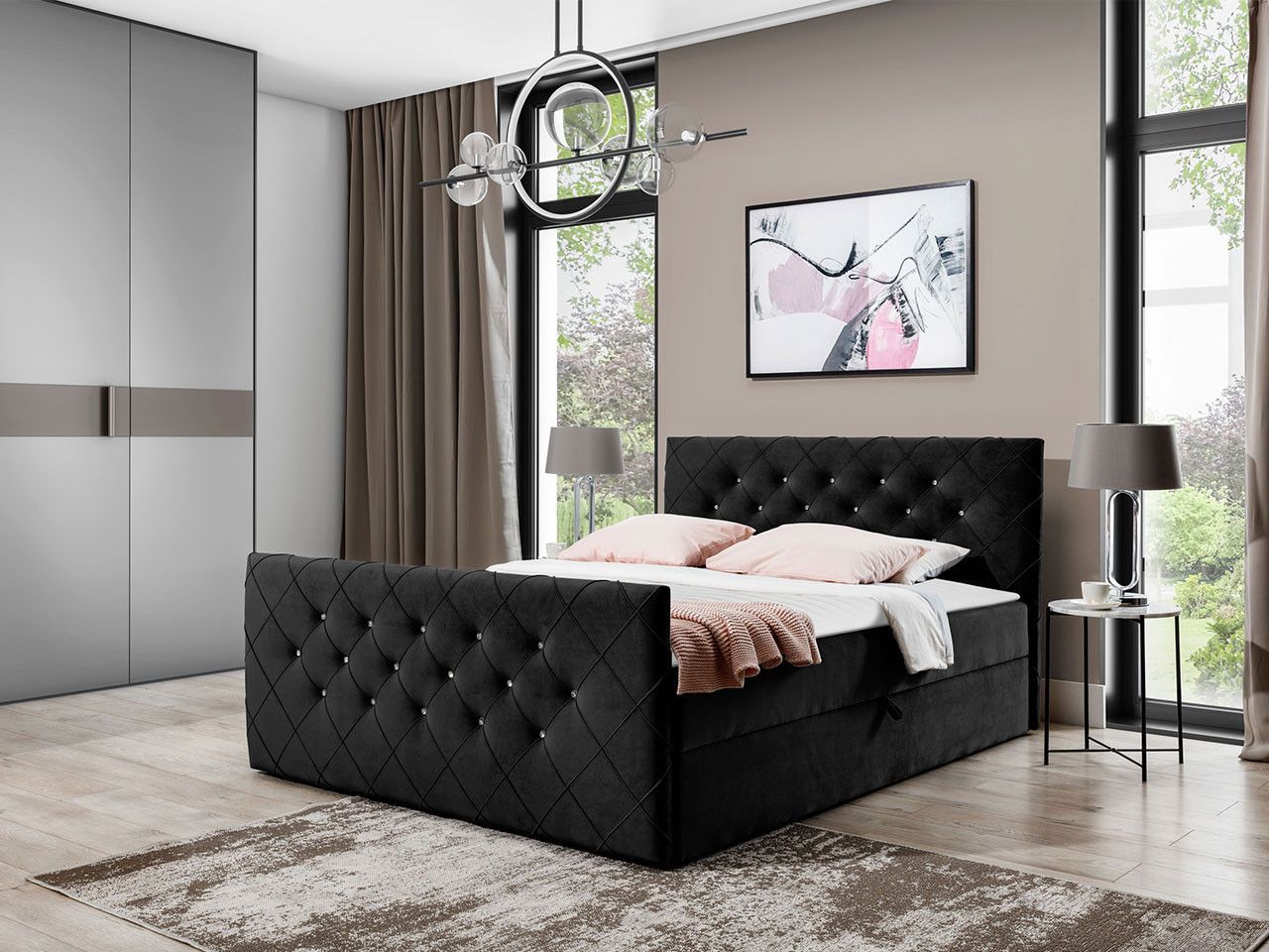 Boxspringbett Malaga Stilvoll Doppelbett mit zwei Bettkästen Design Schlafzimmer