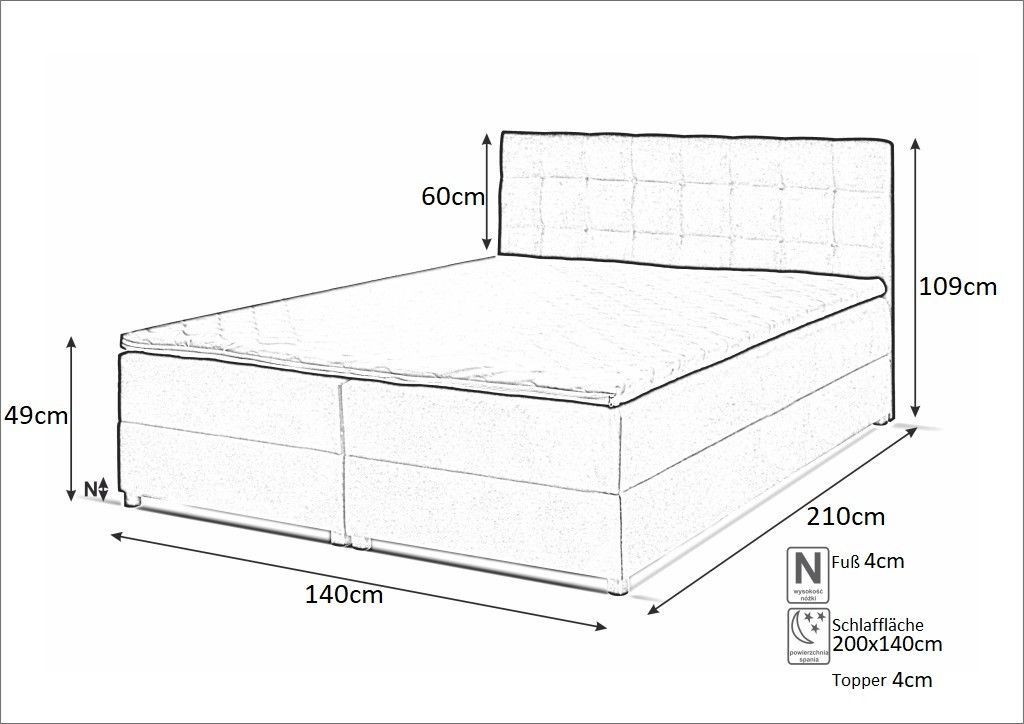 Boxspringbett MALMO mit Topper 140 cm zwei Bettkästen Matratze Doppelbett mit Topper