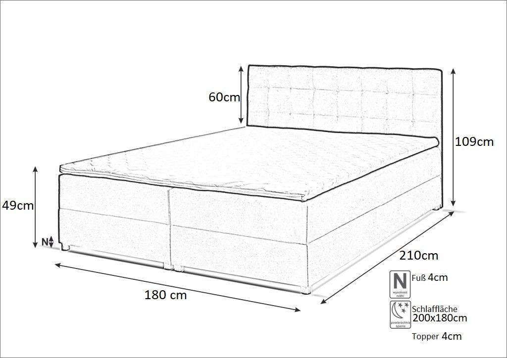 Boxspringbett MALMO mit Topper 180 cm zwei Bettkästen Matratze Doppelbett mit Topper