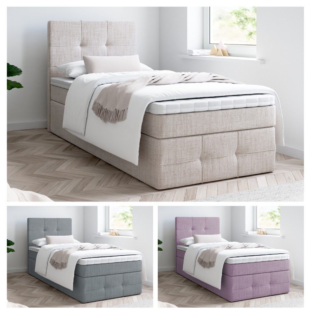 Boxspringbett MERA Premium MINI mit Bettkästen, Topper H3, Einzelbett, Stauraum