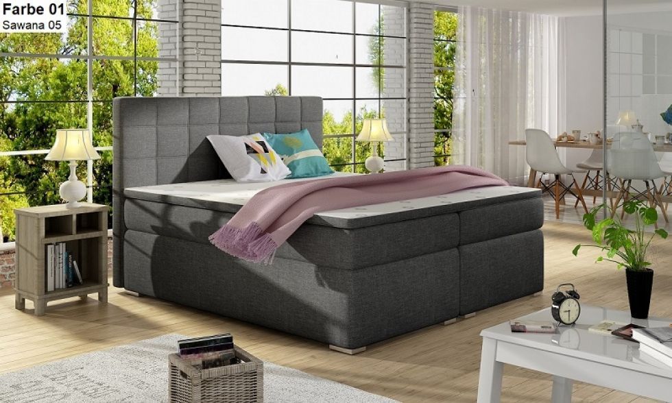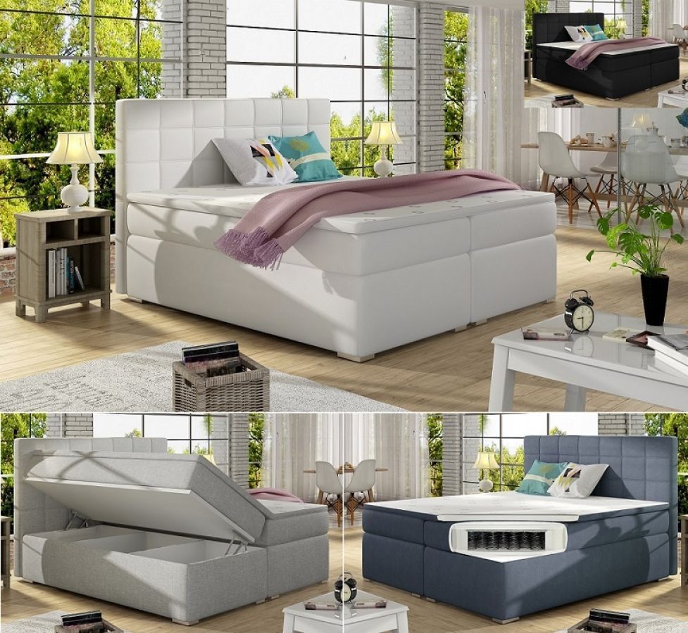 Boxspringbett mit 2 Bettkasten AIDA 180x200 Polsterbett weiß grau schwarz Farbauswahl
