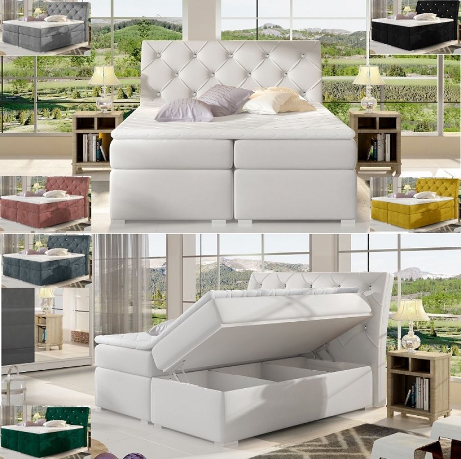 Boxspringbett mit 2 Bettkasten Beverly 160x200 Polsterbett weiß grau schwarz beige