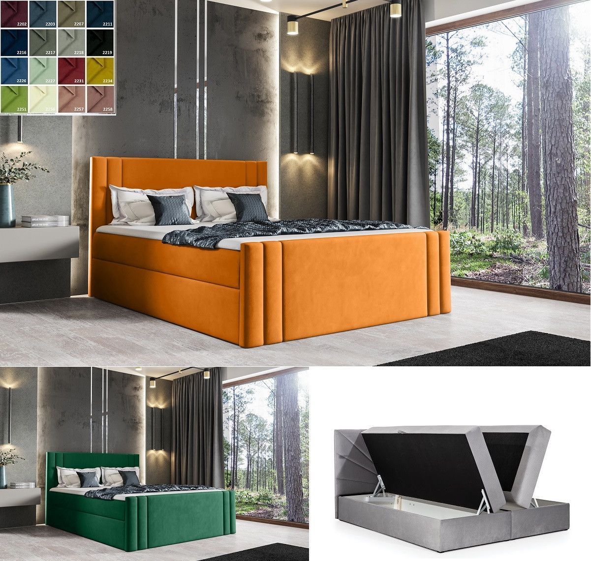 Boxspringbett mit 2 Bettkasten CARIS 140/160/180x200 Polsterbett weiß grau schwarz