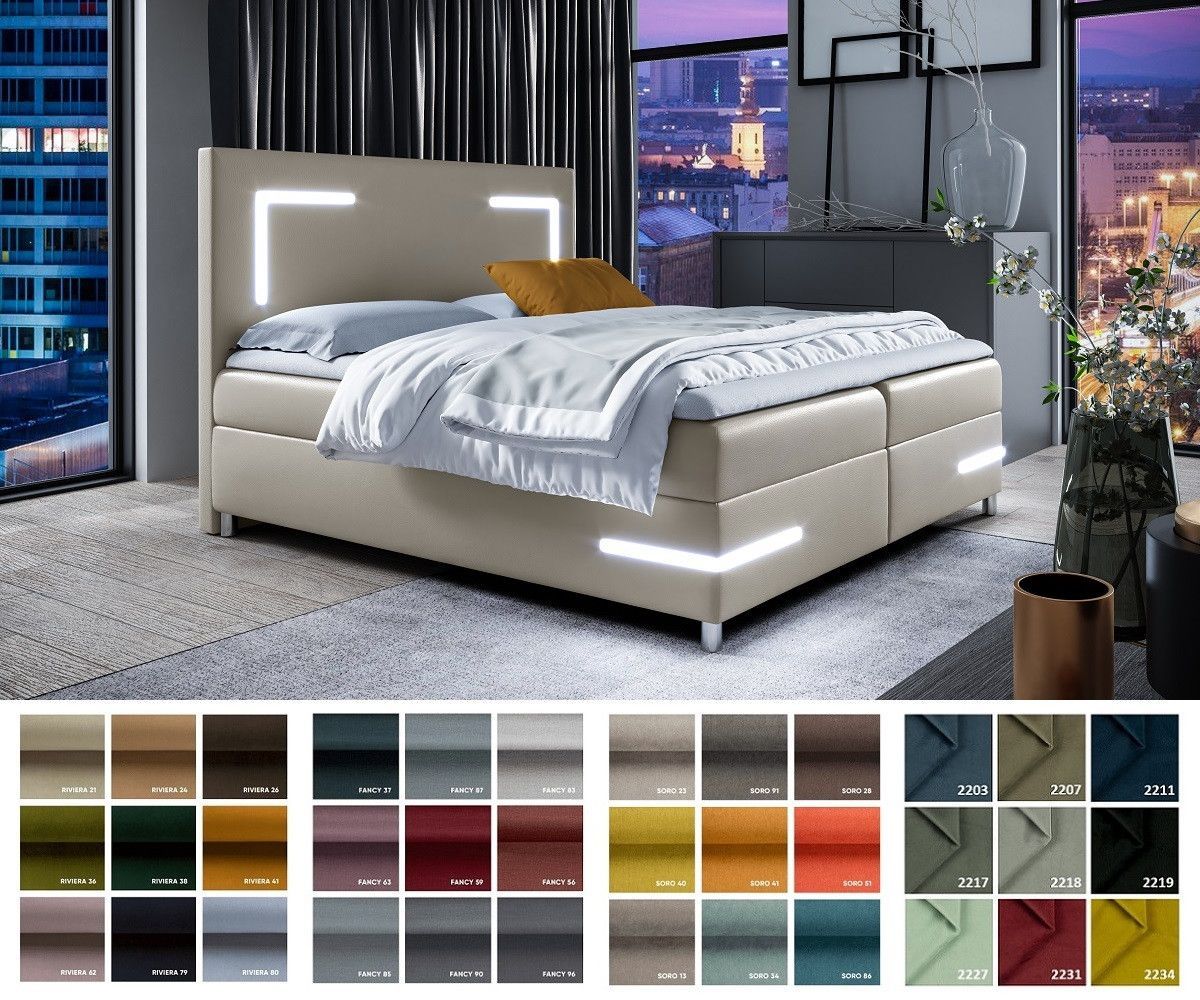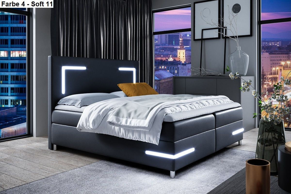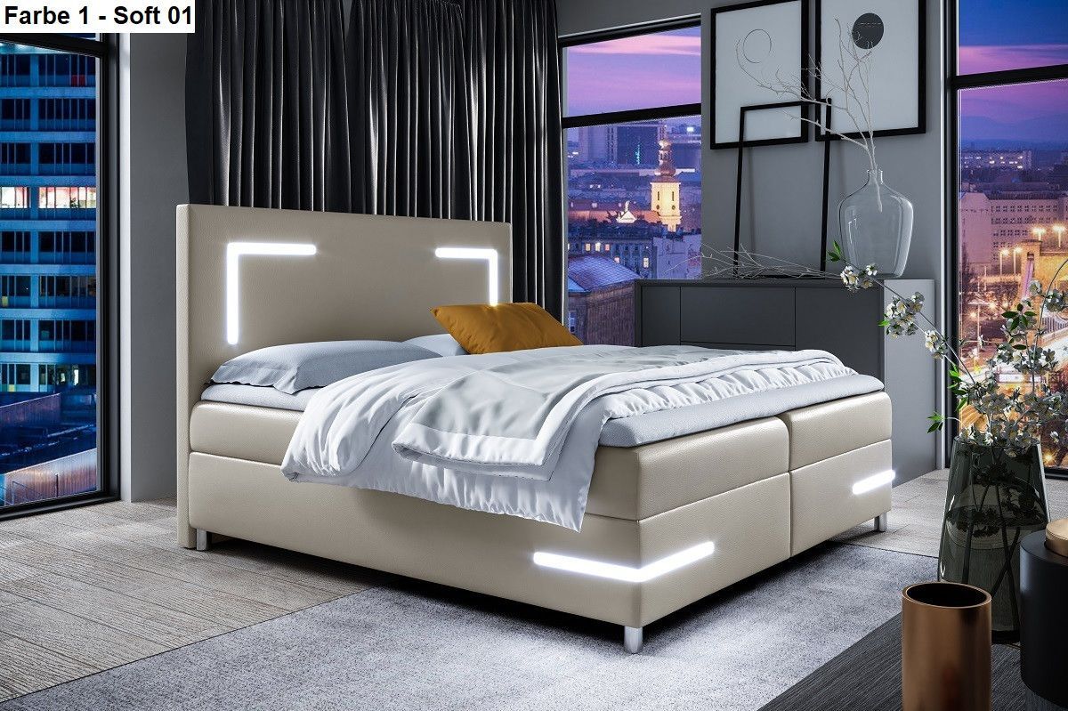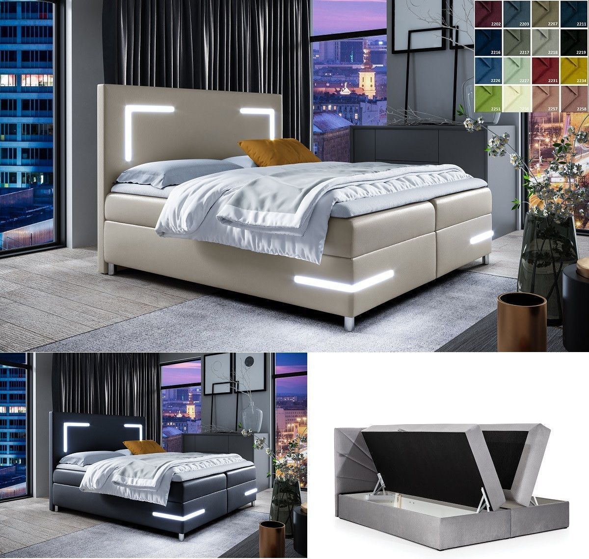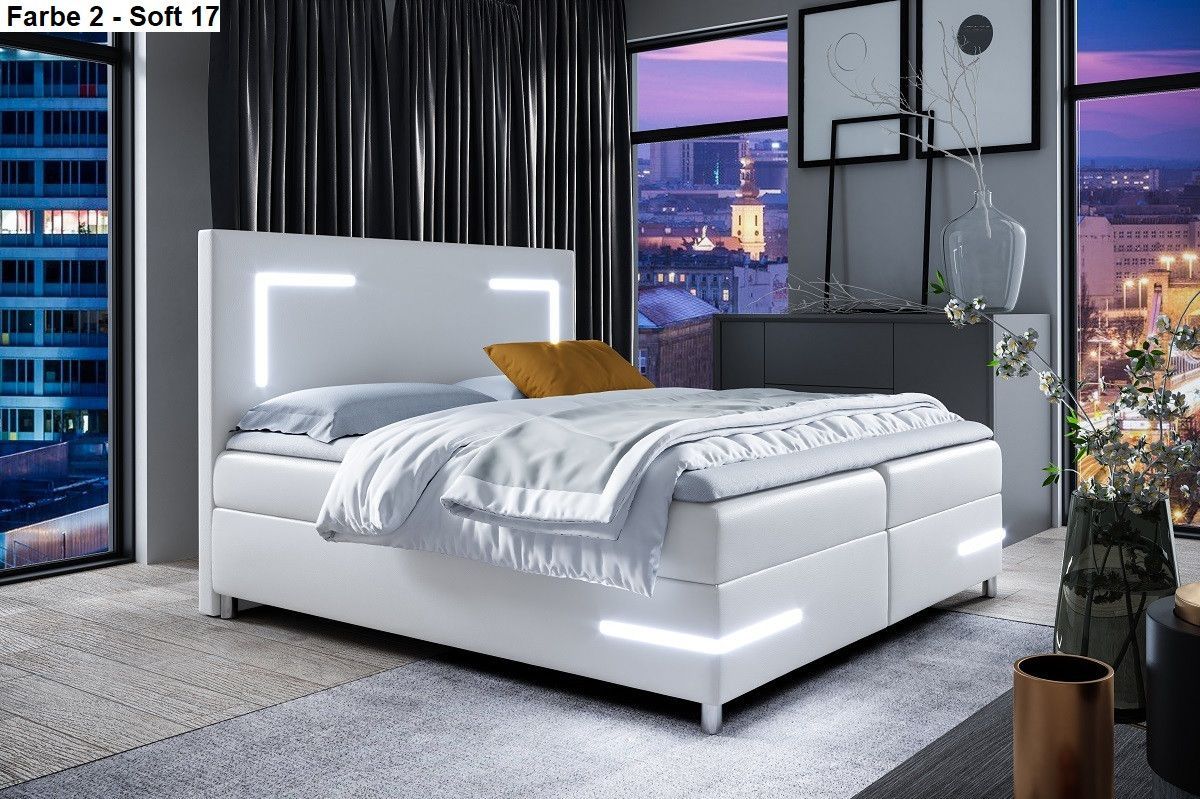 Boxspringbett mit 2 Bettkasten DALLAS 140/160/180x200 Polsterbett mit LED weiß grau