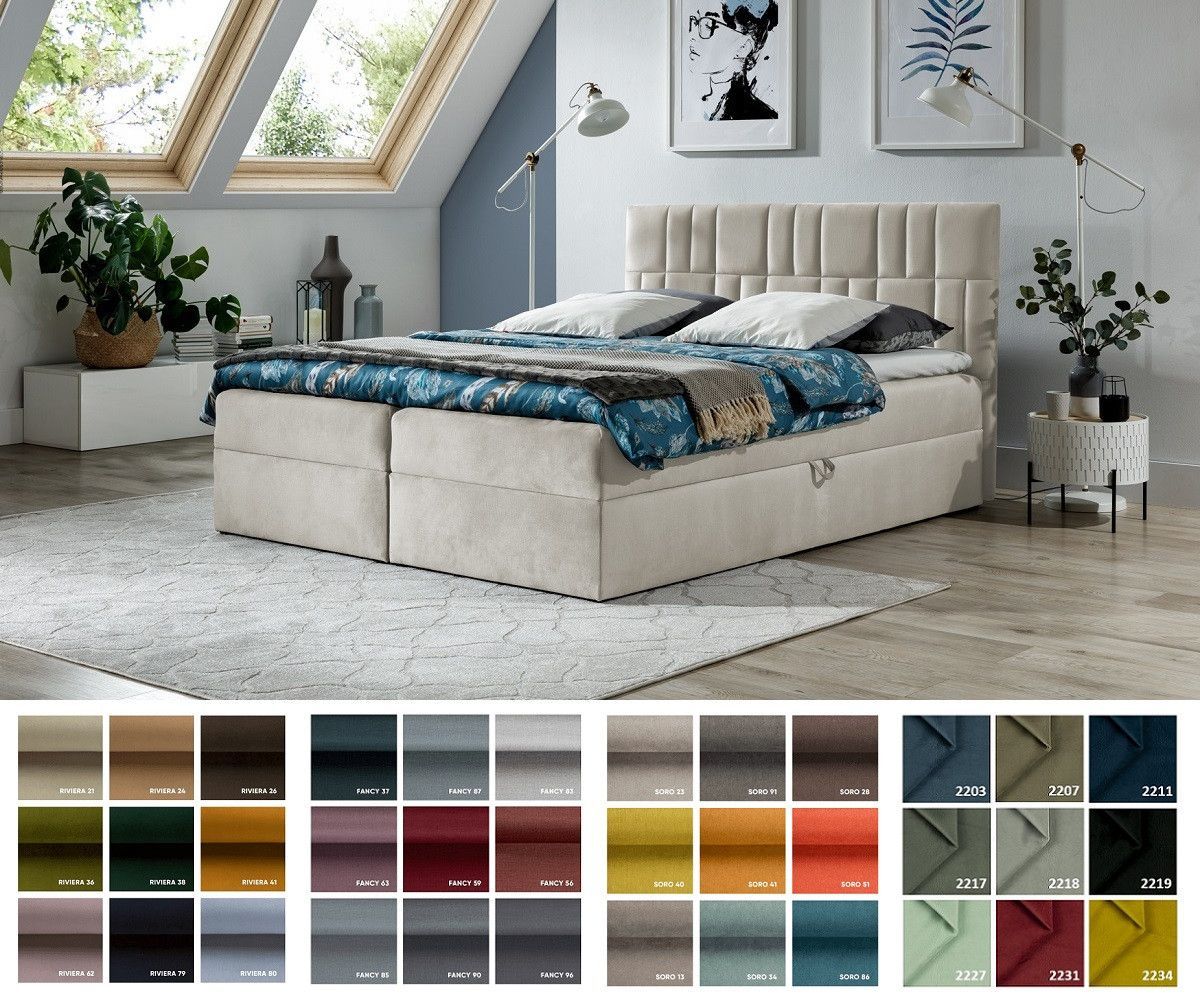 Boxspringbett mit 2 Bettkasten Tim 3 140/160/180x200 Polsterbett weiß grau schwarz