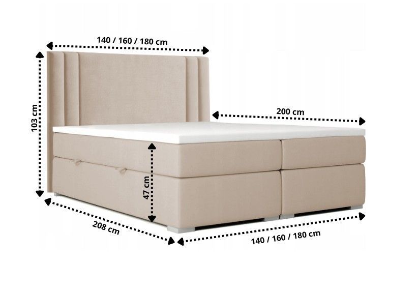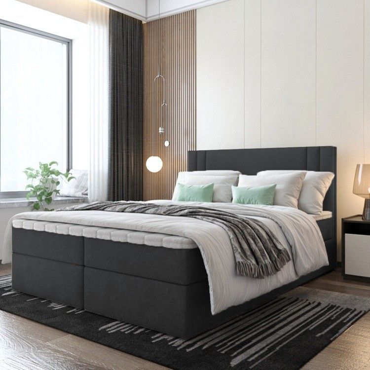 Boxspringbett mit Bettkästen RALI Bett H3 Stauraum Schubladen Topper Kopfteil
