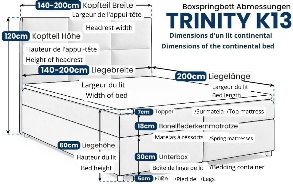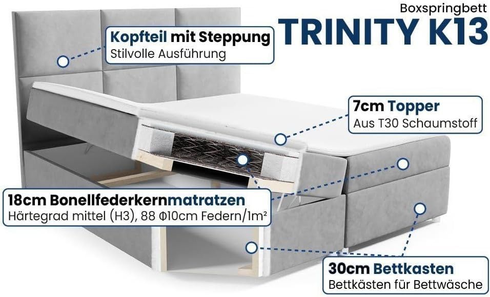 Boxspringbett mit Bettkasten Trinity K-13 Bonellfederkern inkl. Topper