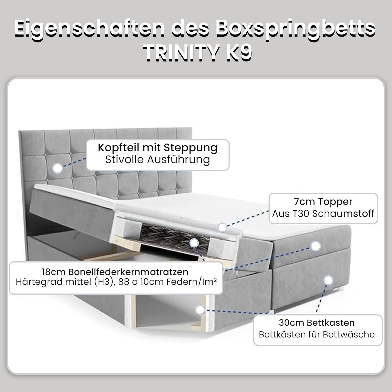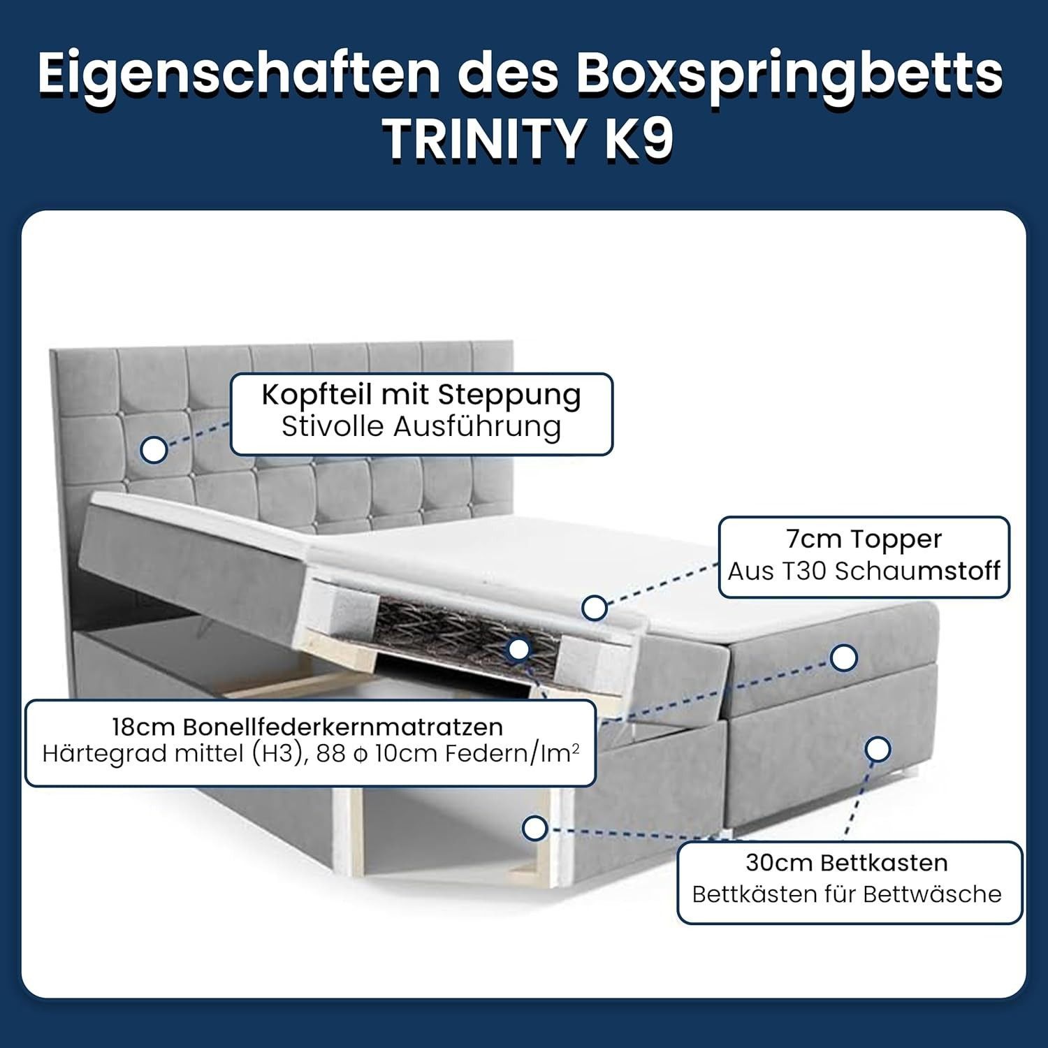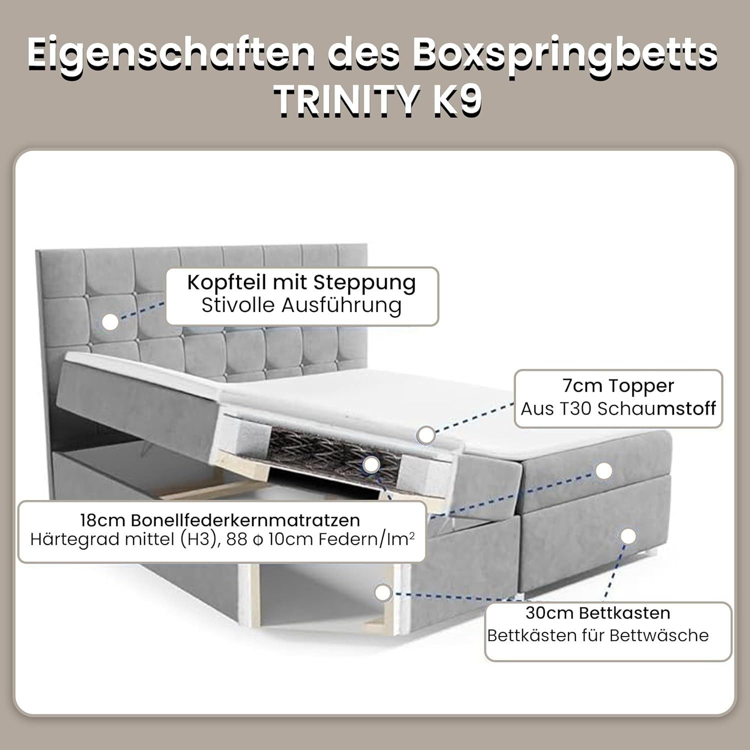 Boxspringbett mit Bettkasten Trinity K-9 Bonellfederkern inkl. Topper, mit Lieferung