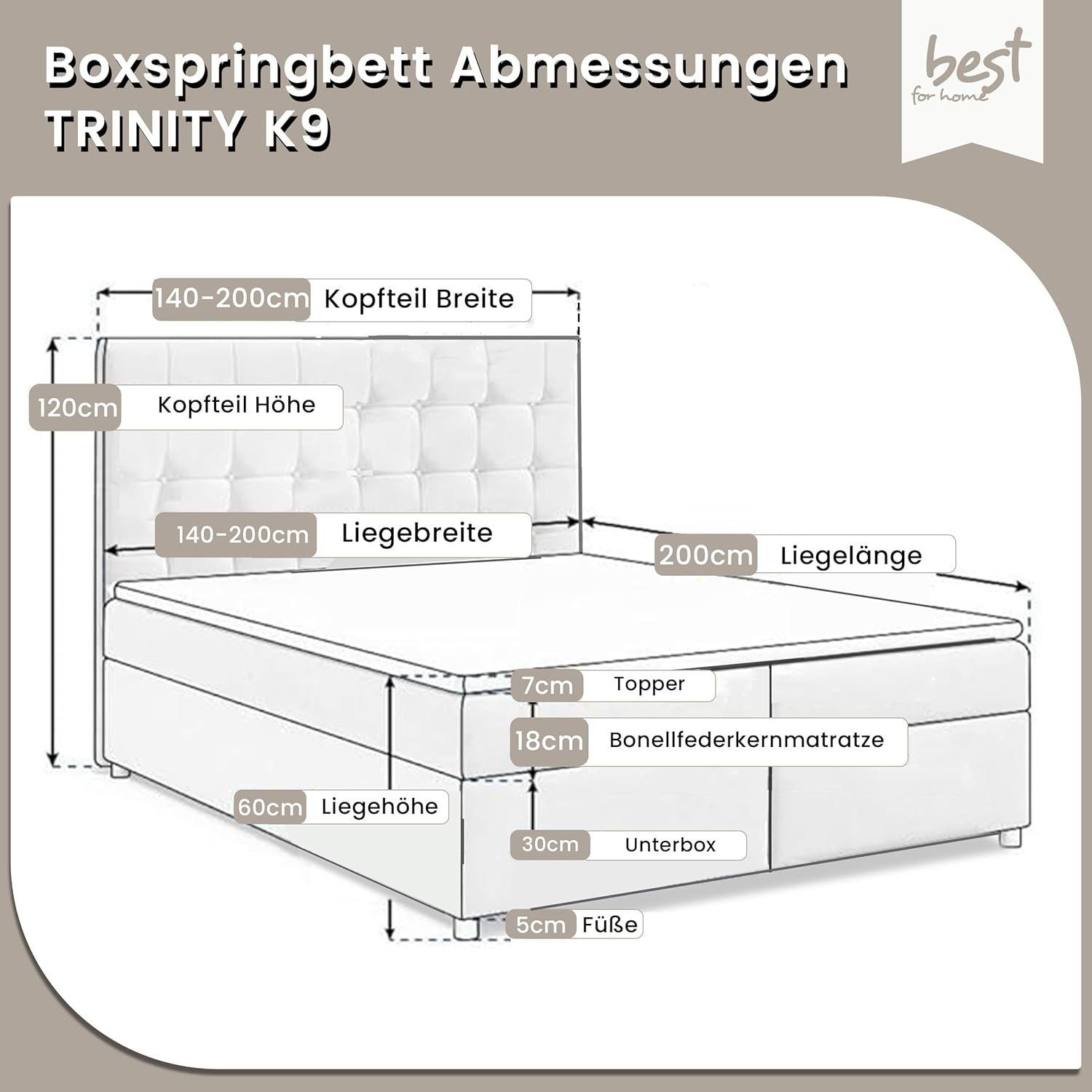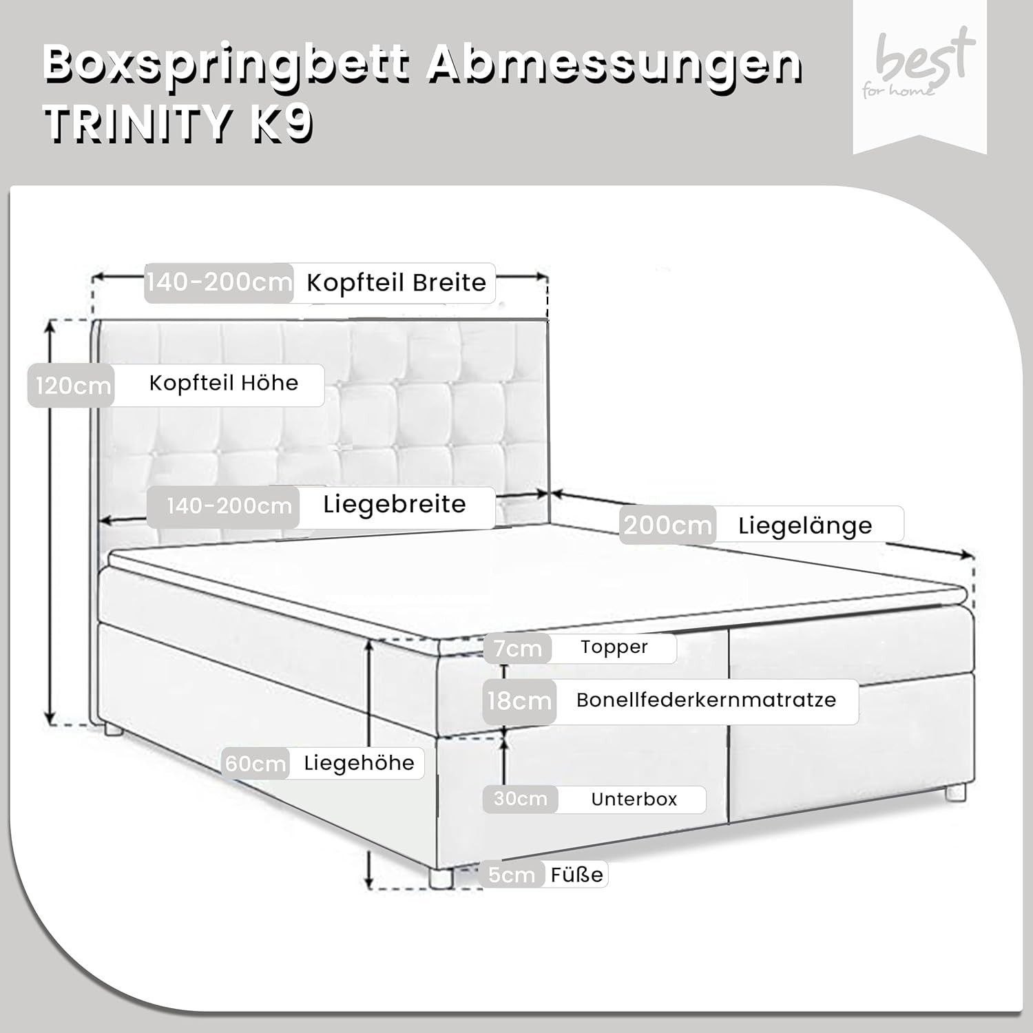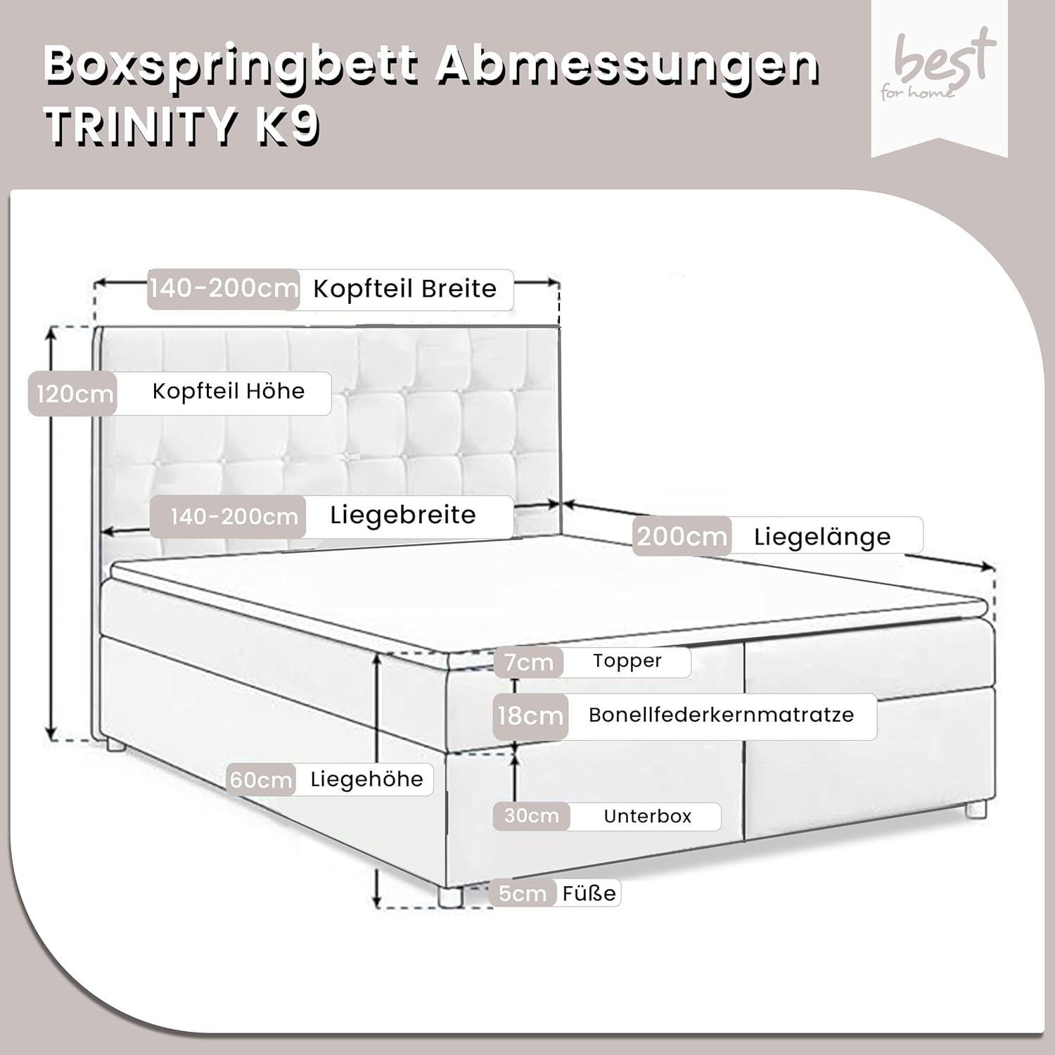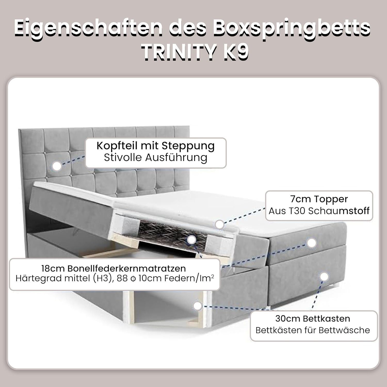 Boxspringbett mit Bettkasten Trinity K-9 Bonellfederkern inkl. Topper, mit Lieferung