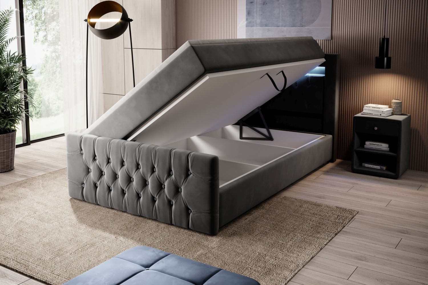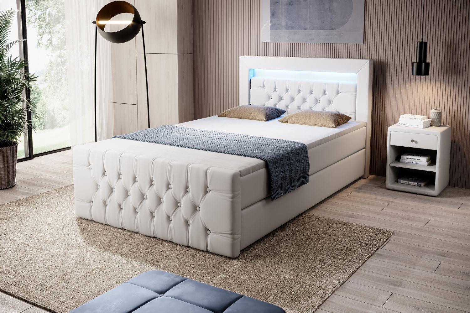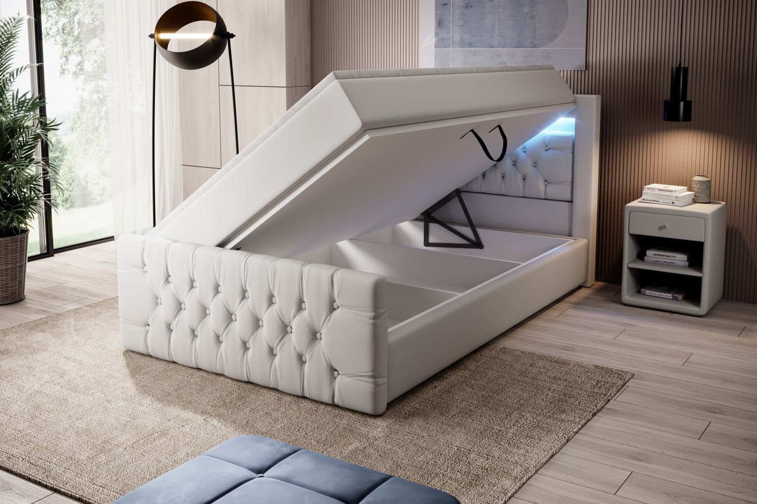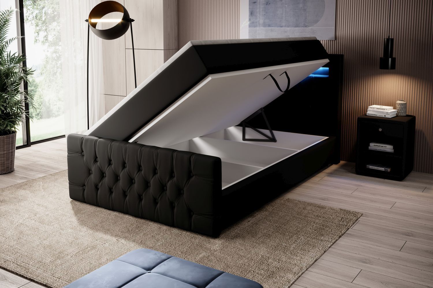Boxspringbett mit Bettkasten und LED Venezia Uno 120 x 200 cm Chesterfield Design