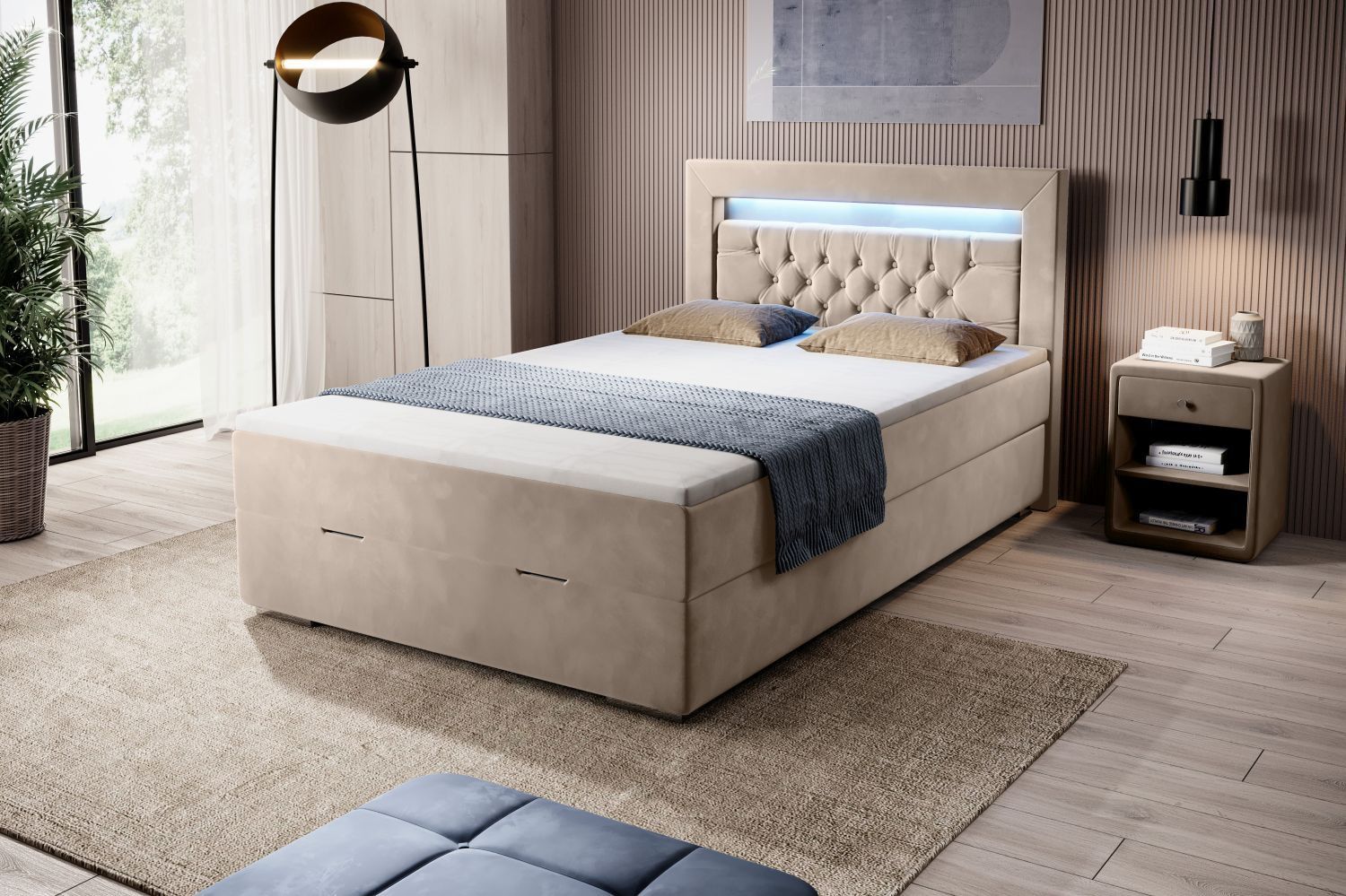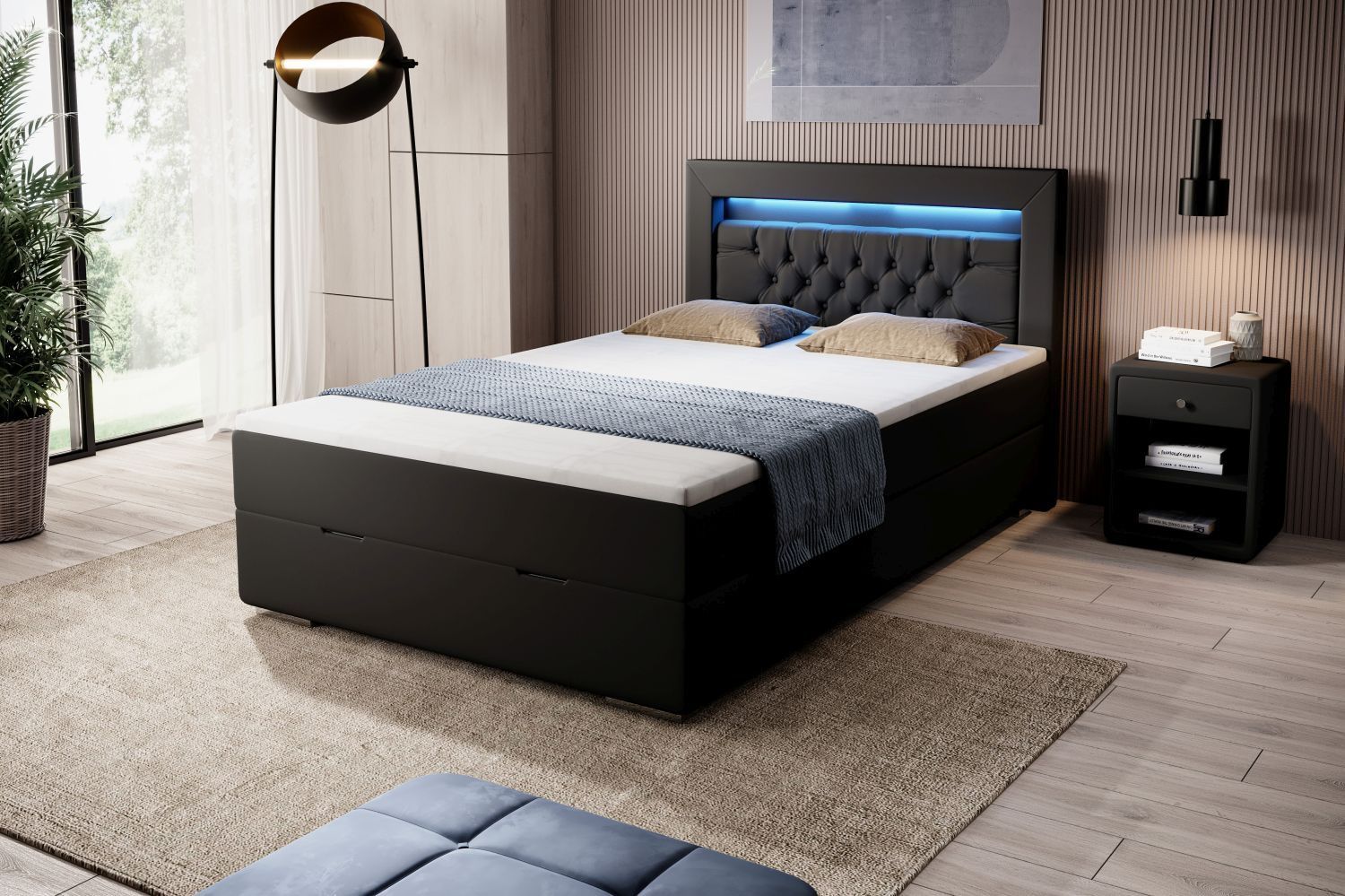Boxspringbett mit Bettkasten Venezia Uno mit LED USB und Farbauwahl 120 x 200 cm NEU!