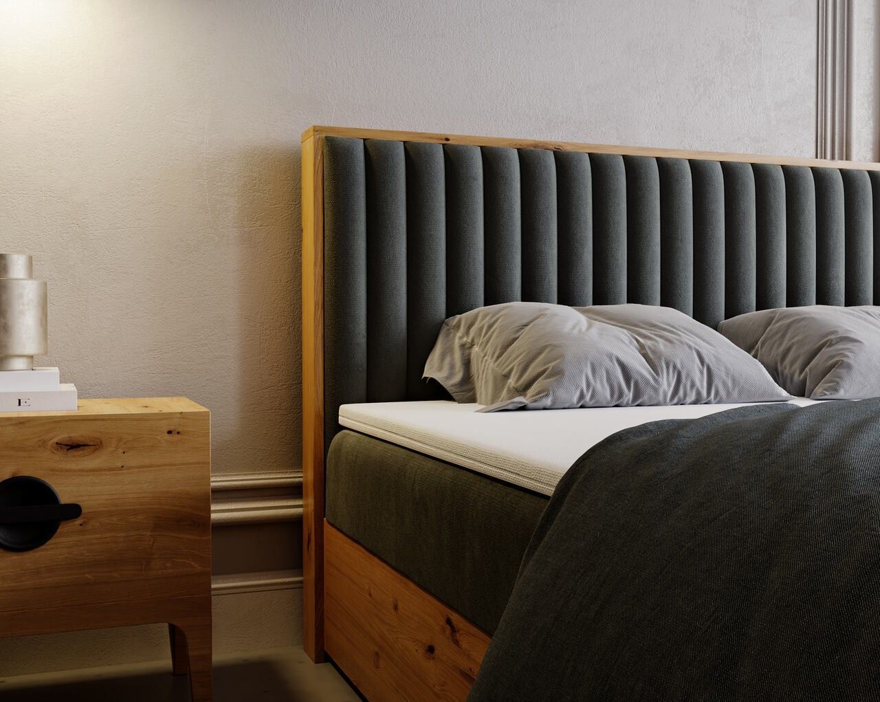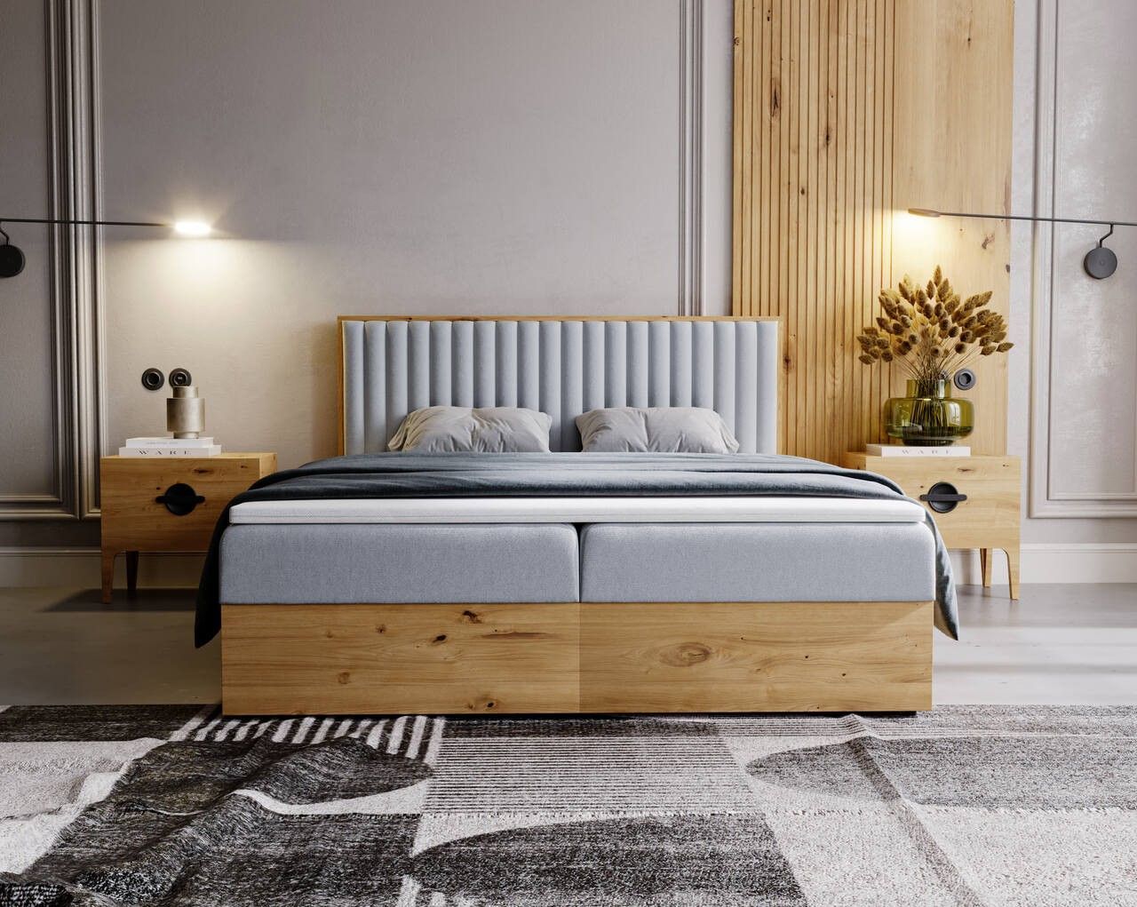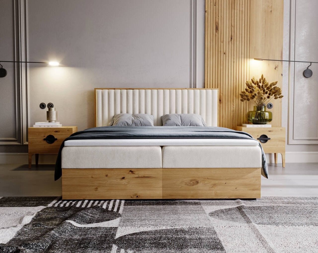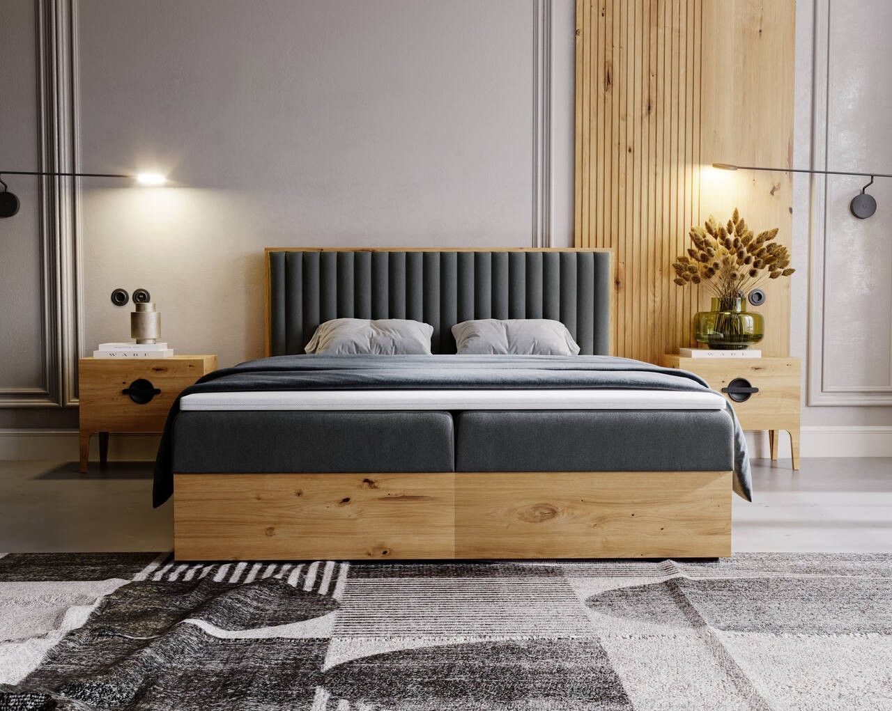 Boxspringbett mit Matratze & Bettkasten Forest - Holz, Lattenrost, Samtstoff