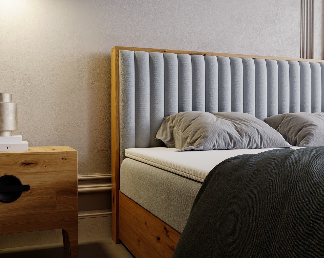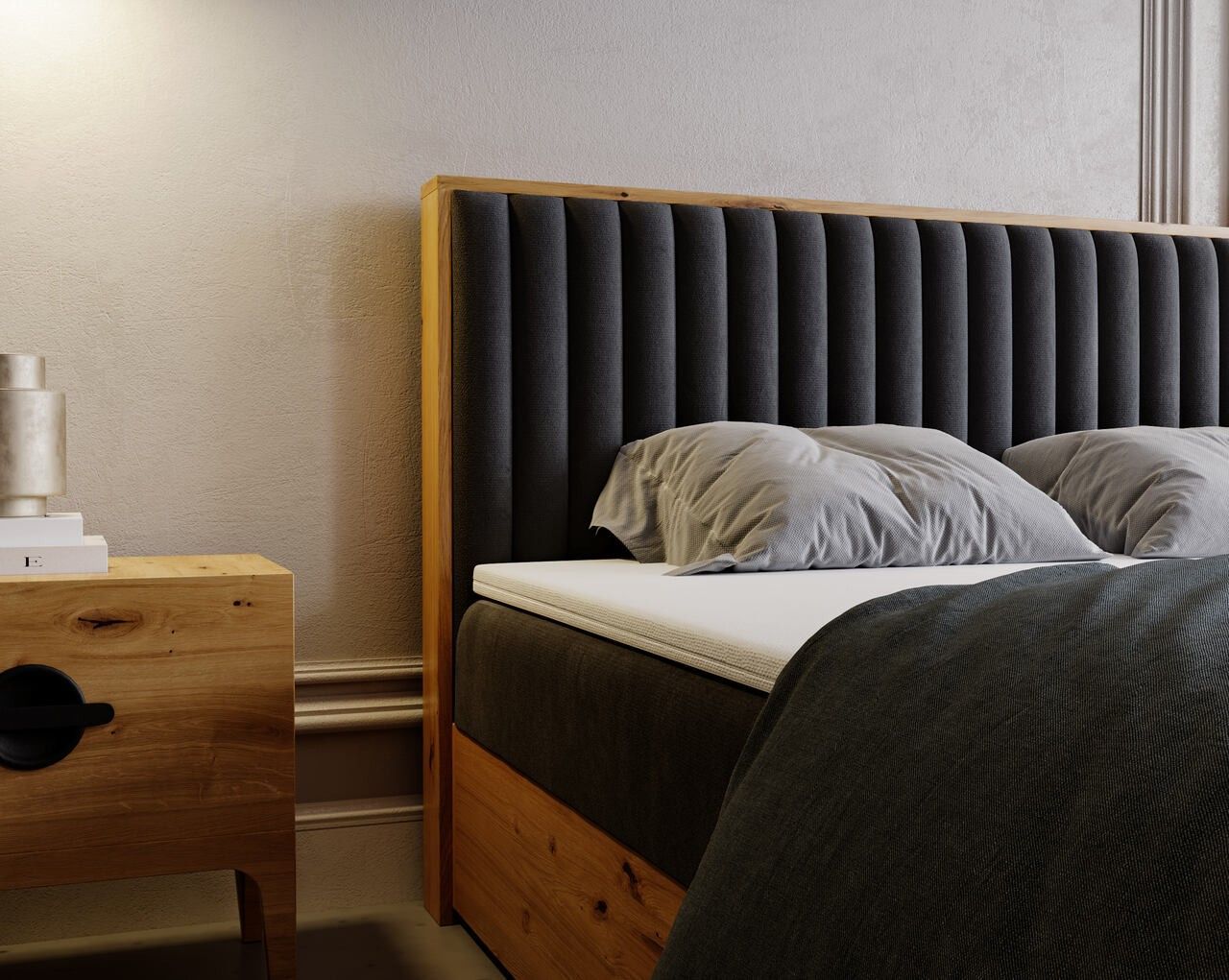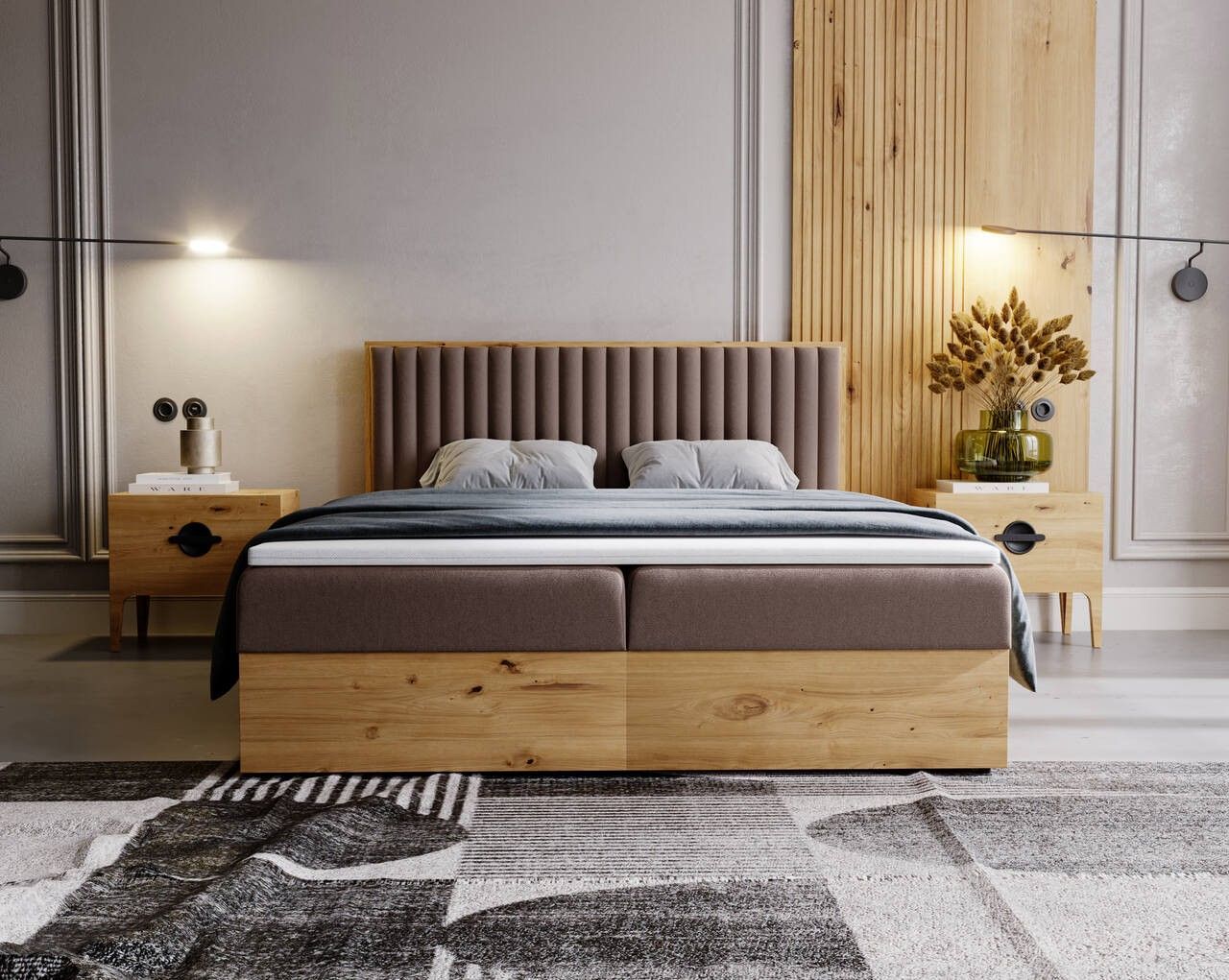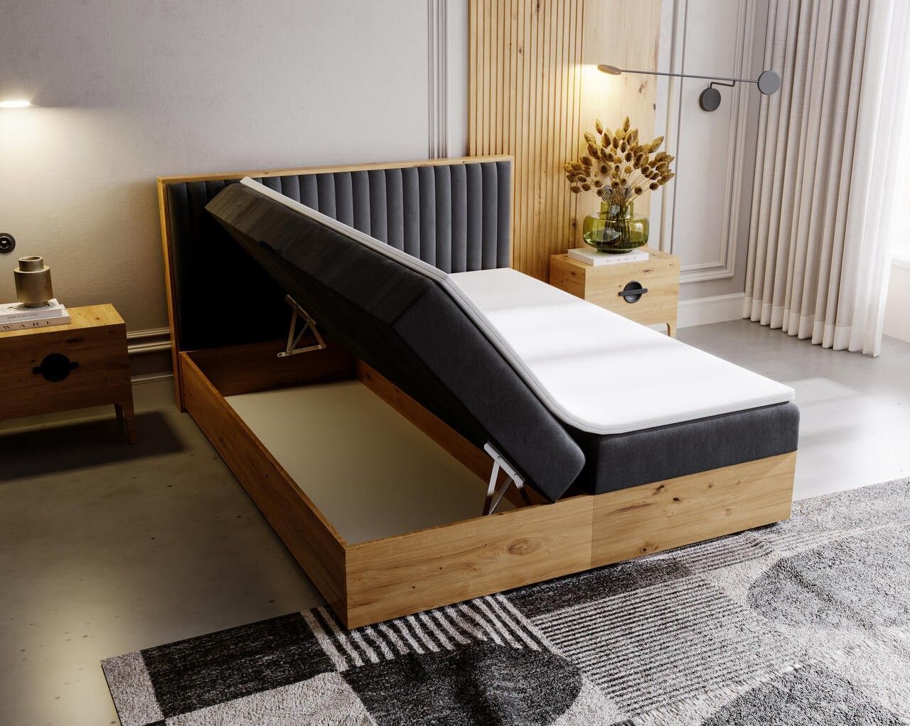 Boxspringbett mit Matratze & Bettkasten Forest - Holz, Lattenrost, Samtstoff