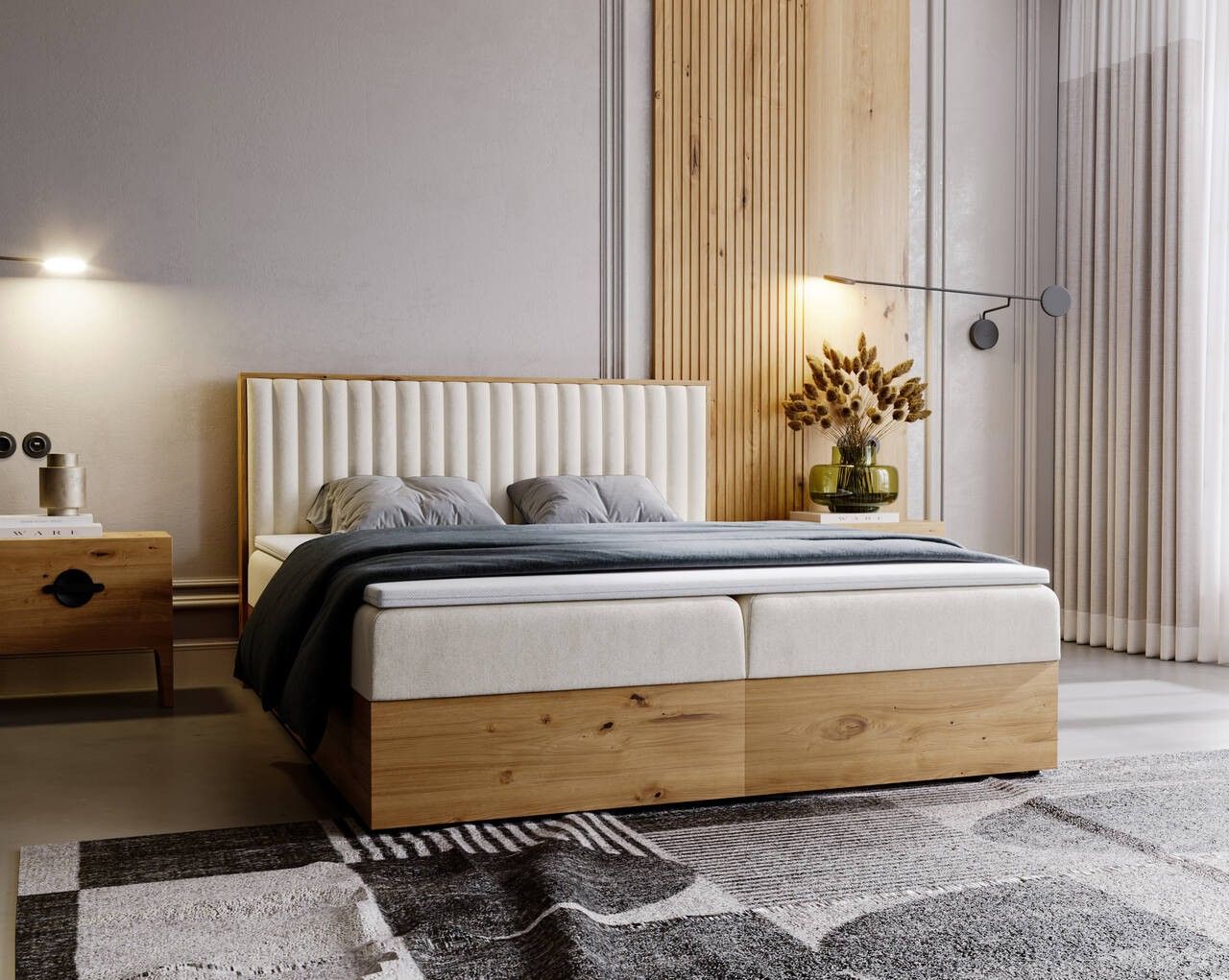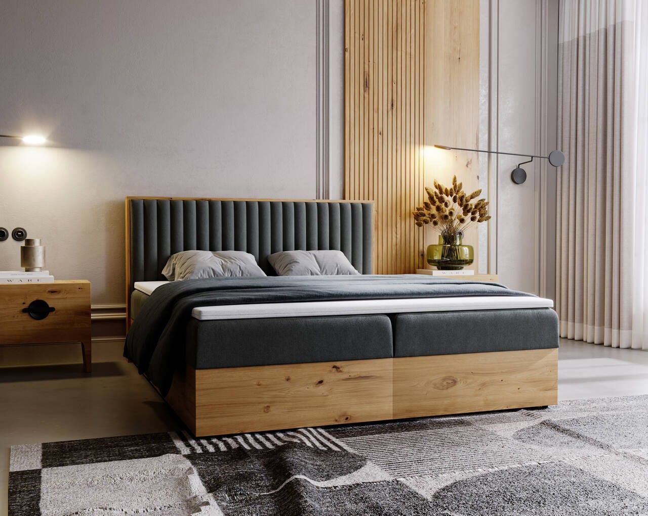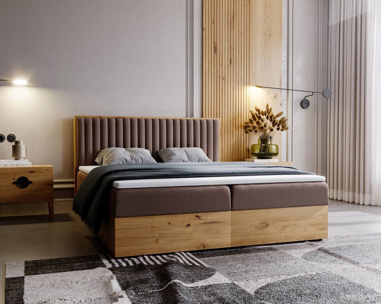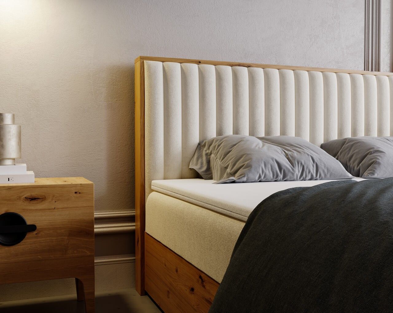 Boxspringbett mit Matratze & Bettkasten Forest - Holz, Lattenrost, Samtstoff
