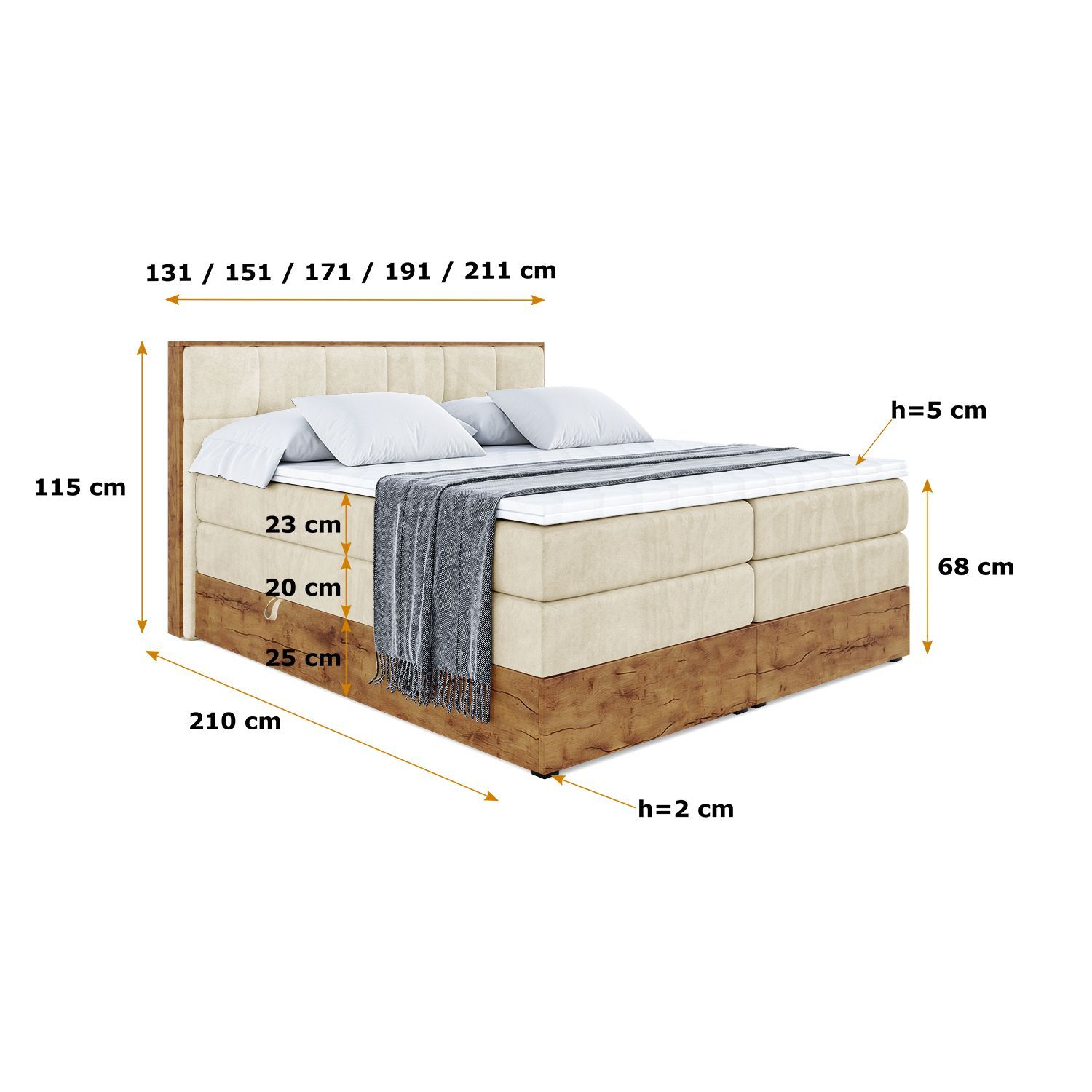 Boxspringbett mit Matratze, Topper, Polsterbett mit Bettkasten LOLLI7 KING