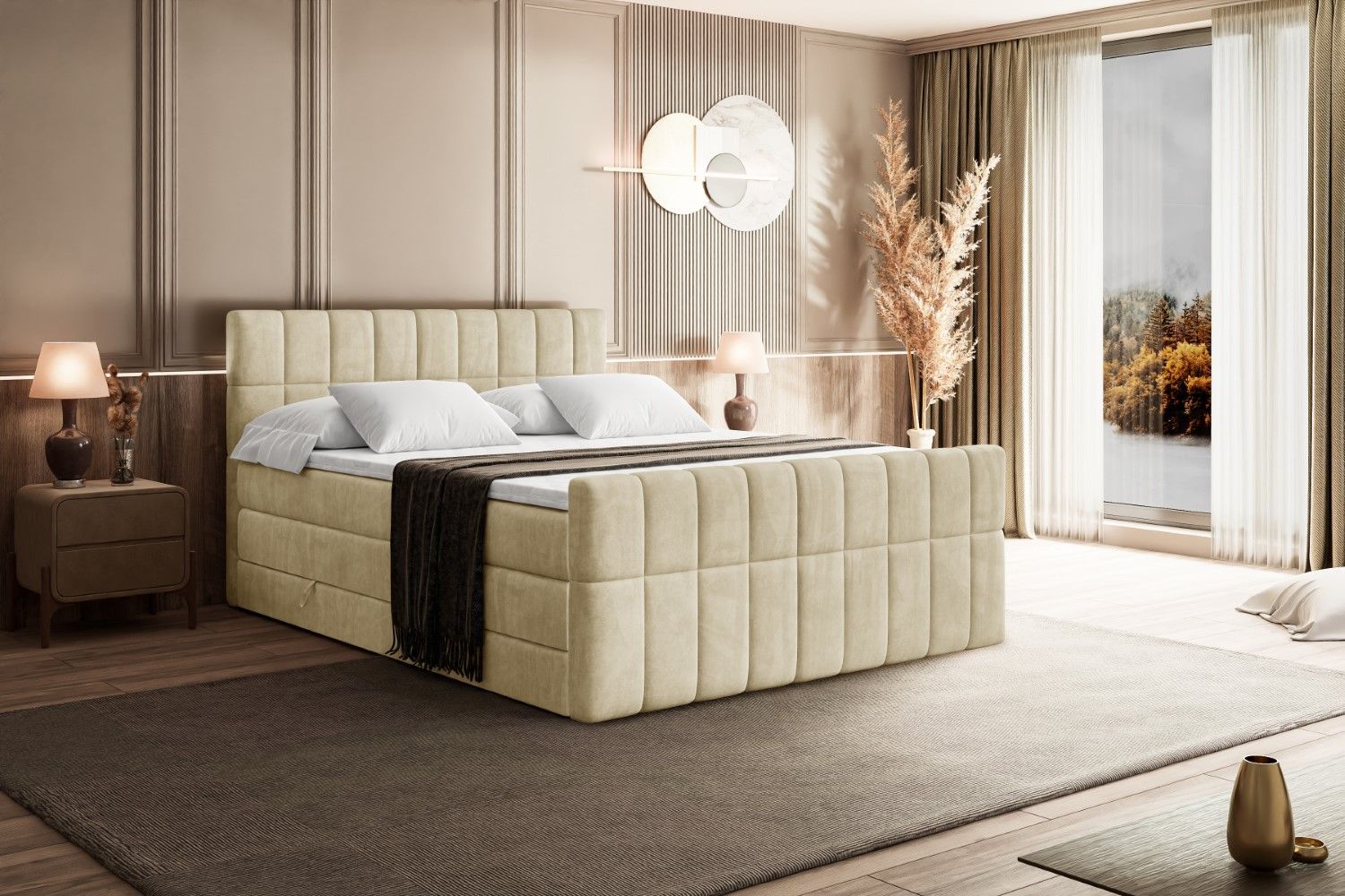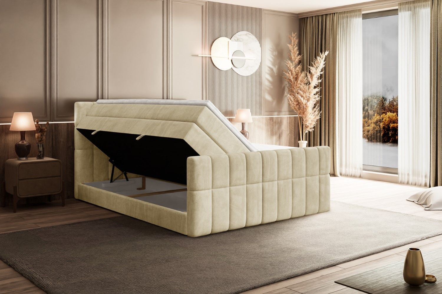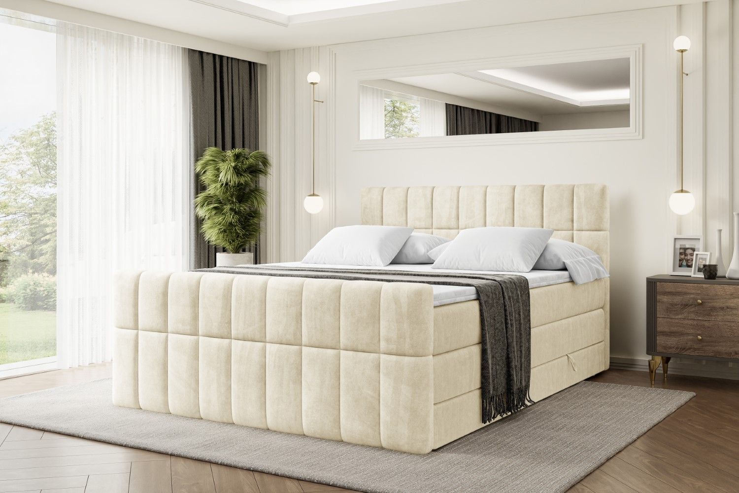 Boxspringbett mit Matratze, Topper, Polsterbett mit Bettkasten MIAMI-Z KING