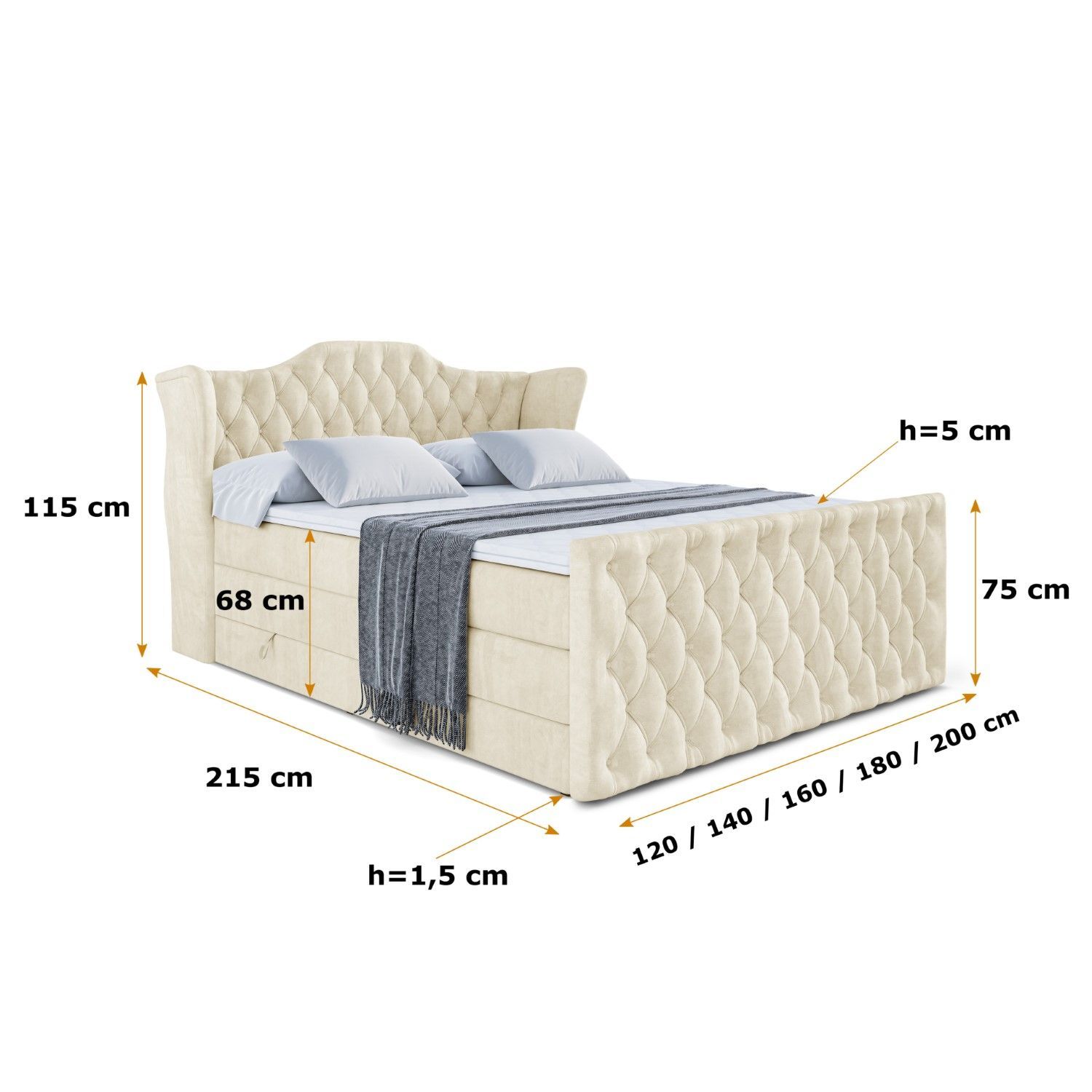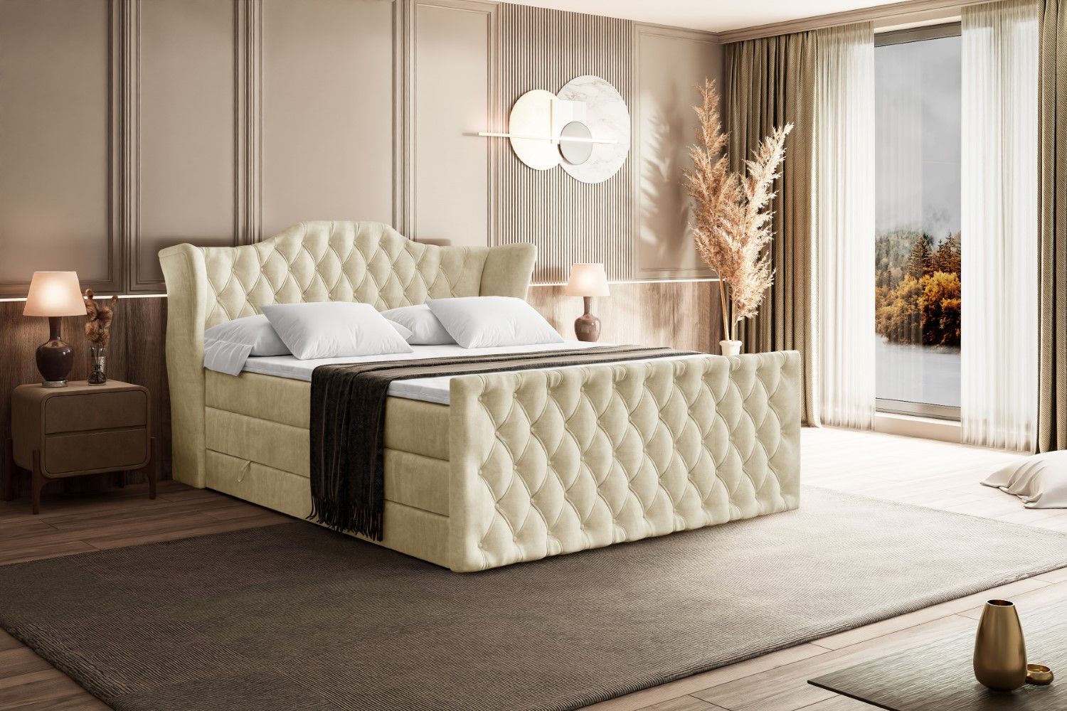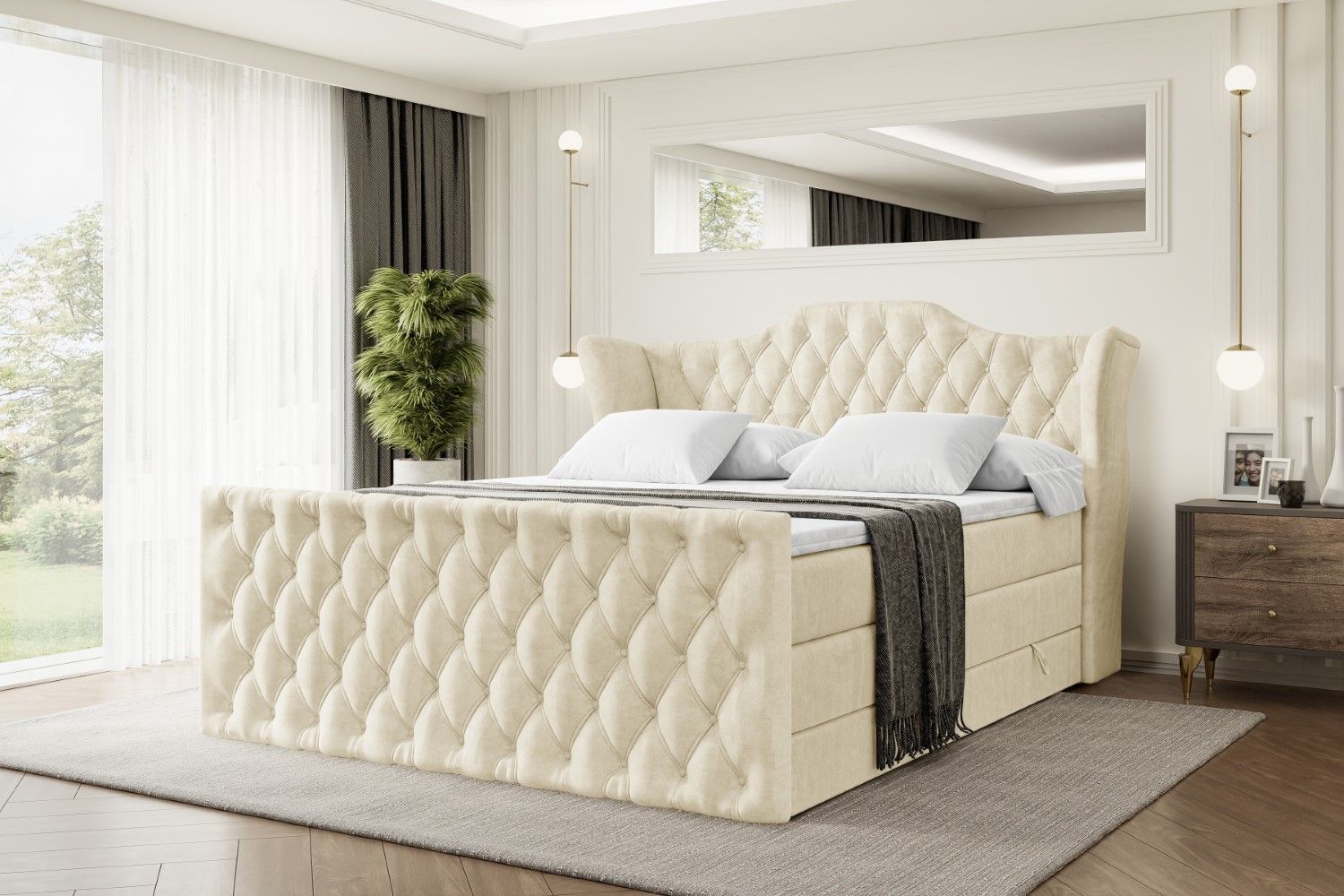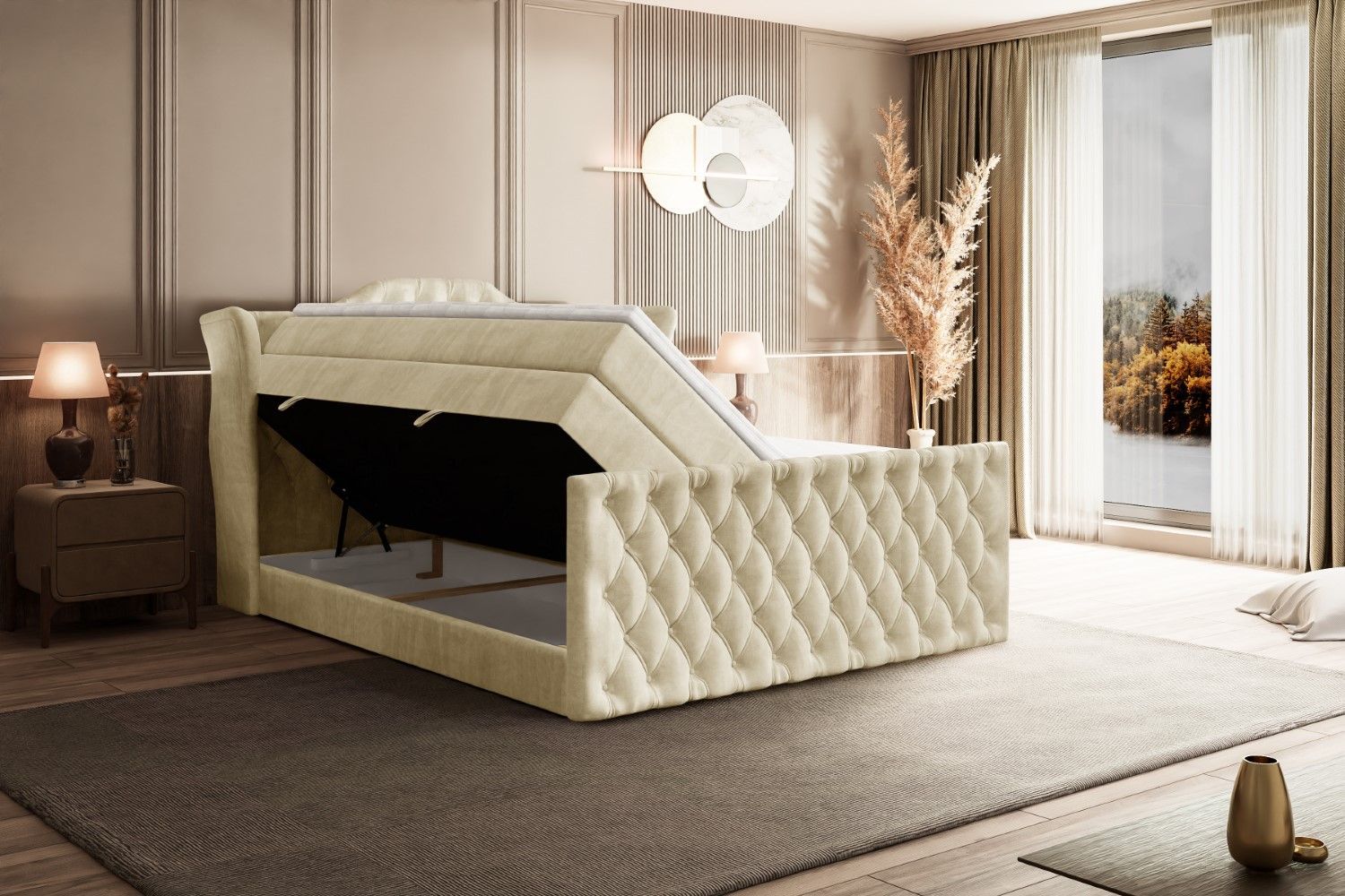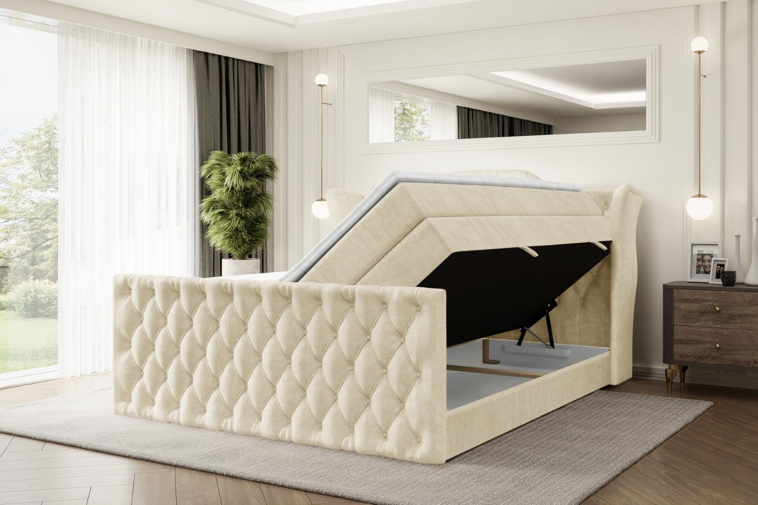 Boxspringbett mit Matratze, Topper, Polsterbett mit Bettkasten VILA-Z KING