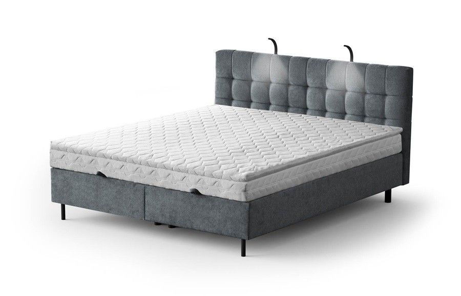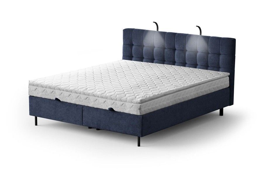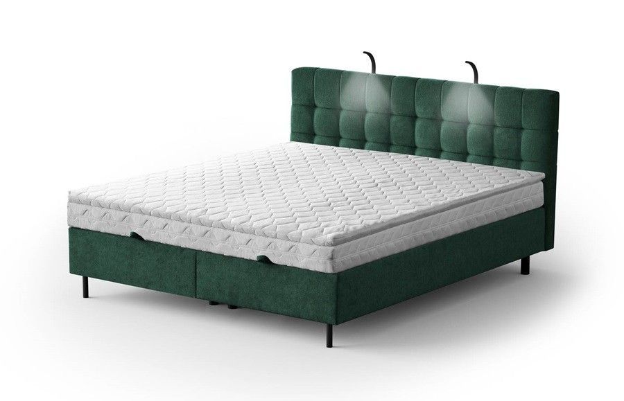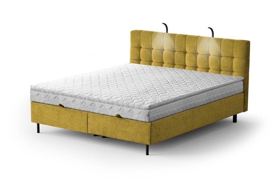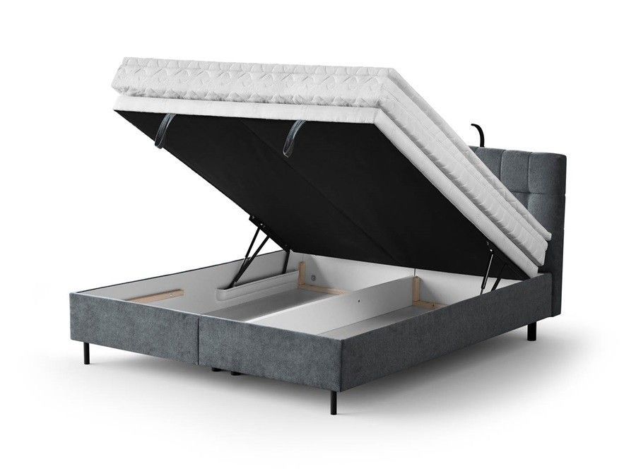 Boxspringbett MUNA mit POKET-Matratze + Topper mit Bettkasten, Doppelbett H3