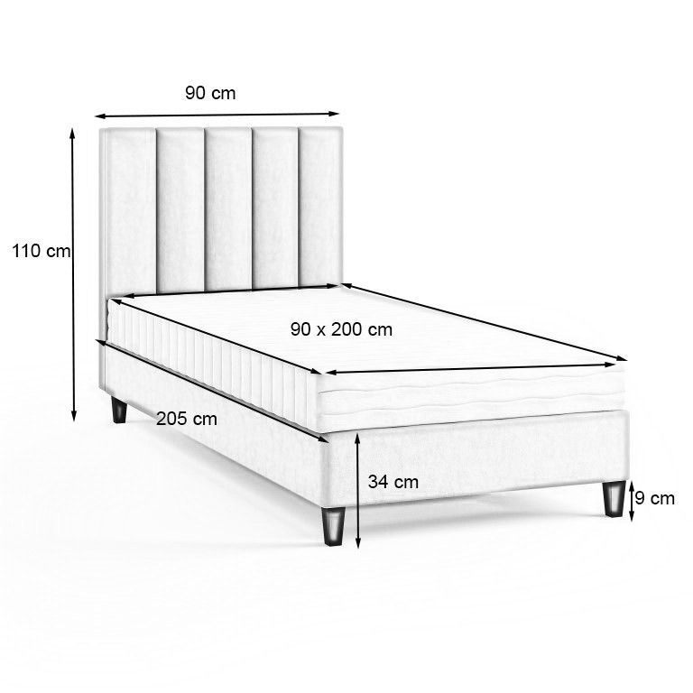 Boxspringbett Polsterbett Einzelbett KONGO ohne Matratze Bett Hotelbett Jugendbett