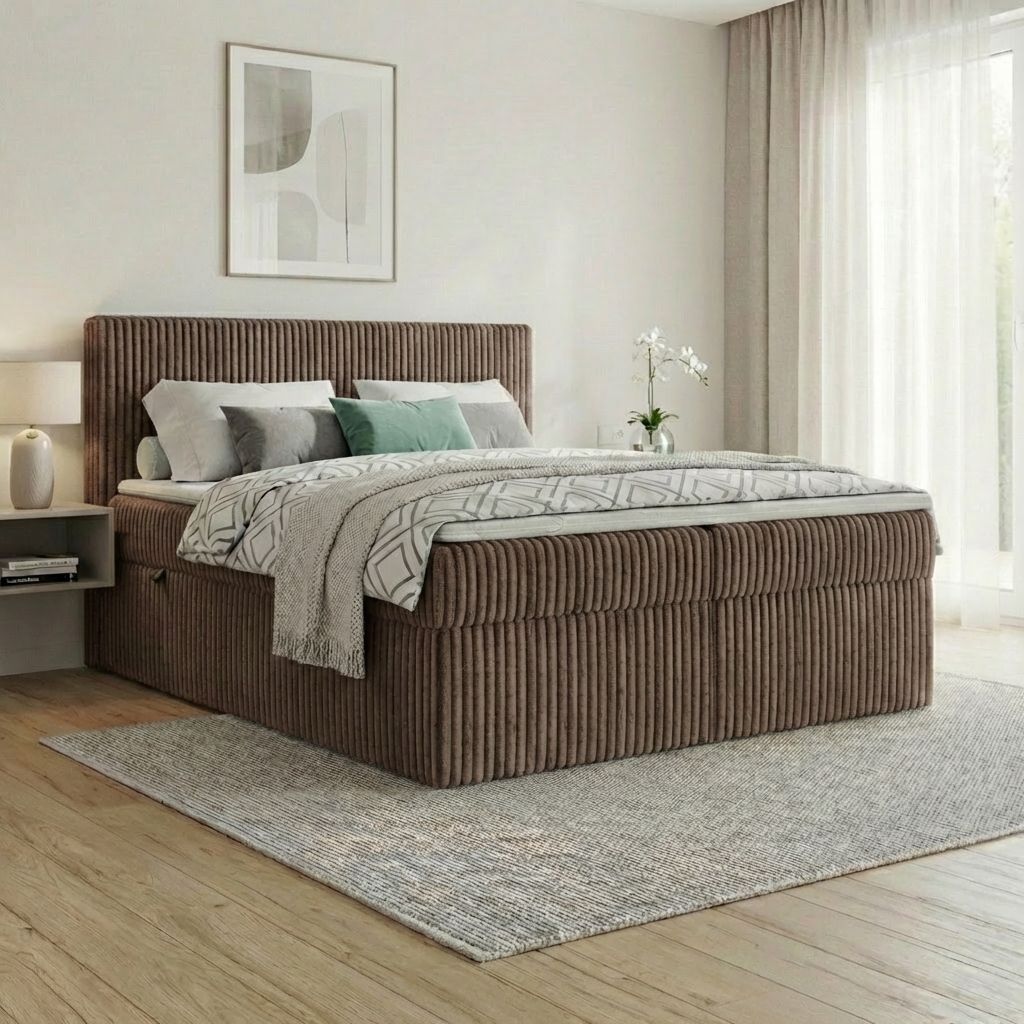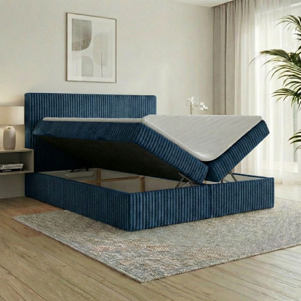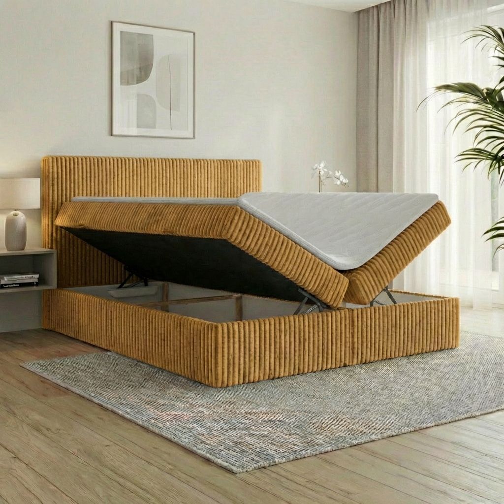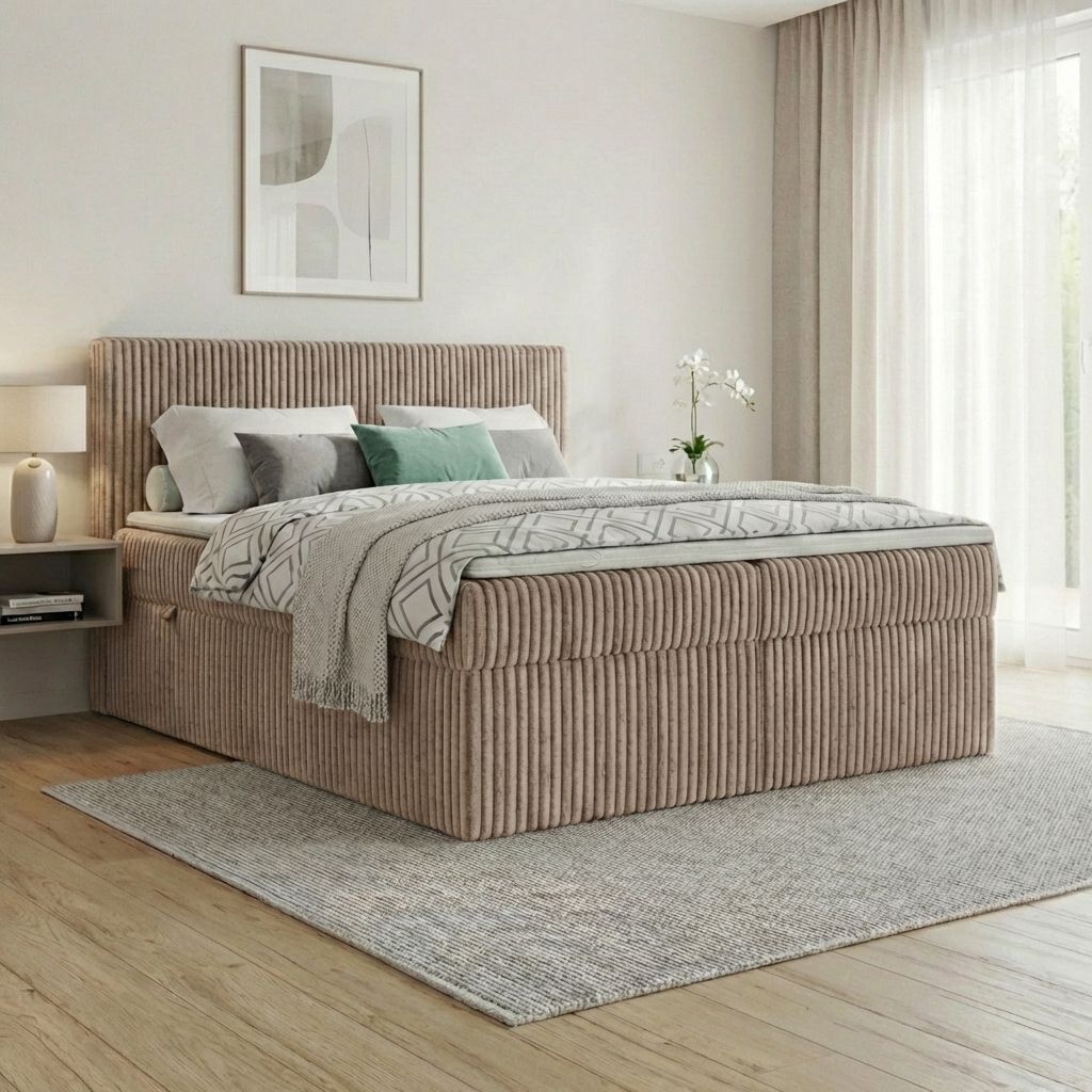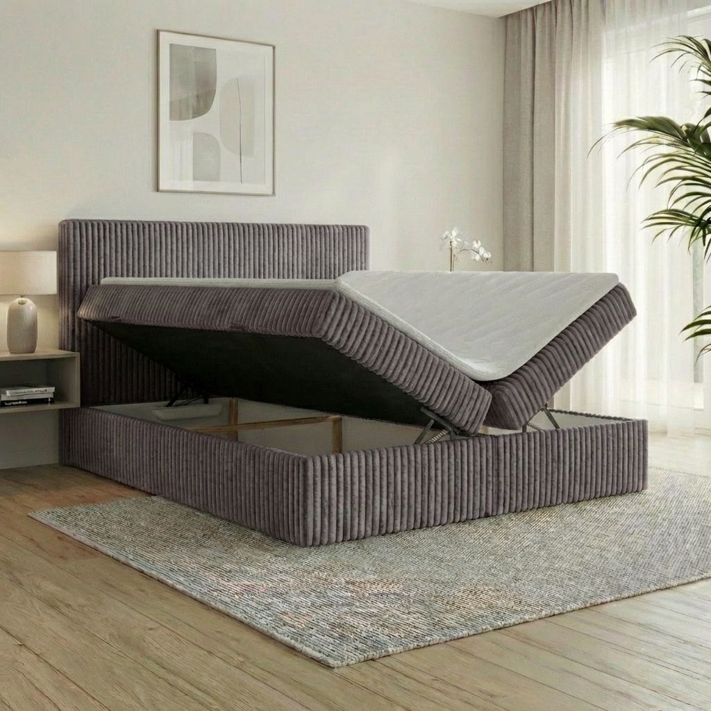 Boxspringbett RALF mit Bettkasten, Topper und gepolstertem Kopfteil, Schlafkomfort