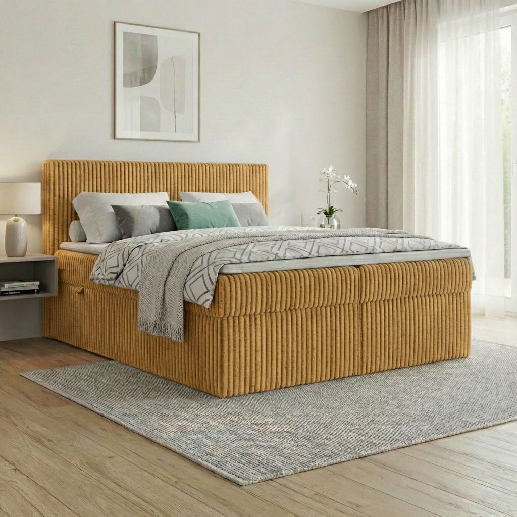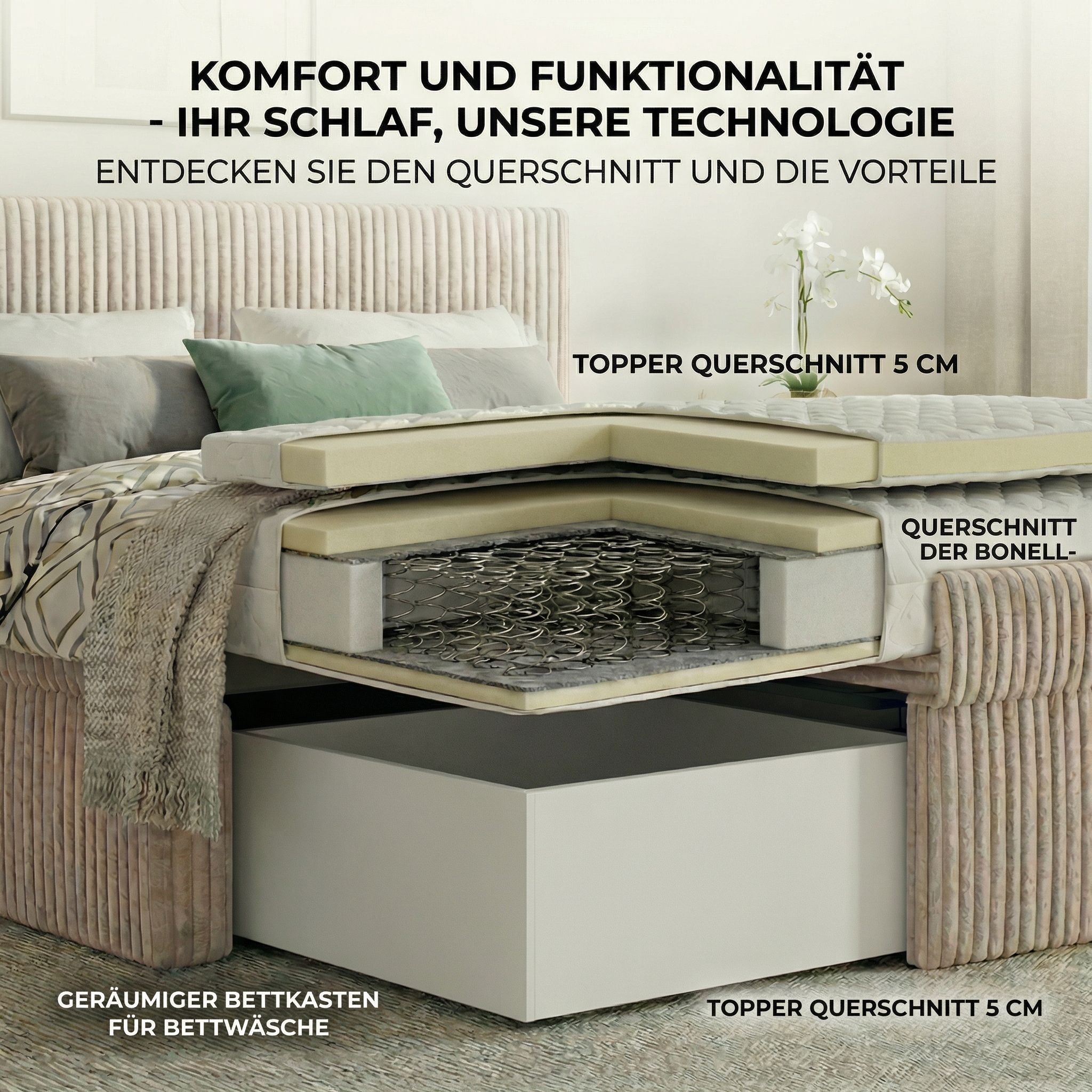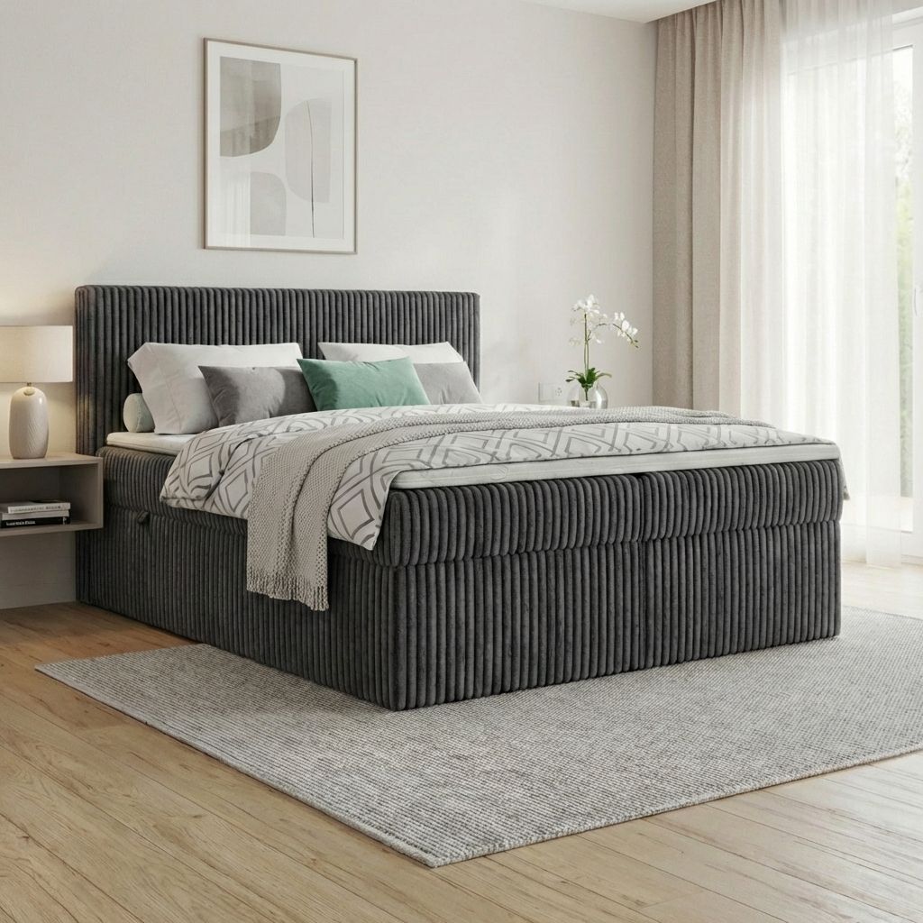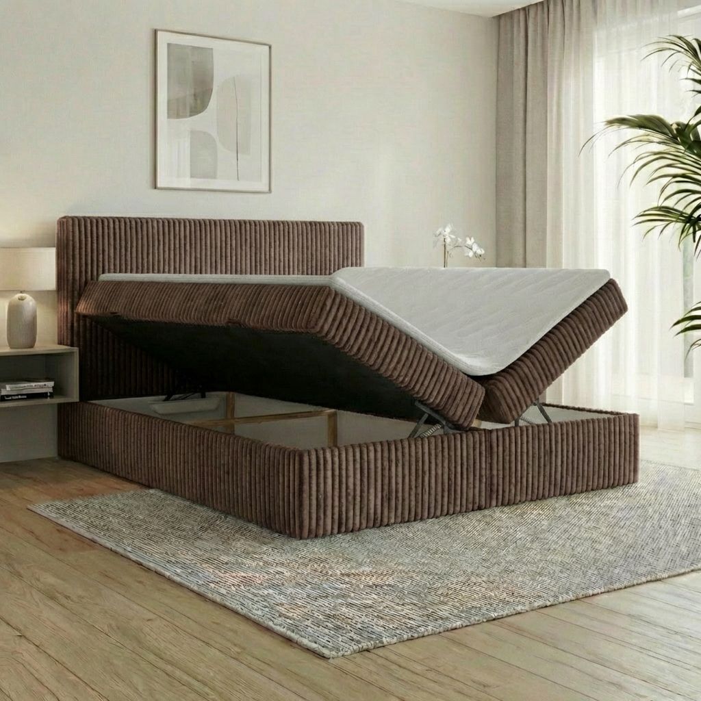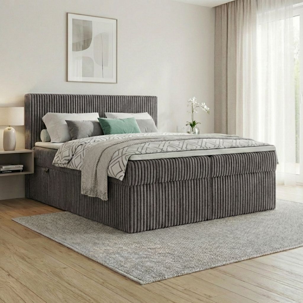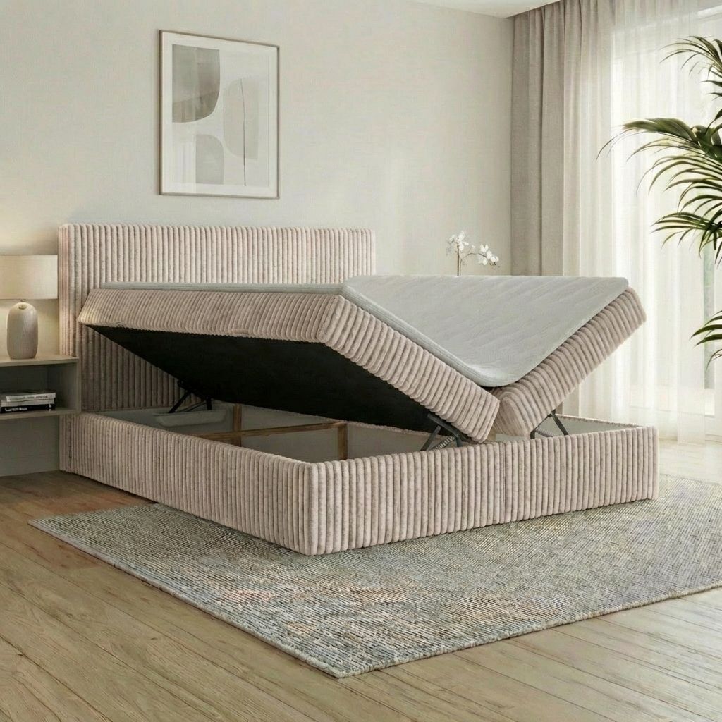 Boxspringbett RALF mit Bettkasten, Topper und gepolstertem Kopfteil, Schlafkomfort