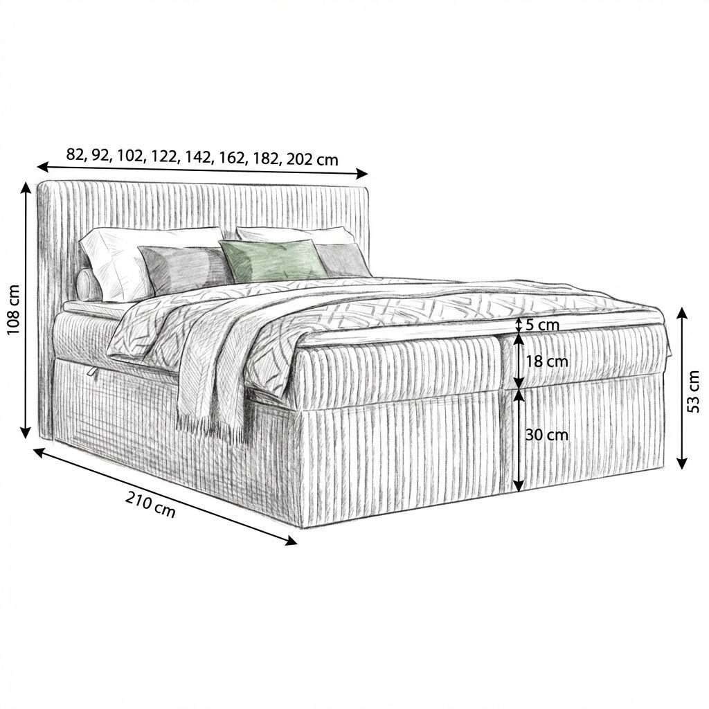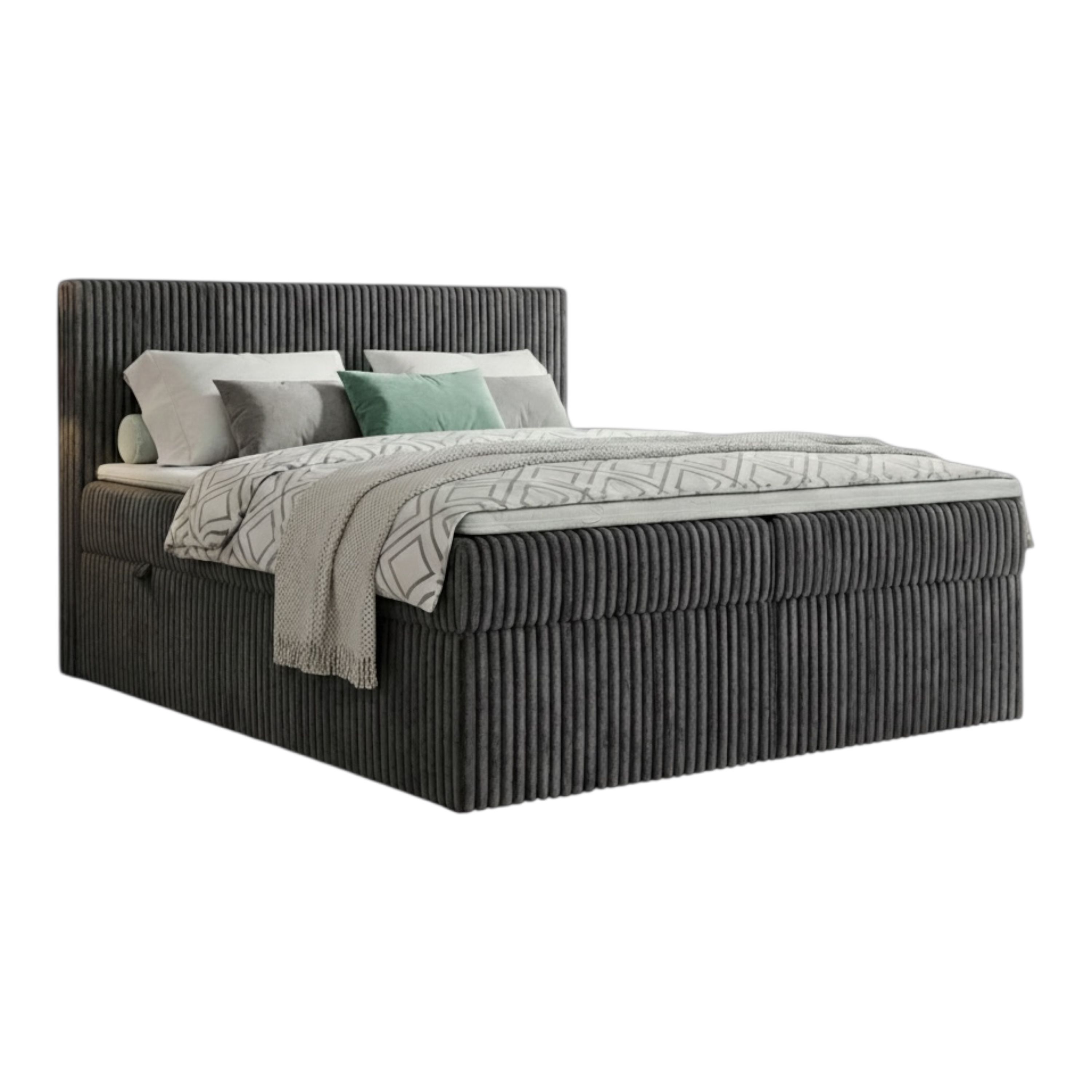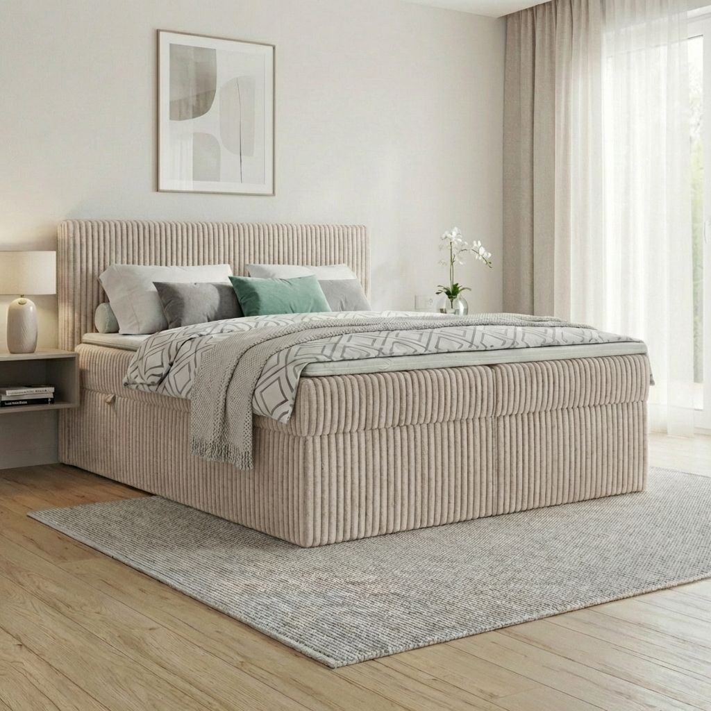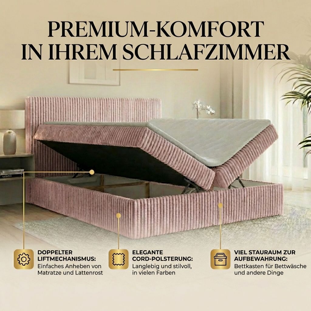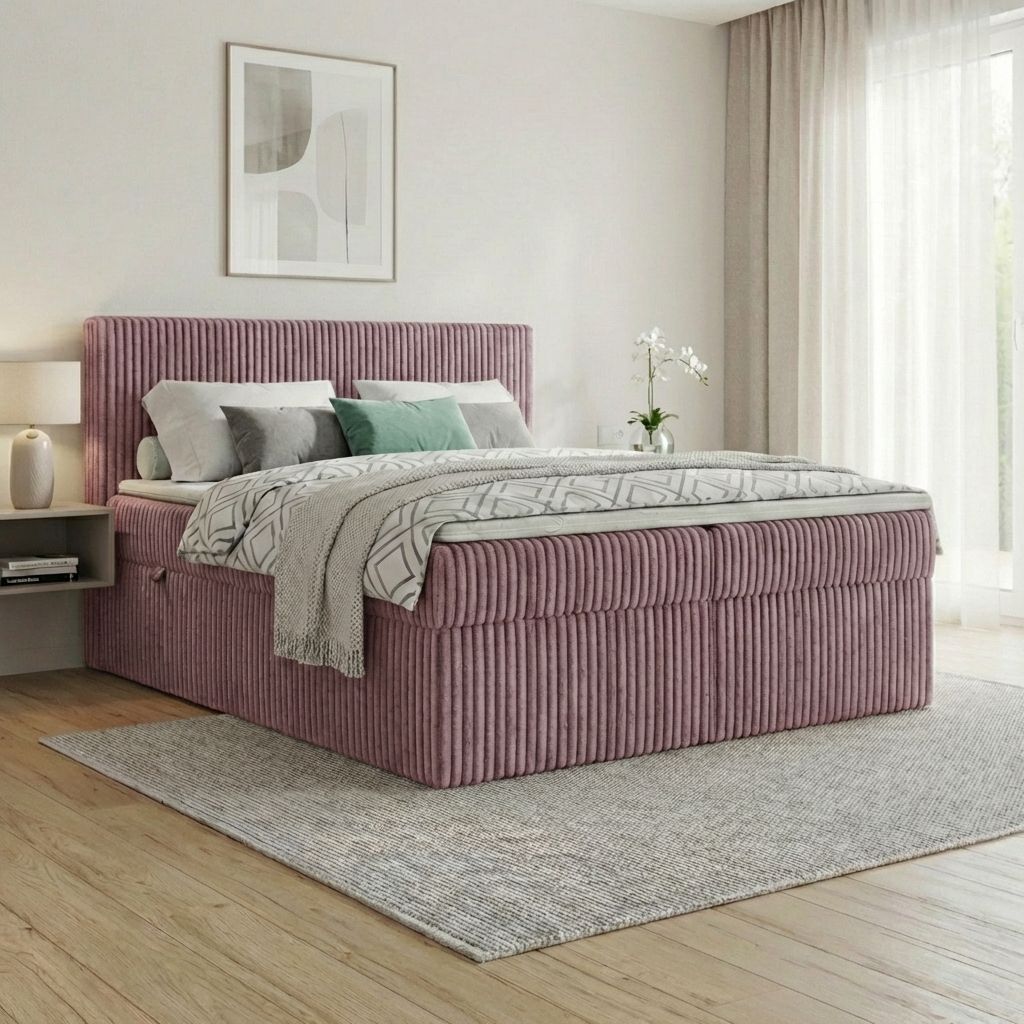 Boxspringbett RALF mit Bettkasten, Topper und gepolstertem Kopfteil, Schlafkomfort