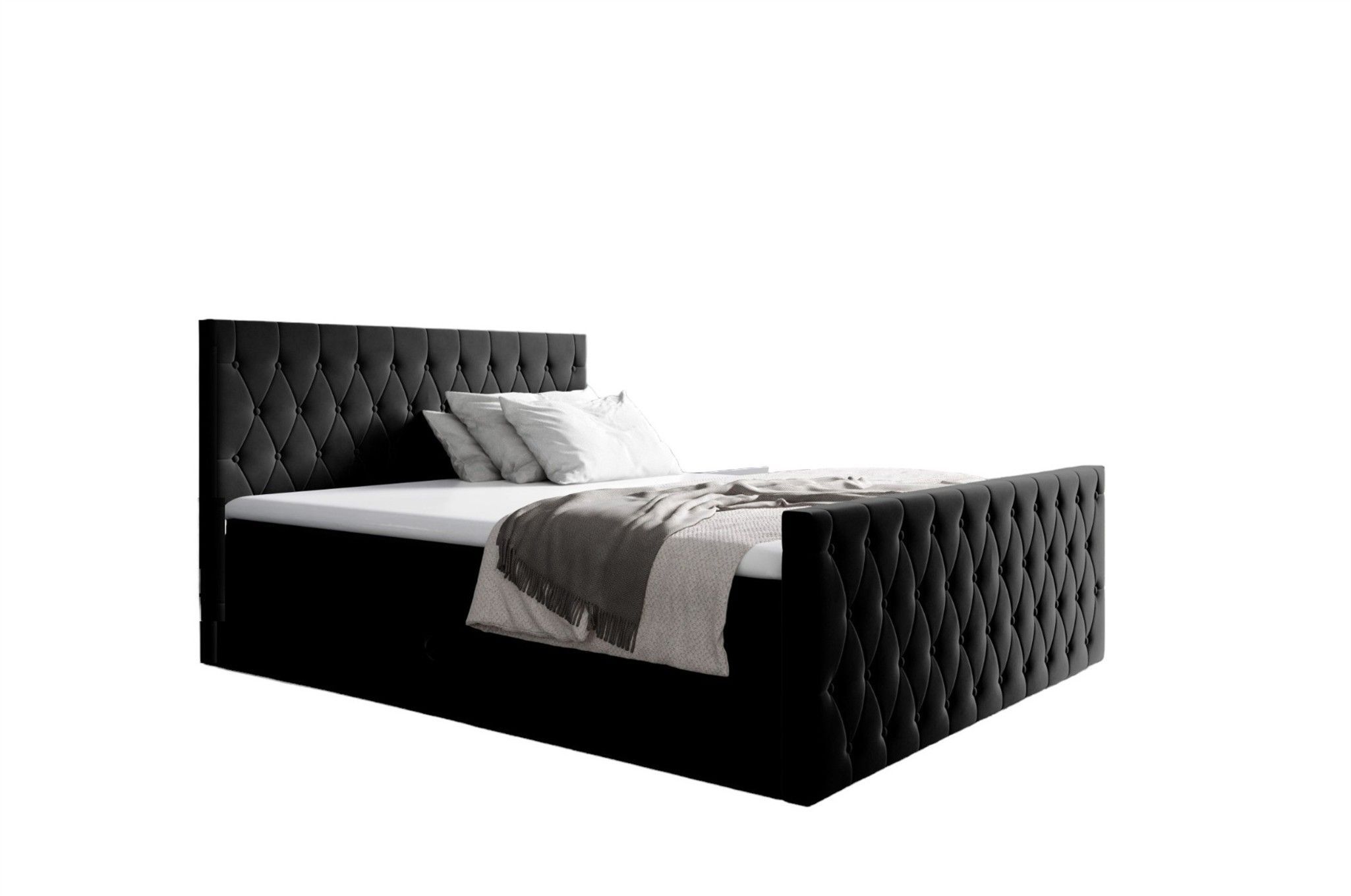 Boxspringbett Schlafzimmerbett ASHER 140x220cm in Stoff Fresh Schwarz