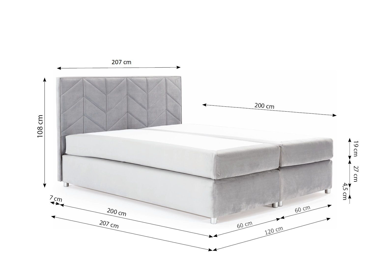 Boxspringbett Schlafzimmerbett Bett Bartolo DELUX Stoff Beige 200x200cm