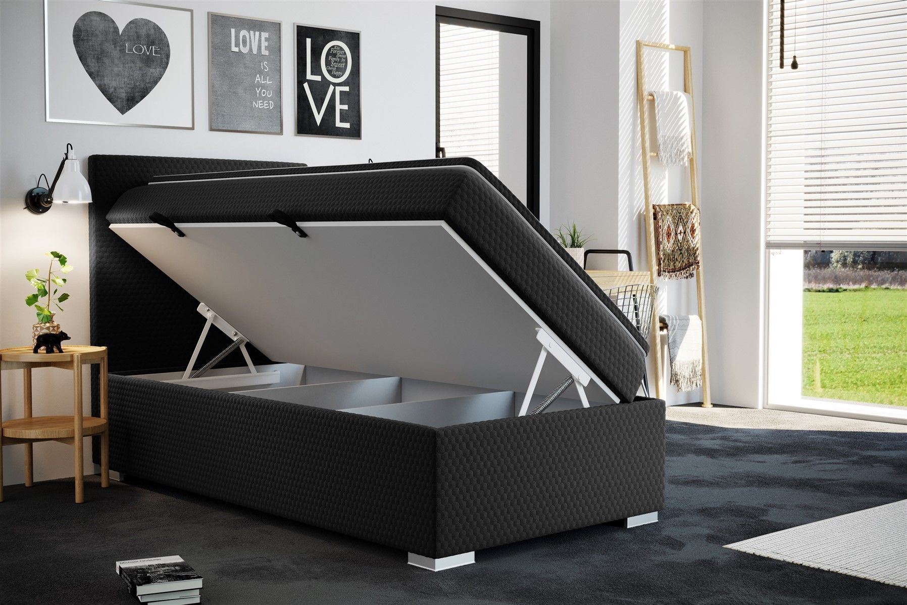 Boxspringbett Schlafzimmerbett BRIX Schwarz 90x200cm inkl. Bettkasten
