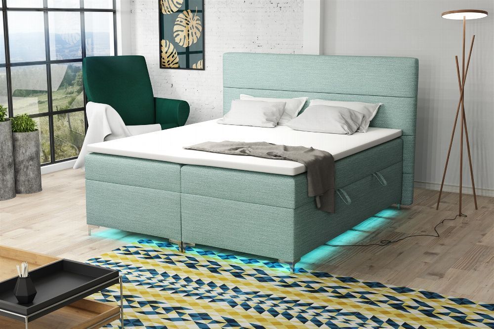 Boxspringbett Schlafzimmerbett CANELA 140x200cm inkl. Bettkasten/ LED