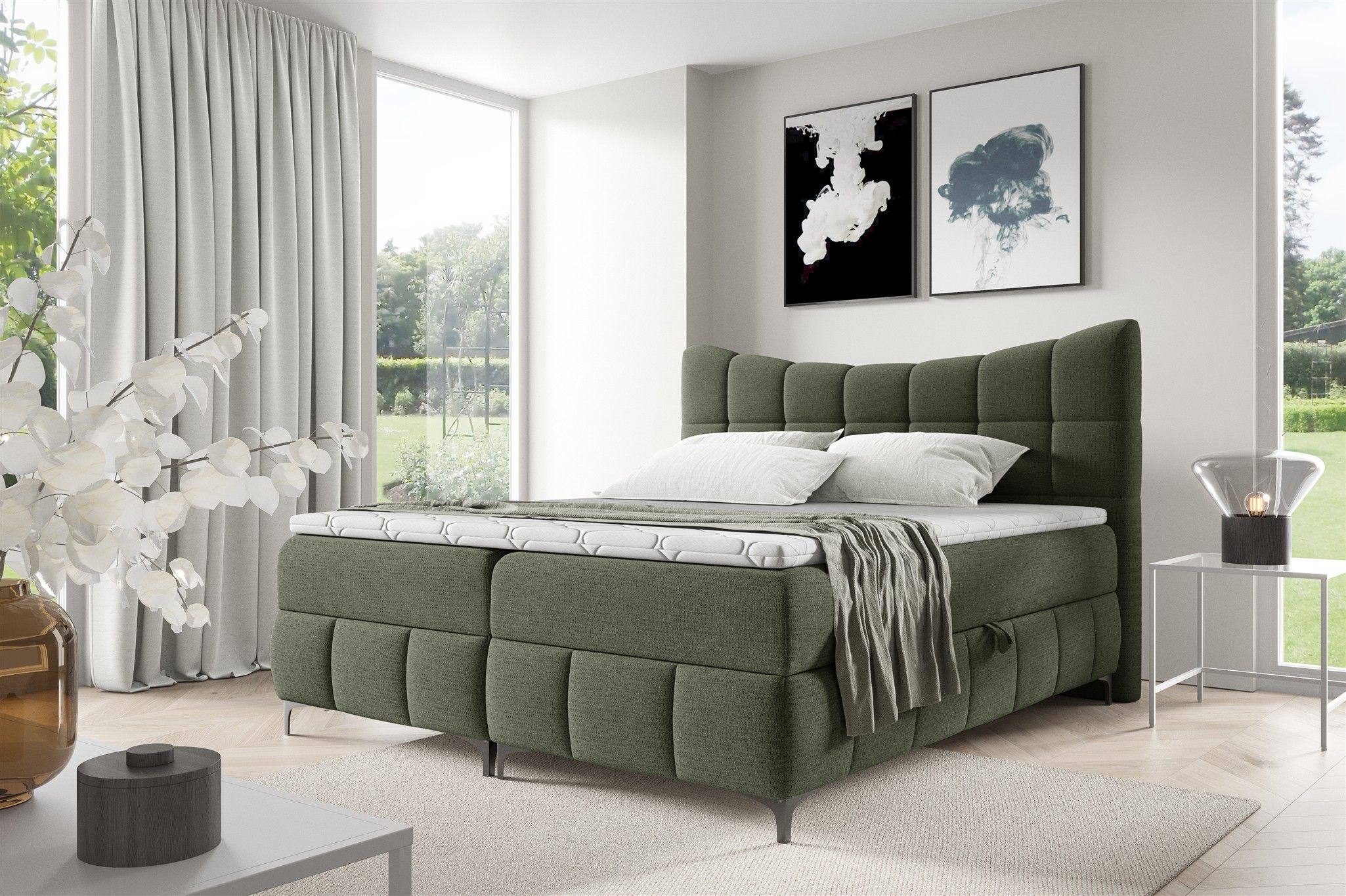Boxspringbett Schlafzimmerbett Charles 120x200cm Stoff Aragon Grün