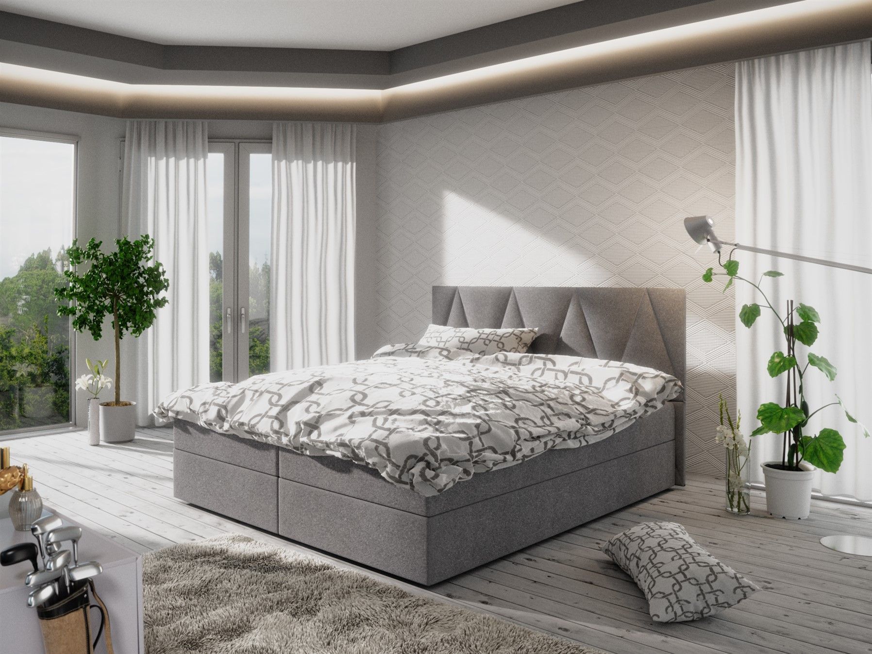 Boxspringbett Schlafzimmerbett GALA 180x200cm Grau inkl. Bettkasten