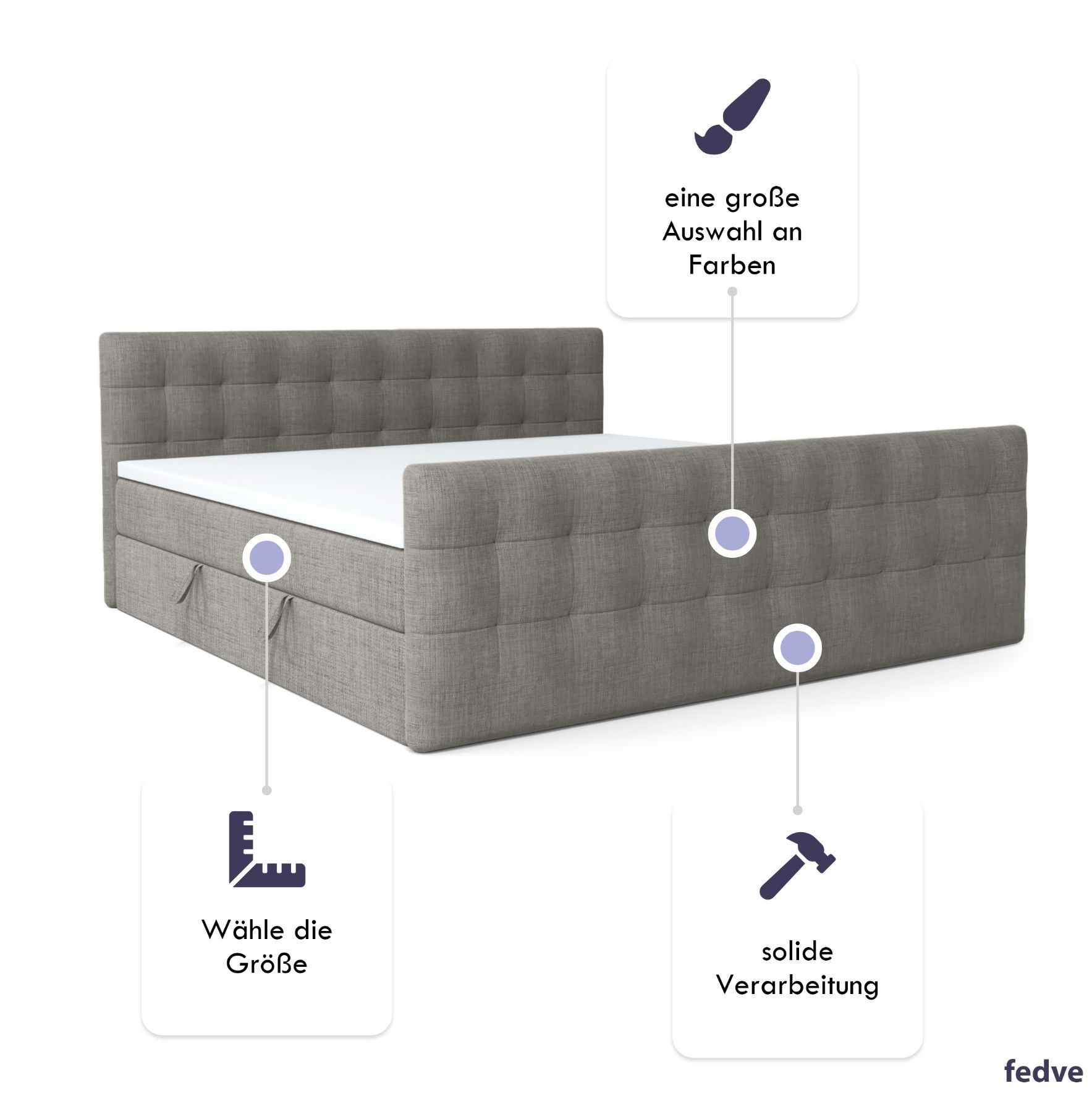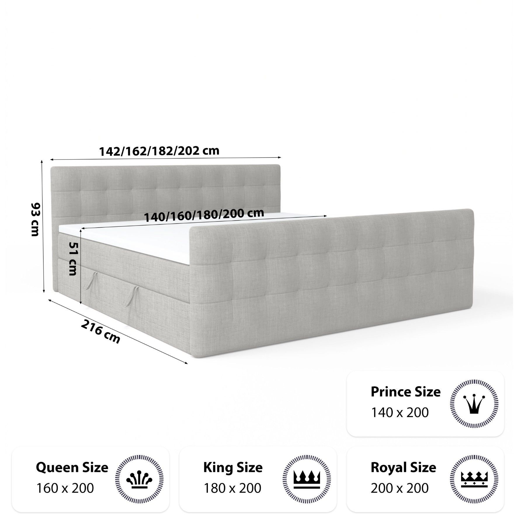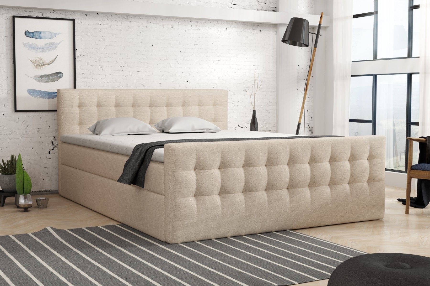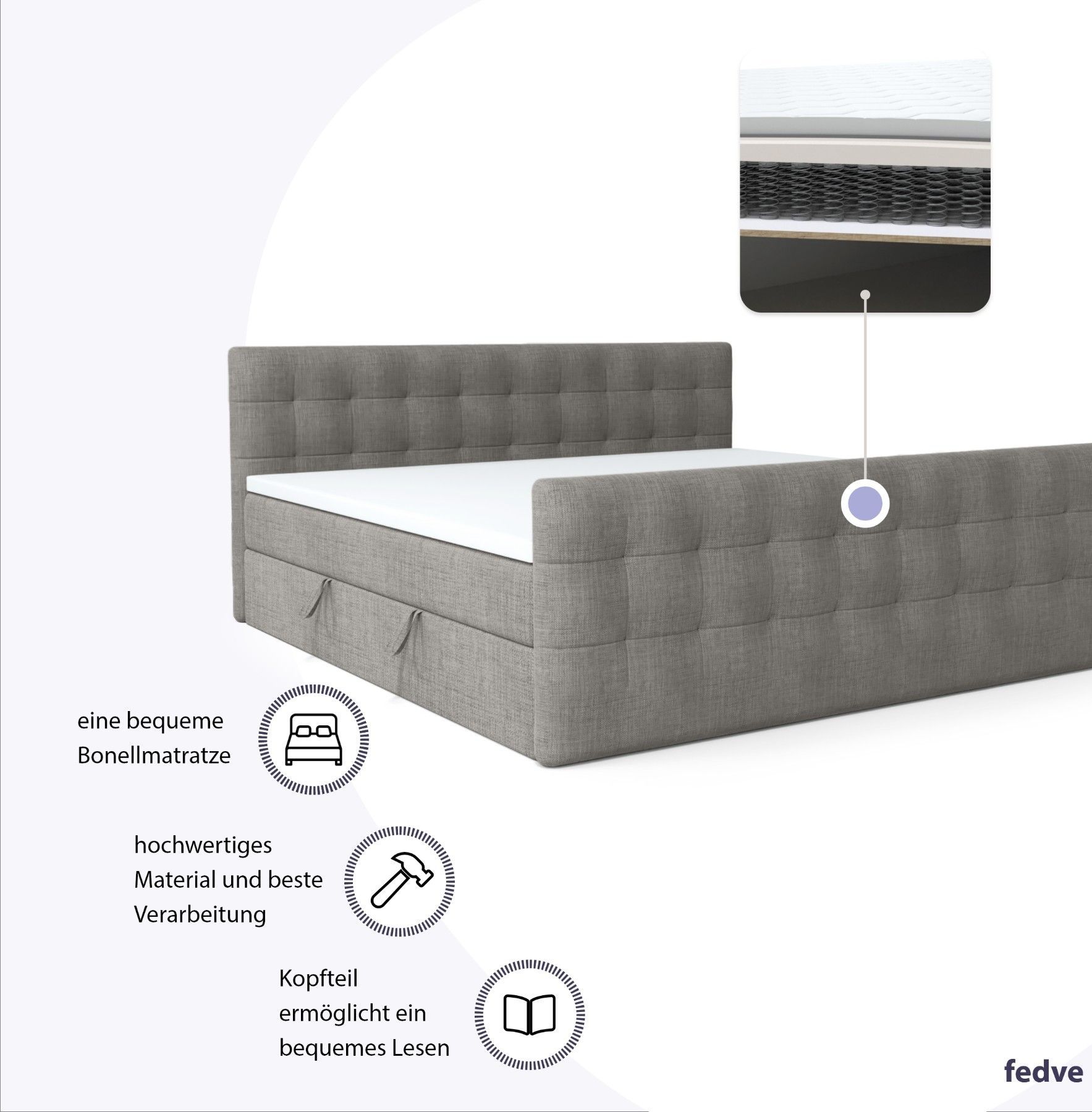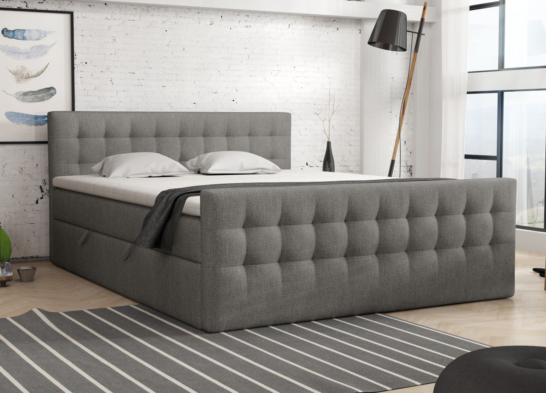 Boxspringbett Schlafzimmerbett Pumikas LUX mit Bettkästen Bonell-Matratze und Topper