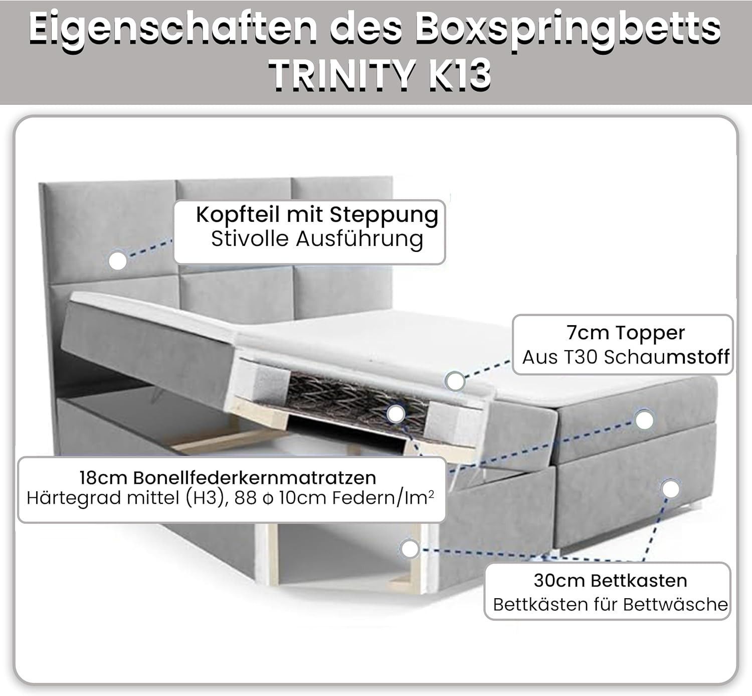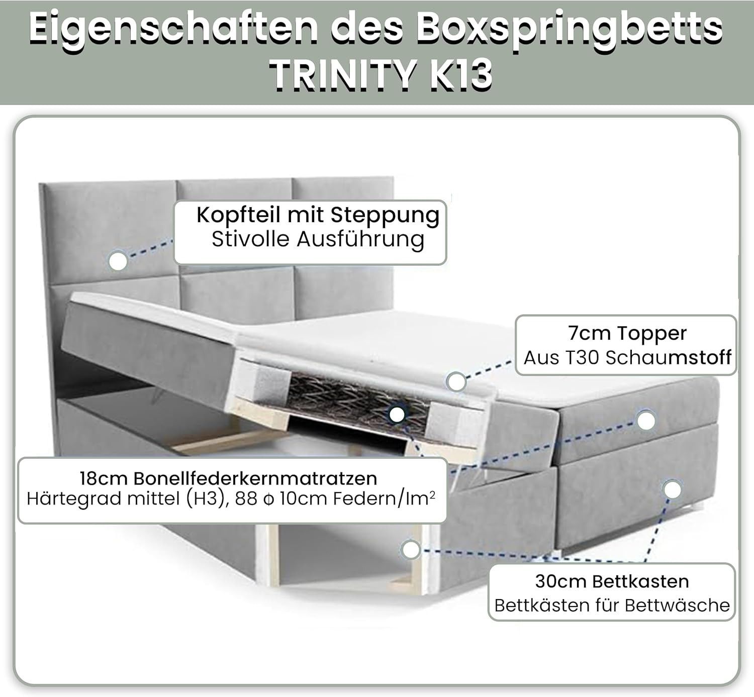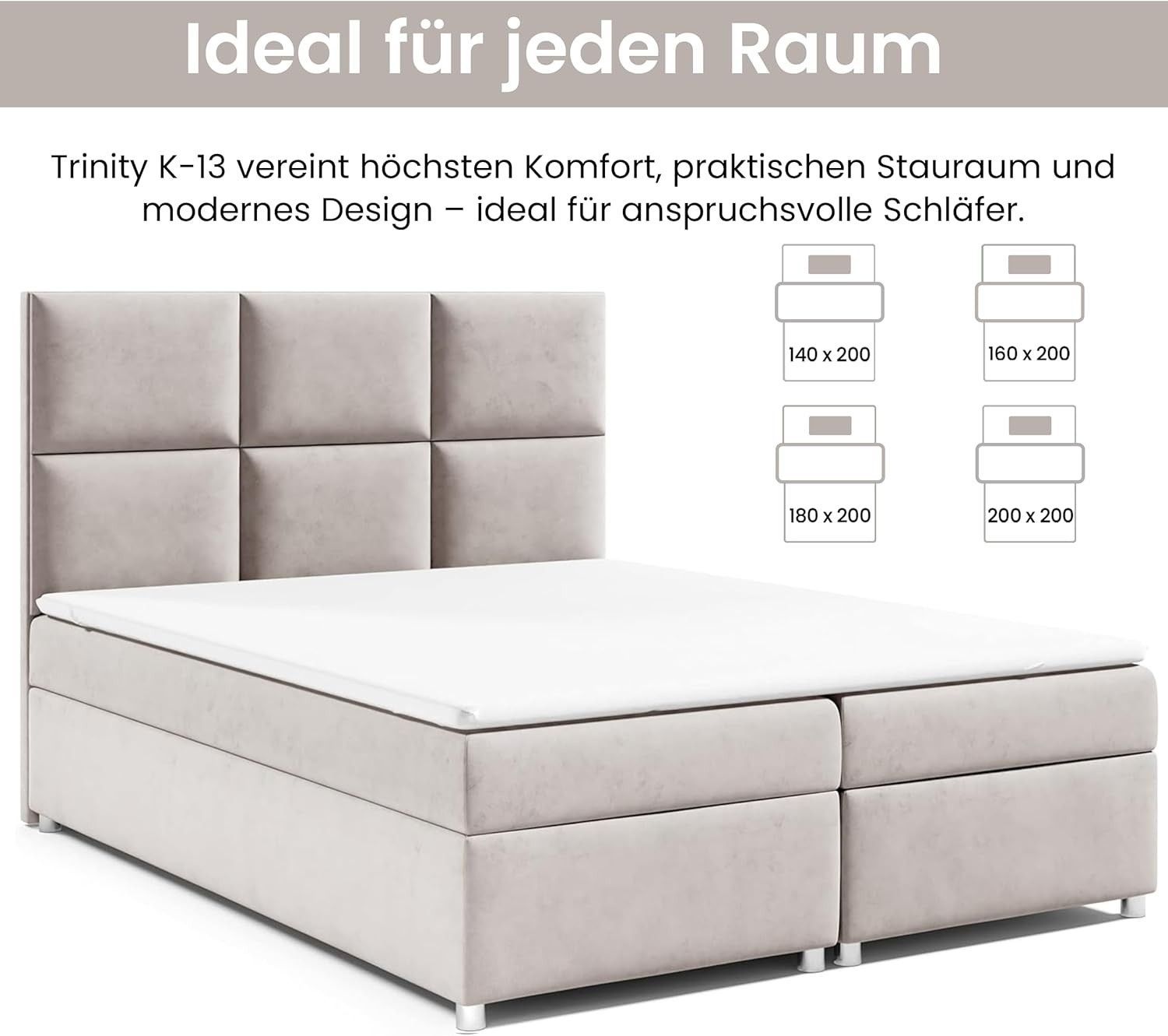 Boxspringbett Trinity K-13 mit Topper & Bettkasten -Kostenlose Lieferung zum Apartmen