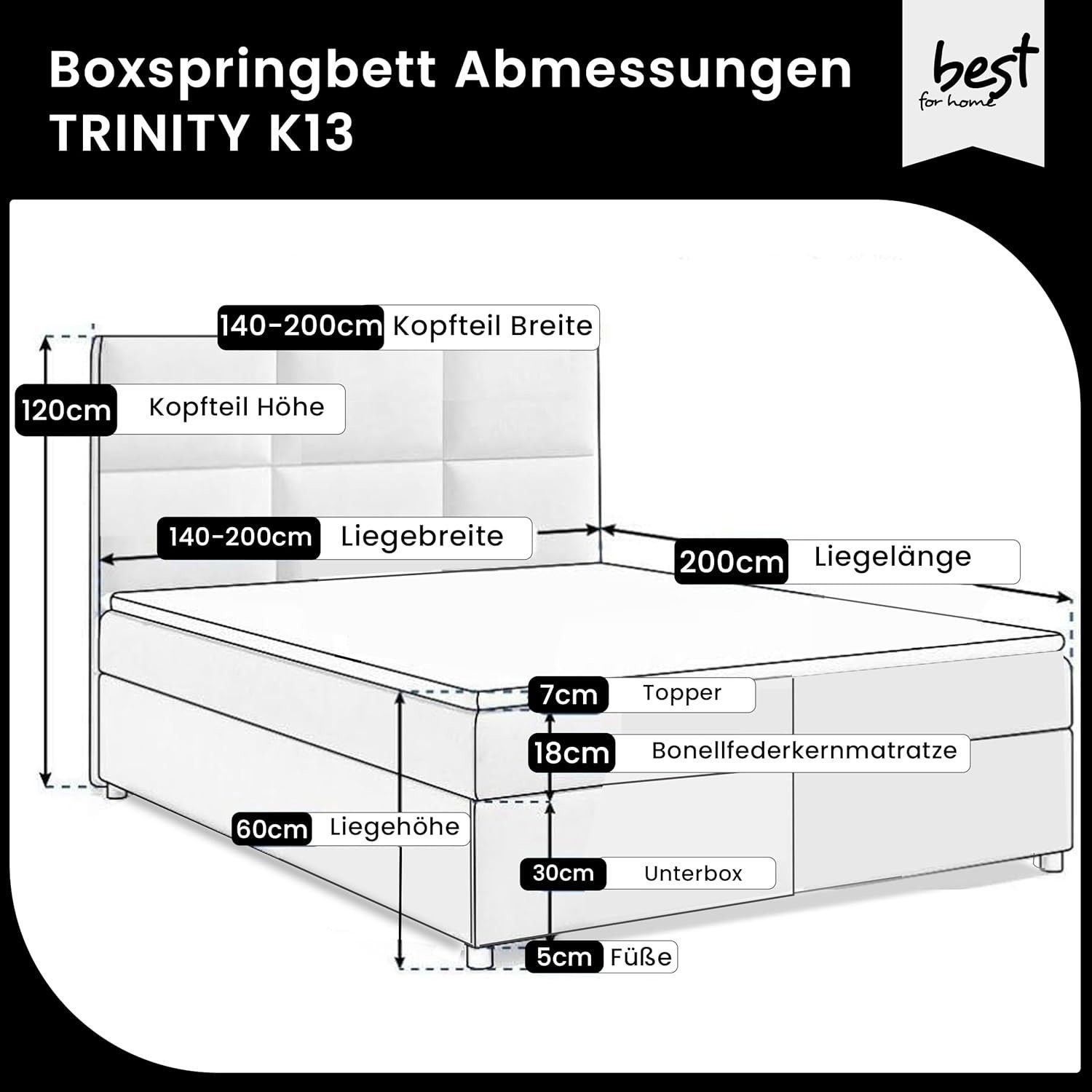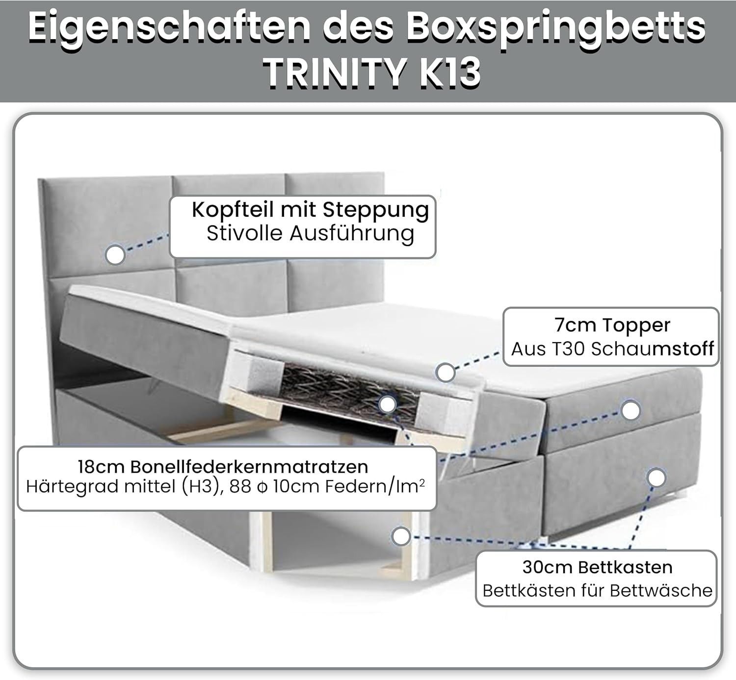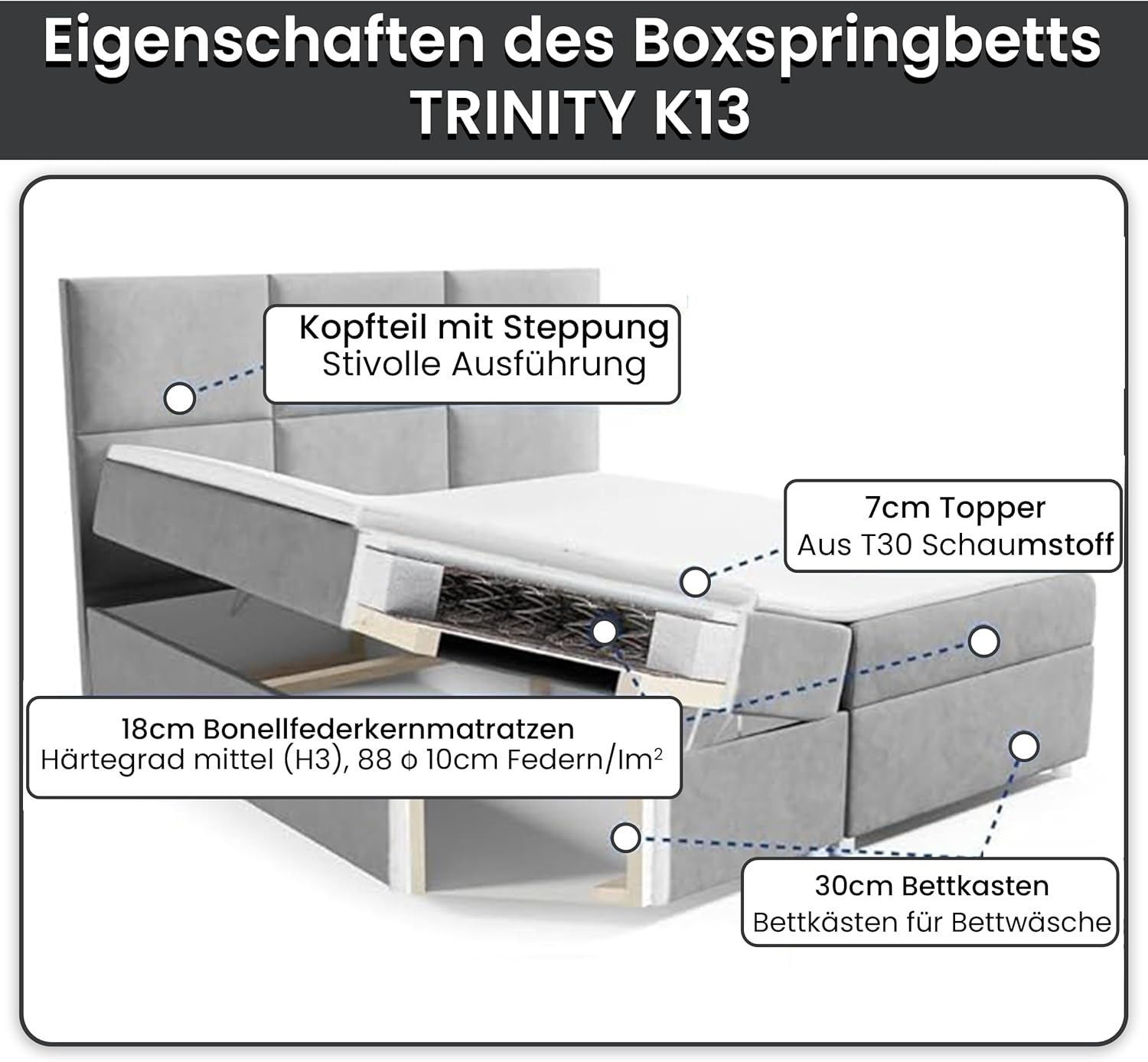 Boxspringbett Trinity K-13 mit Topper & Bettkasten -Kostenlose Lieferung zum Apartmen