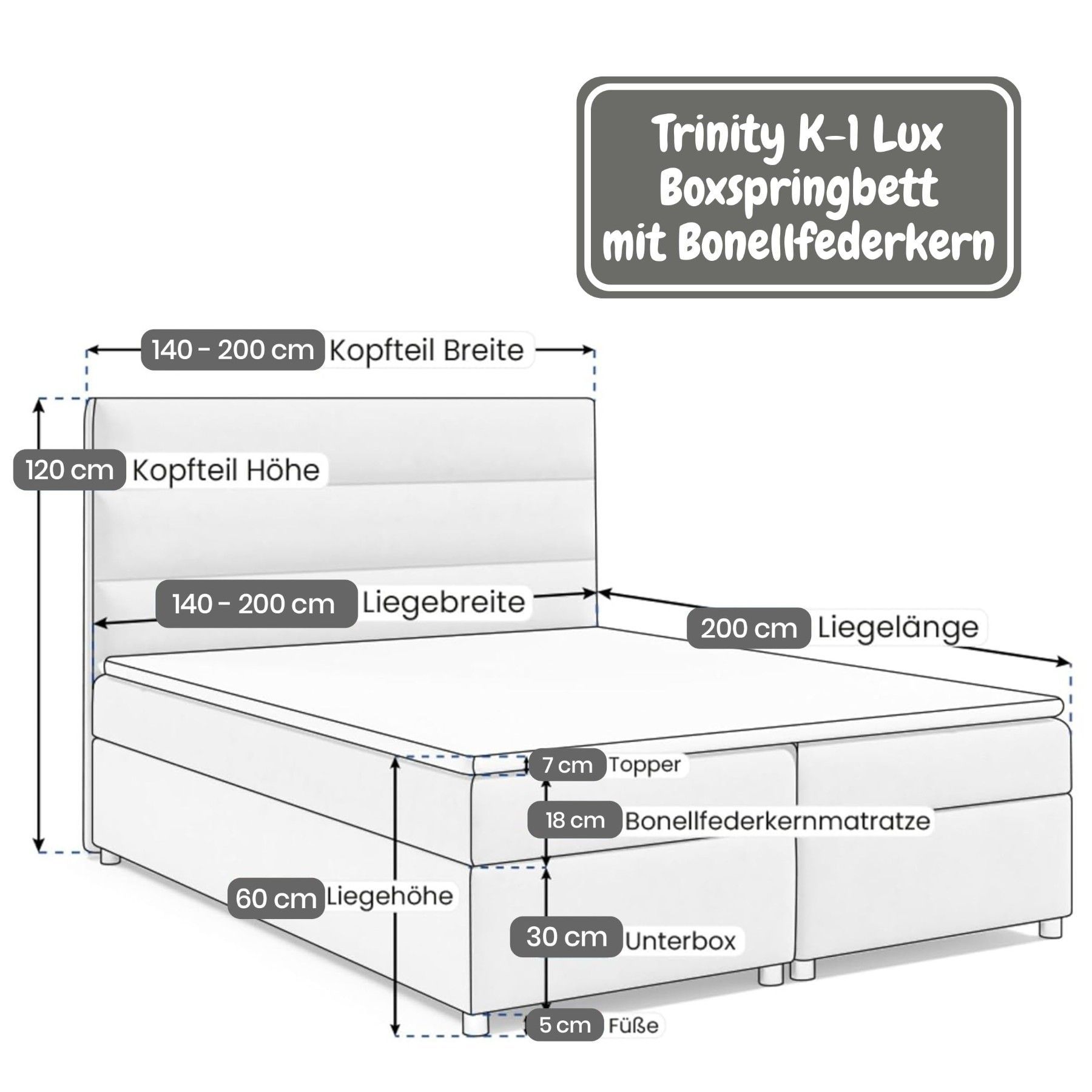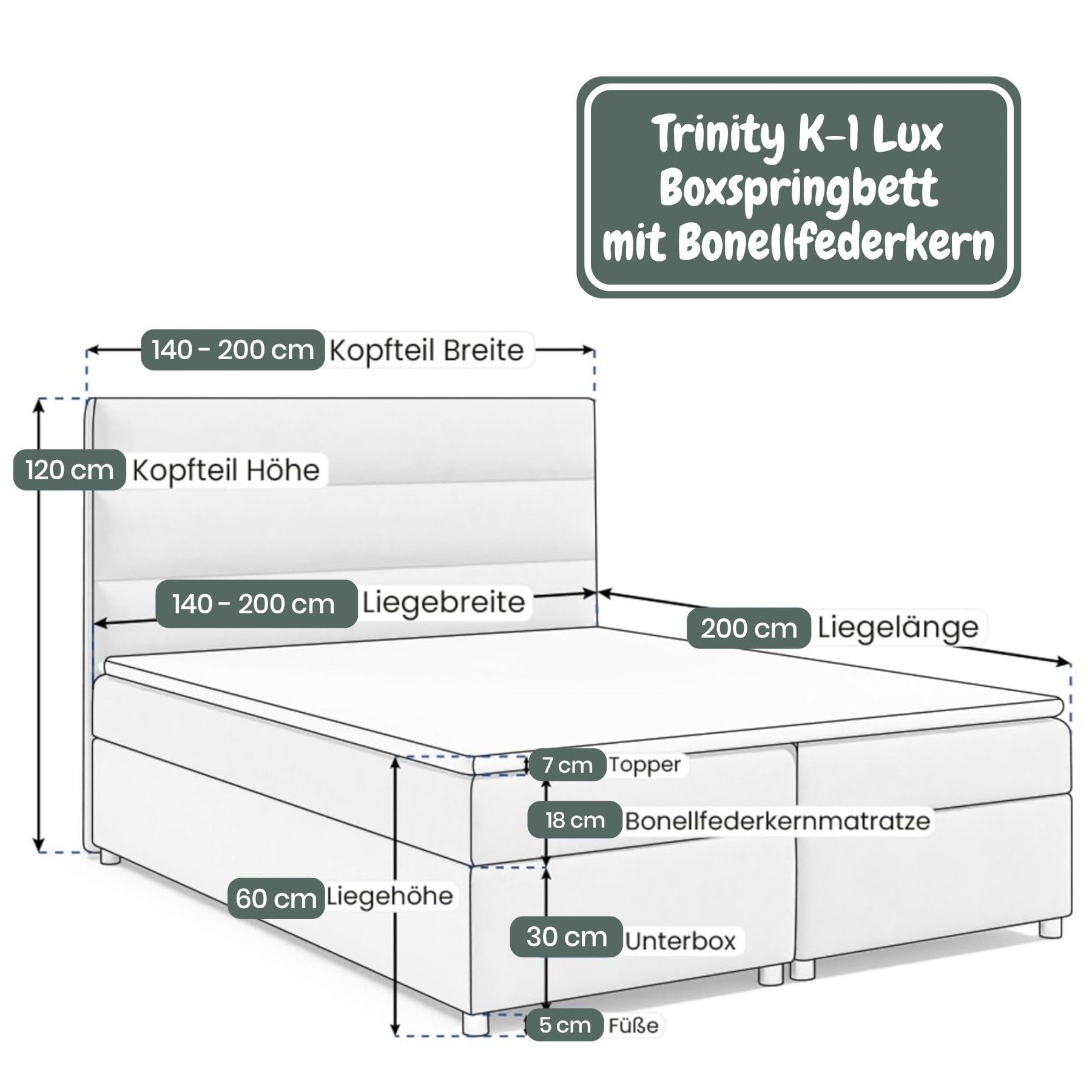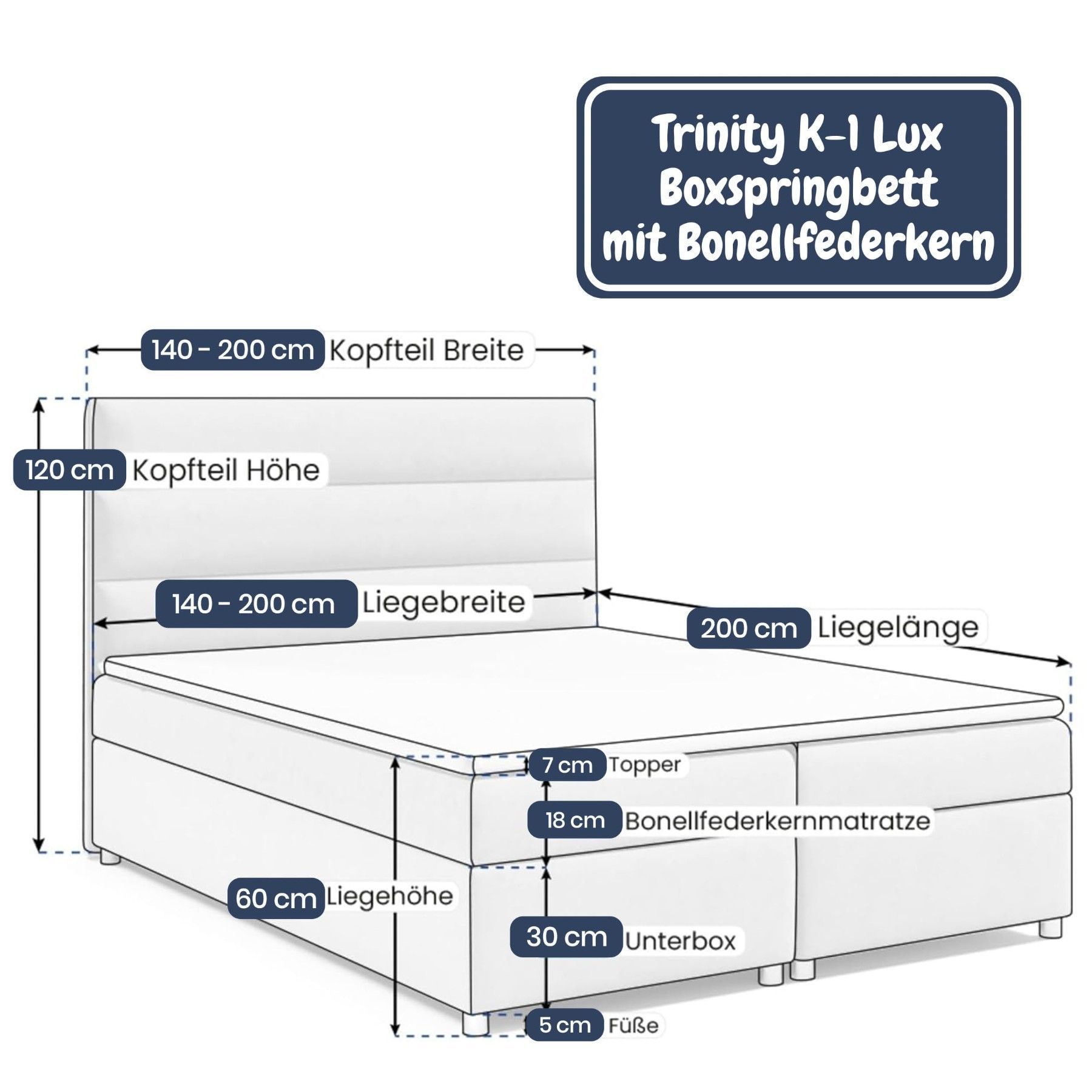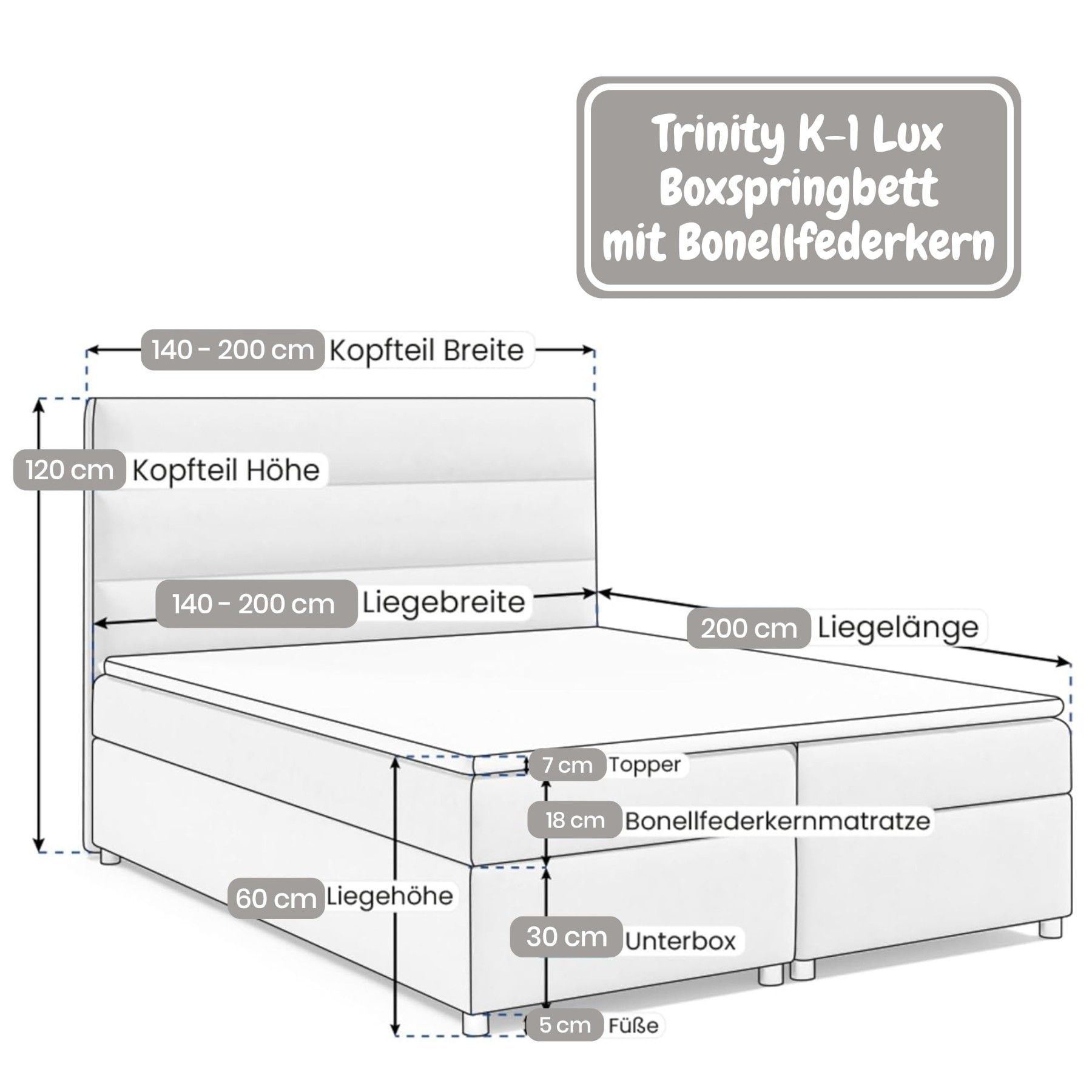 Boxspringbett Trinity K1 Lux mit Bettkasten, Matratze & Topper - Komfort & Stauraum