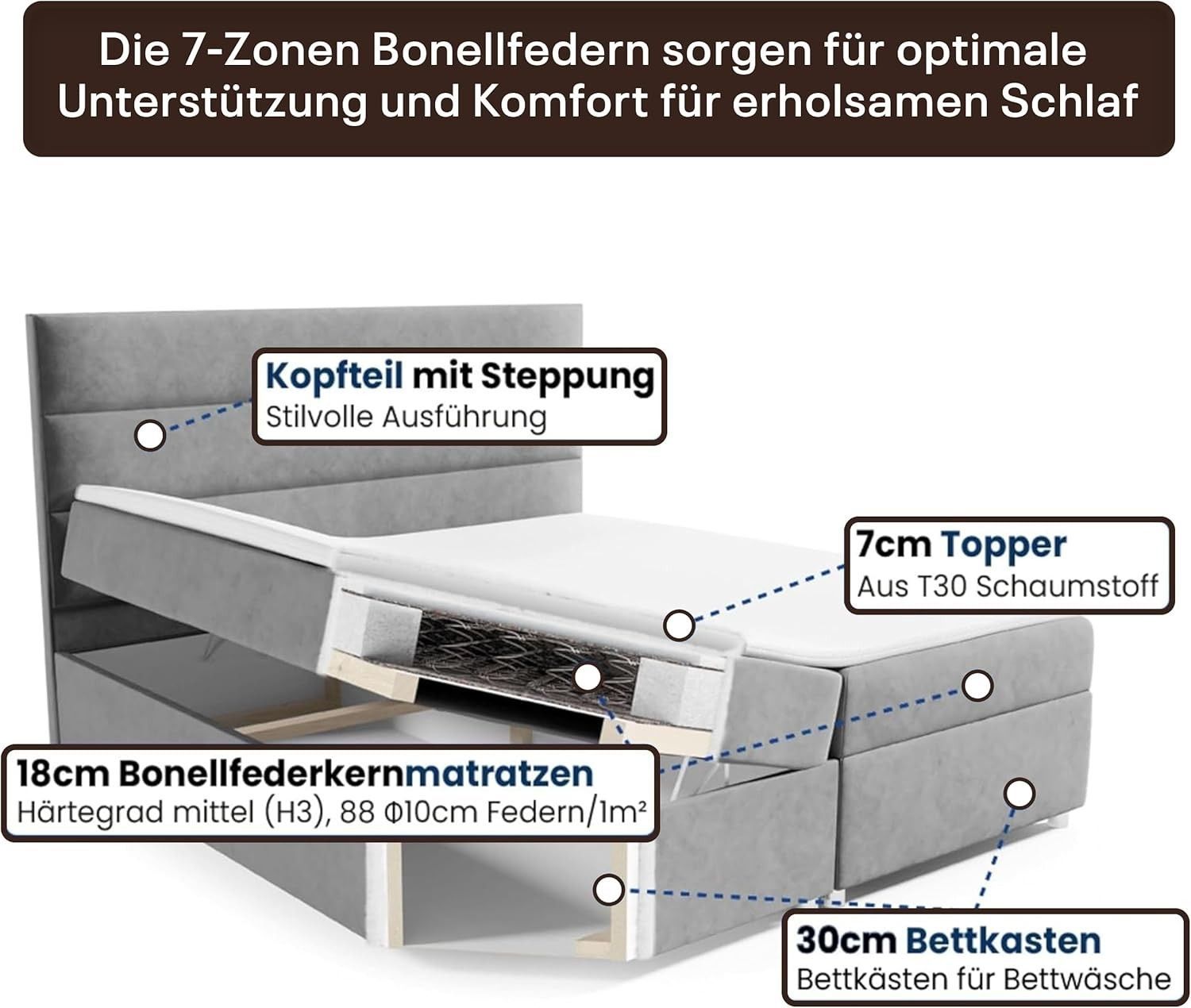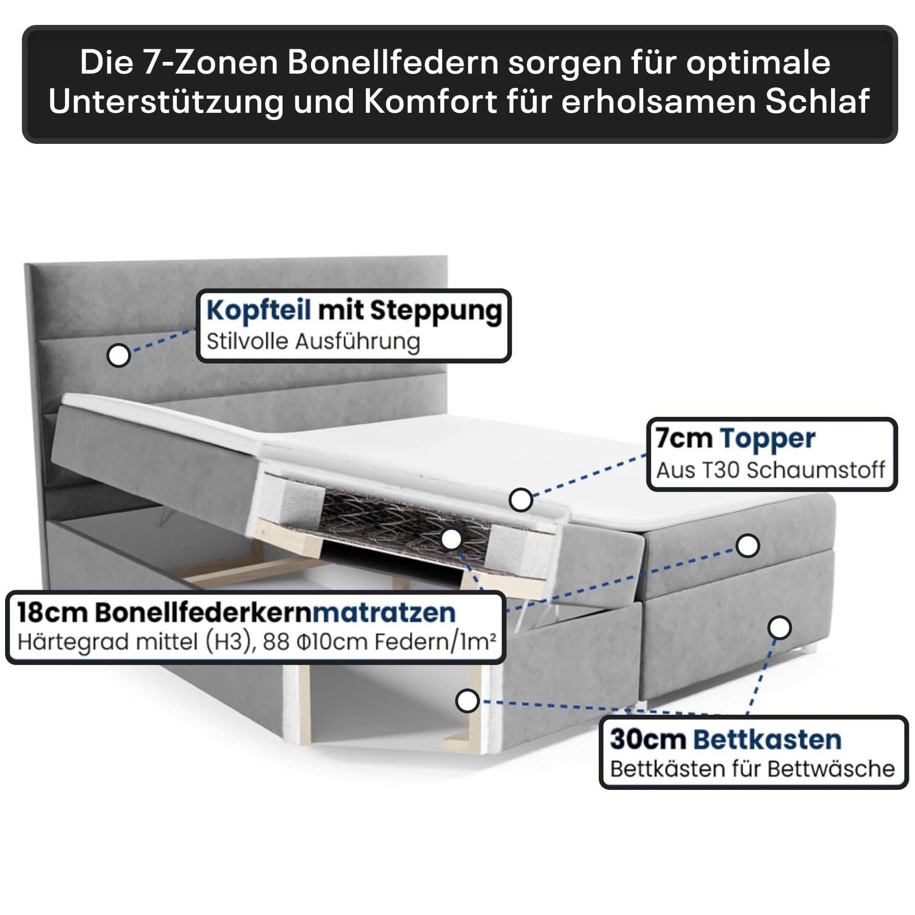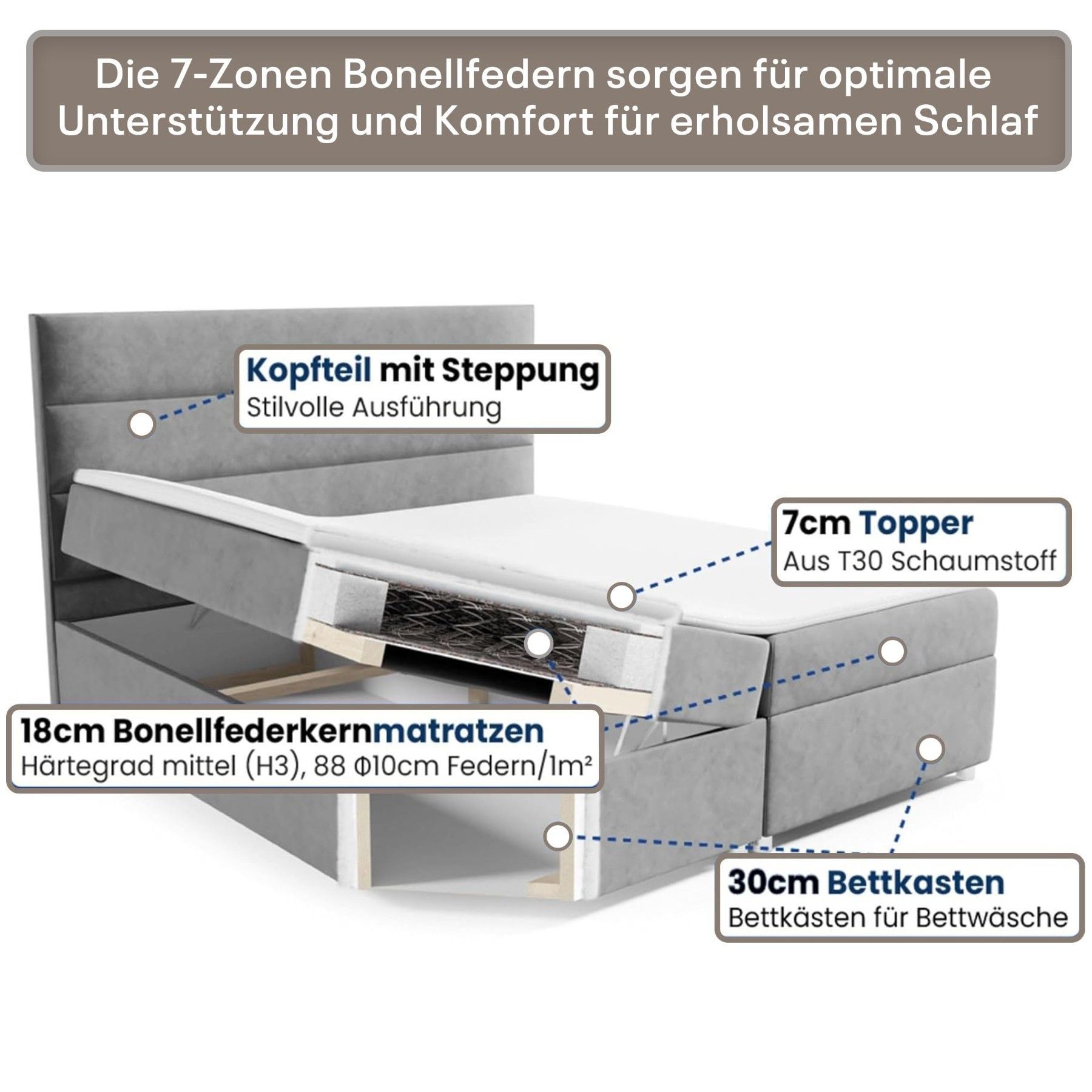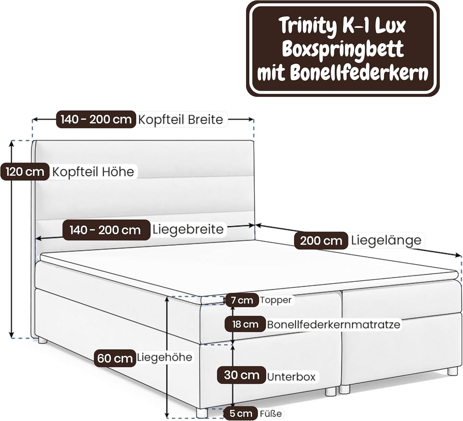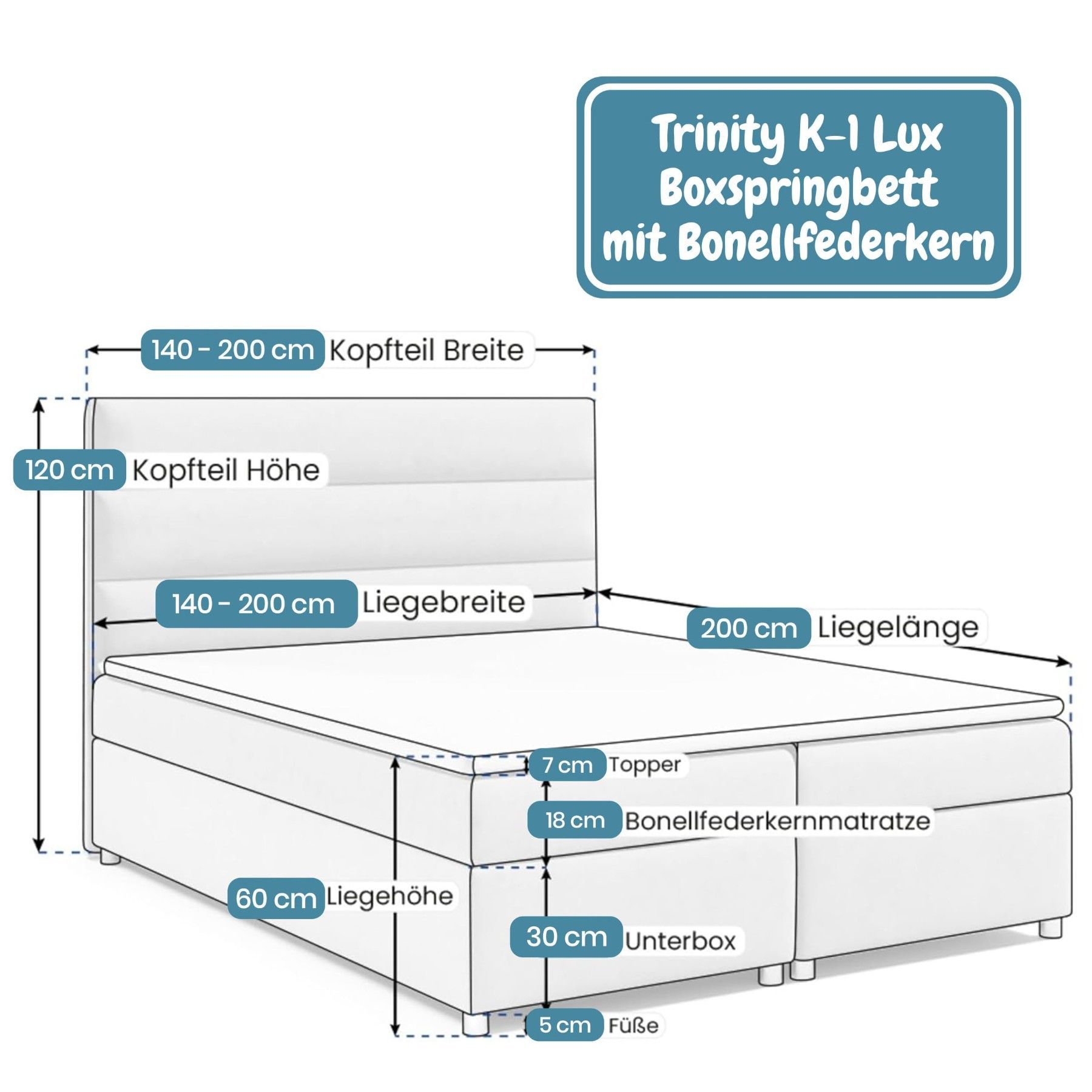 Boxspringbett Trinity K1 Lux mit Bettkasten, Matratze & Topper - Komfort & Stauraum