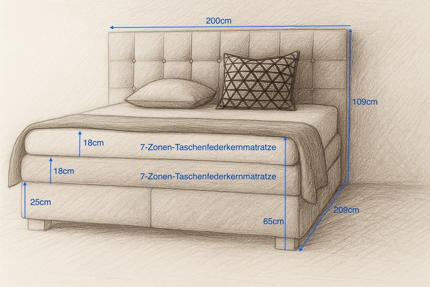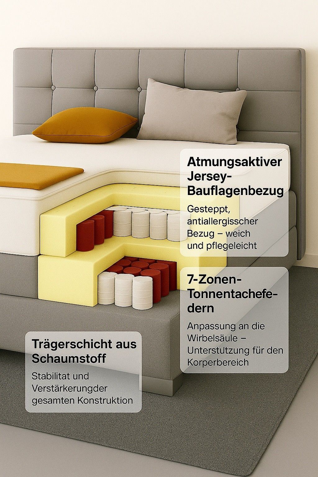 Boxspringbett VERONA mit zwei 7-Zonen-Taschenfederkernmatratzen und gepols