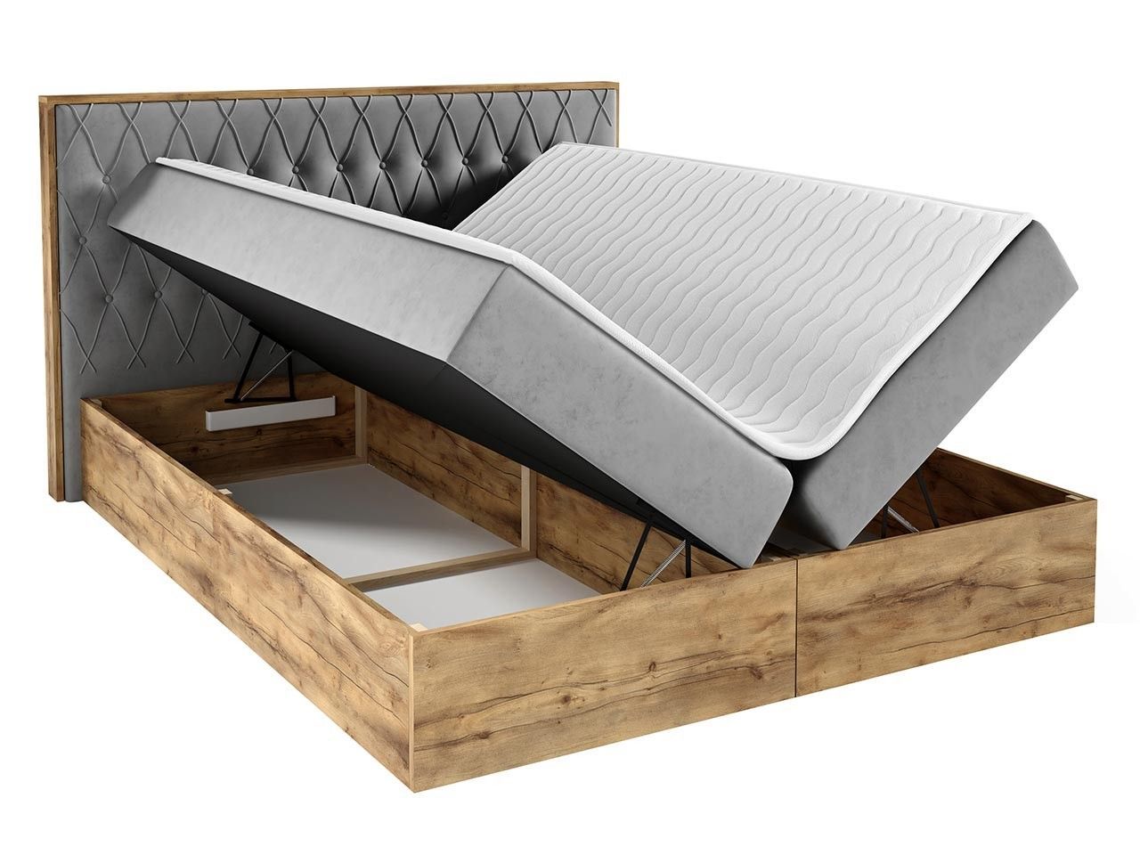 Boxspringbett Wood VI Doppelbett Ehebett Bettkasten Matratze Polsterbett Holz