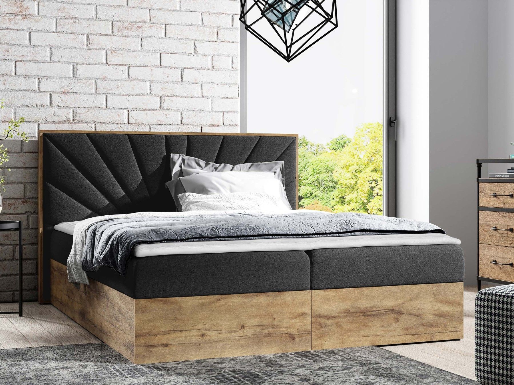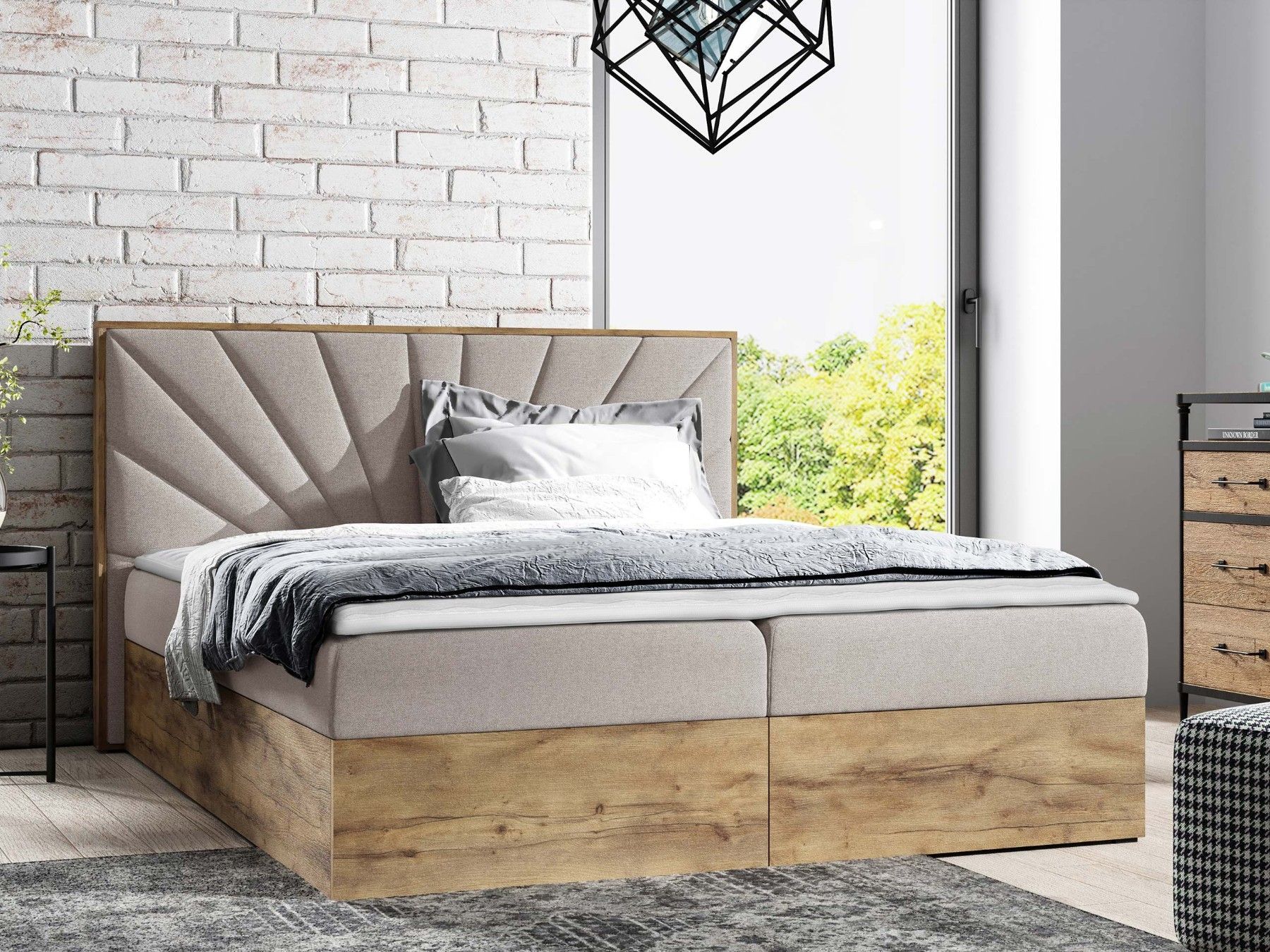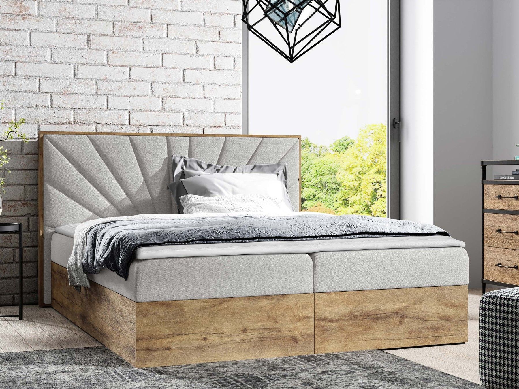 Boxspringbett Wood VII Doppelbett Ehebett Bettkasten Matratze Polsterbett Holz