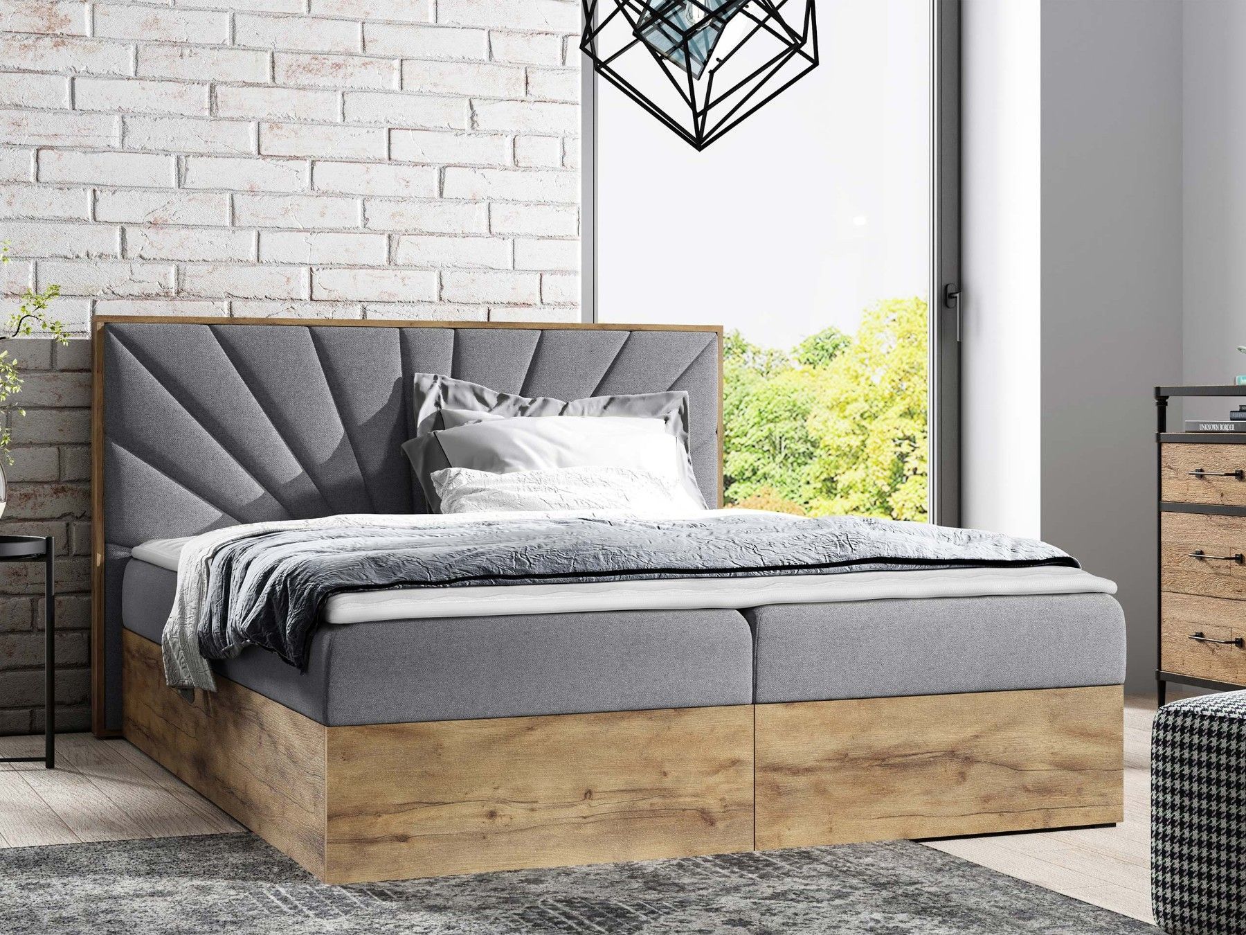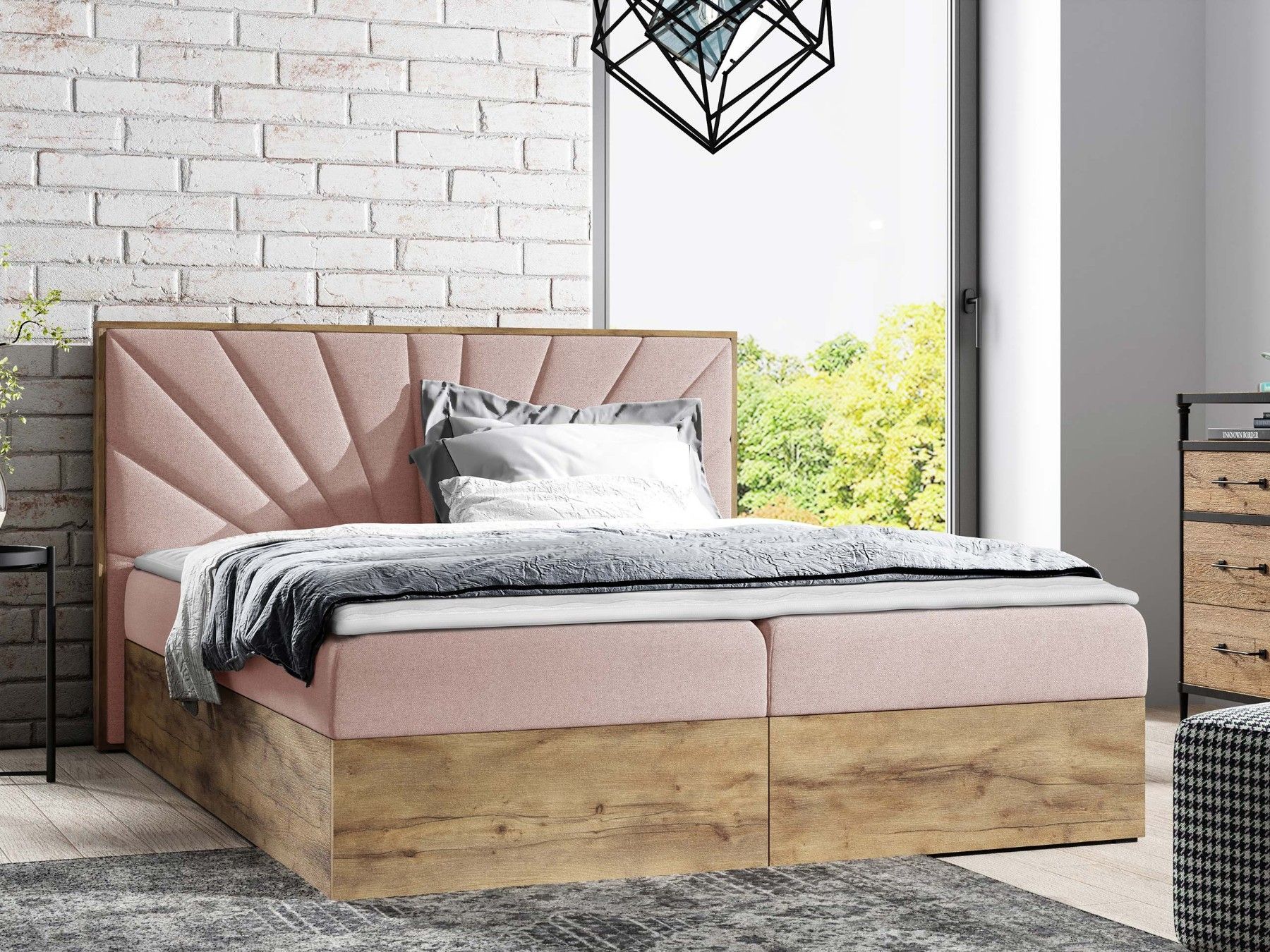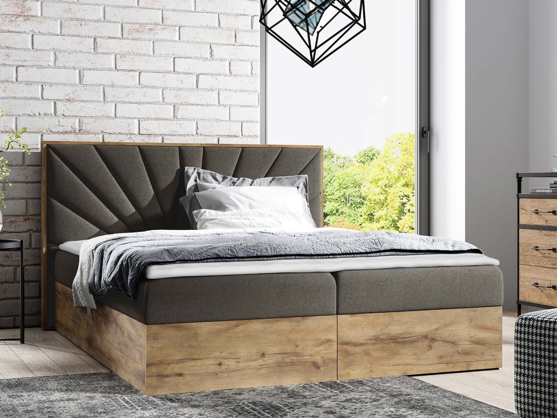 Boxspringbett Wood VII Doppelbett Ehebett Bettkasten Matratze Polsterbett Holz