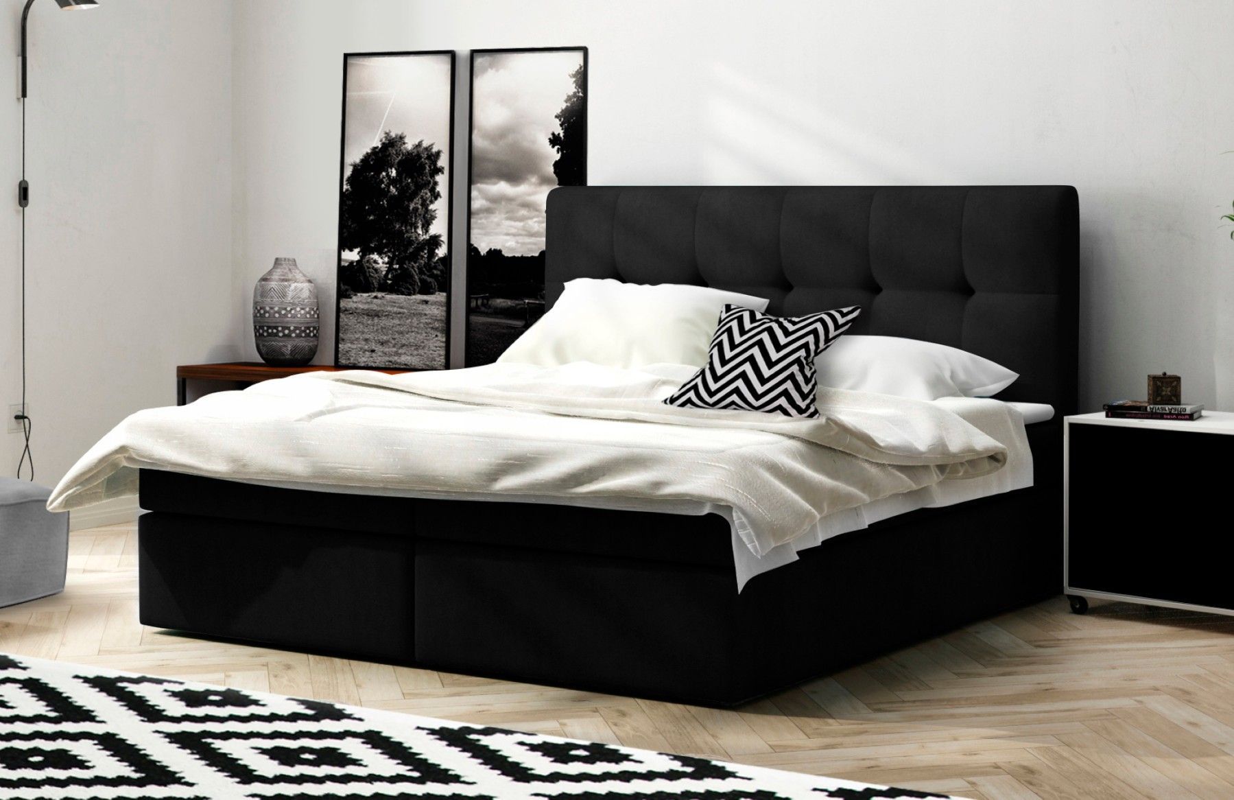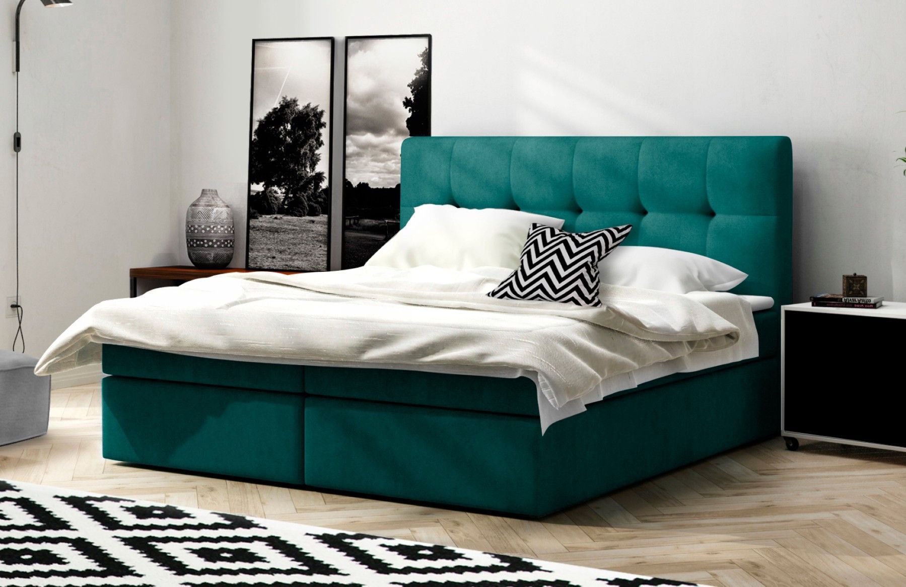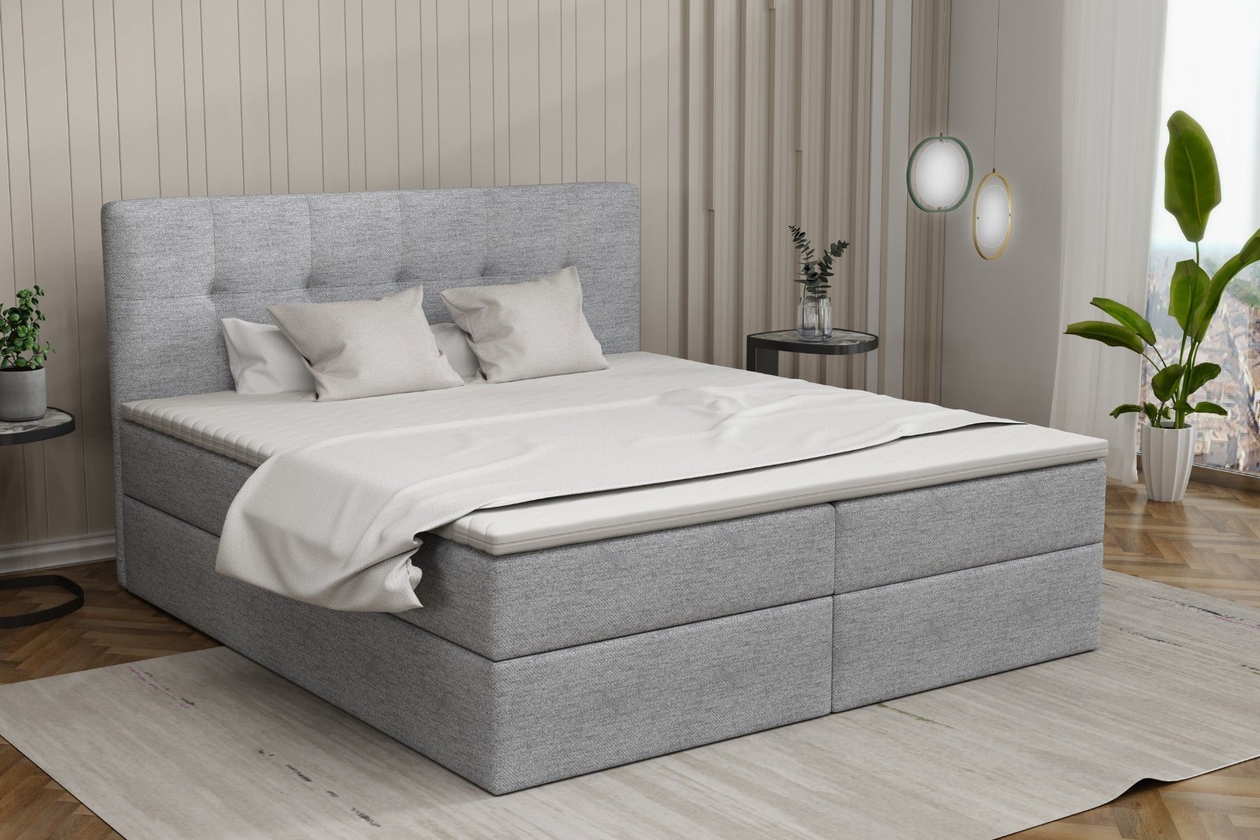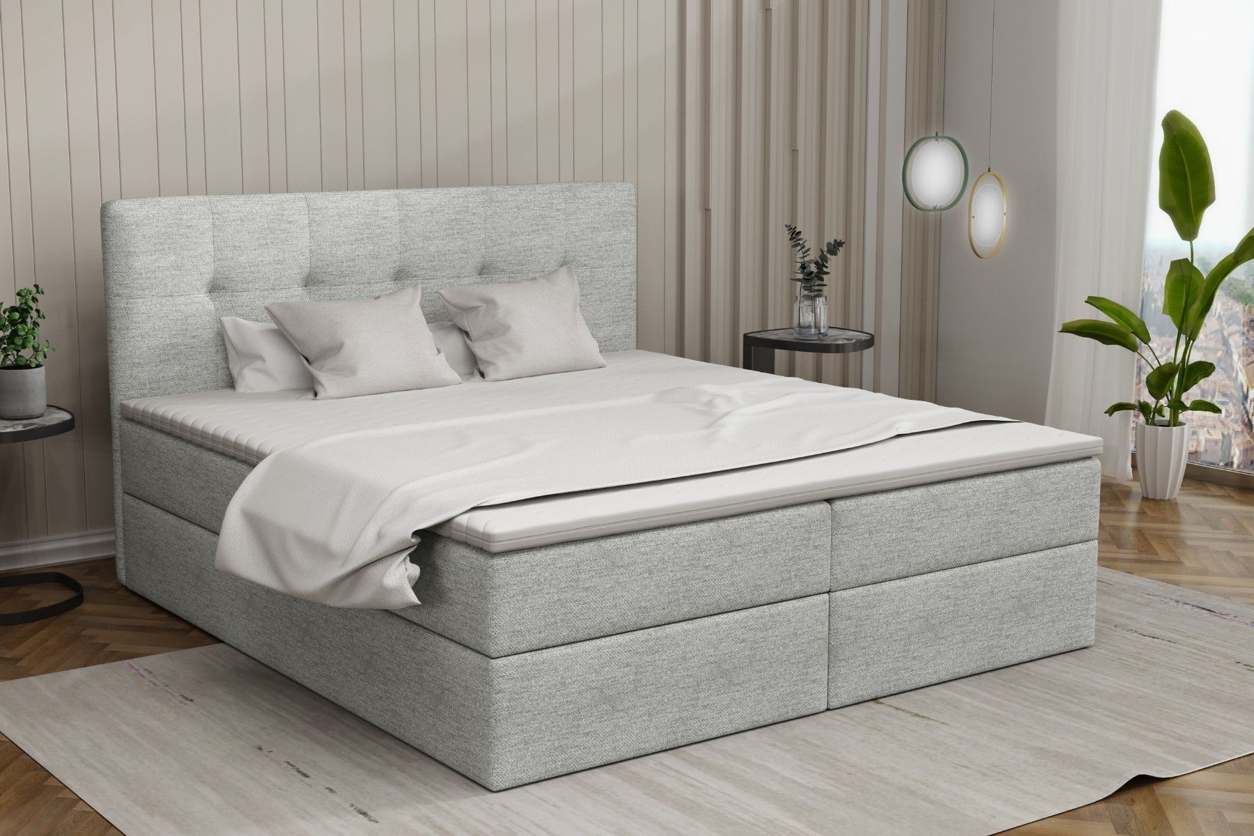 Boxspringbett + Topper Bett Stoff Holly Komfort und Stil vereint: Das Modell HOLLY ist ein stilvolles Möbelstück mit zwei geräumigen Schubladen, einer bequemen Auflage und einer großzügigen Liegefläche – eine perfekte Kombination aus Funktionalität und Design. Hochwertiges Material: Gefertigt