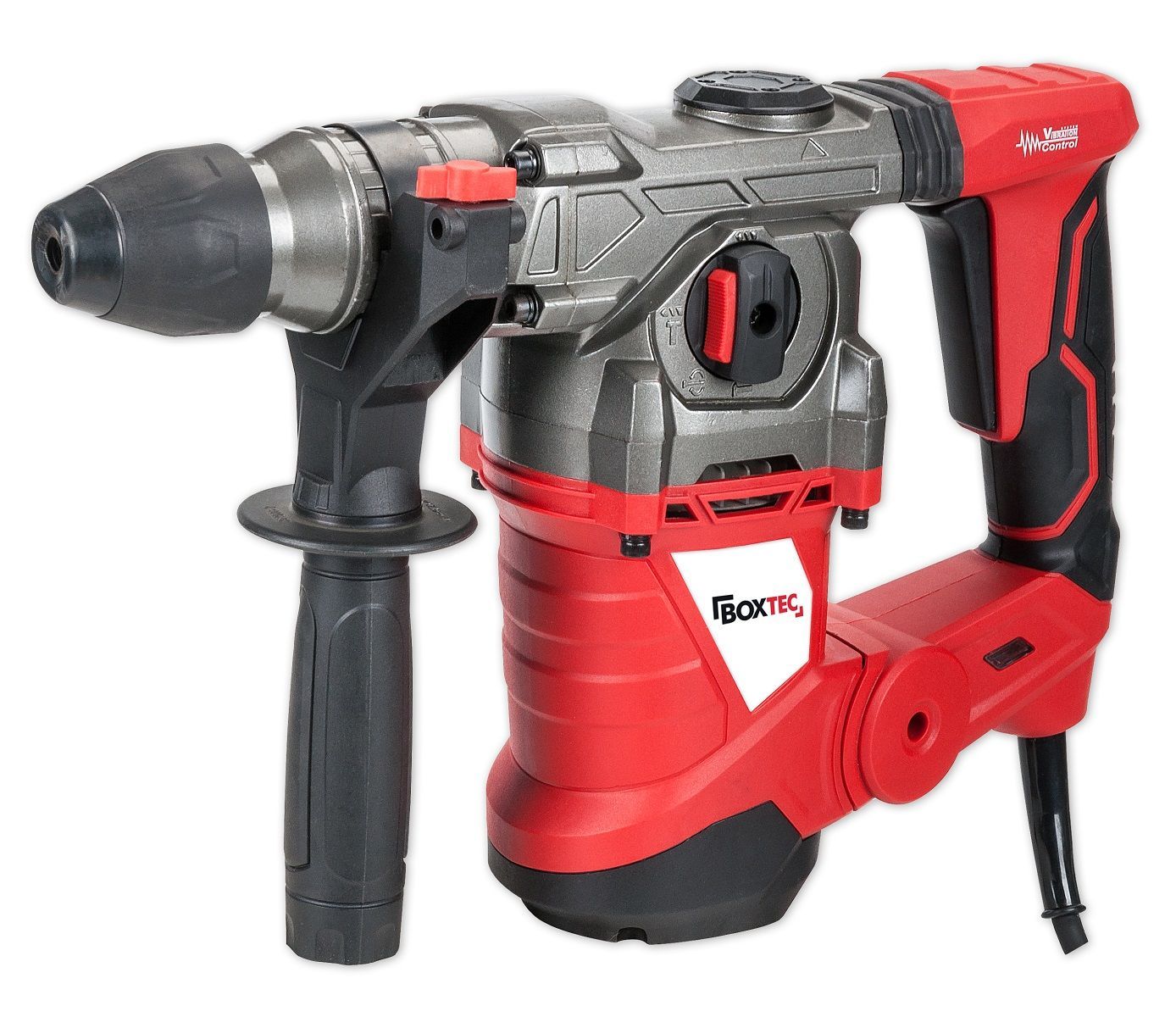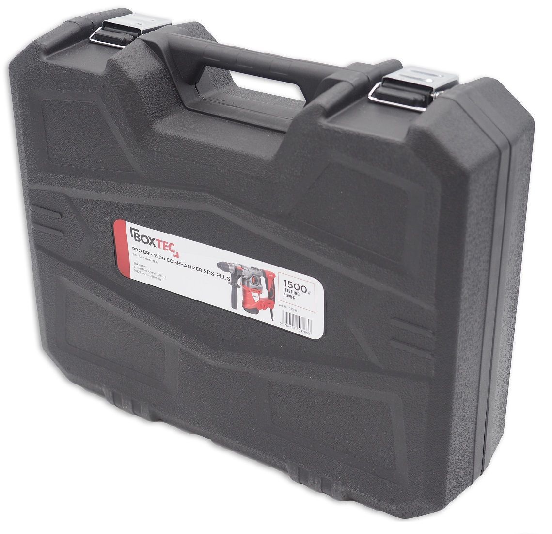 BOXTEC POWER: Kraftvoller 1500W-Motor mit SDS-Plus Aufnahme und stufenloser Geschwindigkeitskontrolle, 230V, max. Schlagzahl: 0-4.500 /min und einer max. Lehrlaufdrehzahl 0-850/min, Schlagenergie 6J.