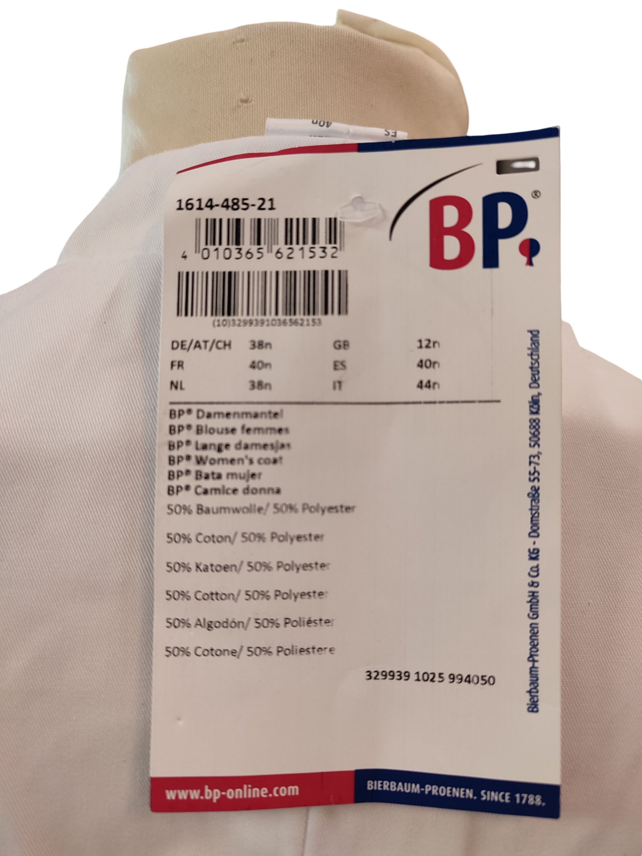 BP BP Damenkittel lange Ärmel hoher Kragen Weiß Gr. 38