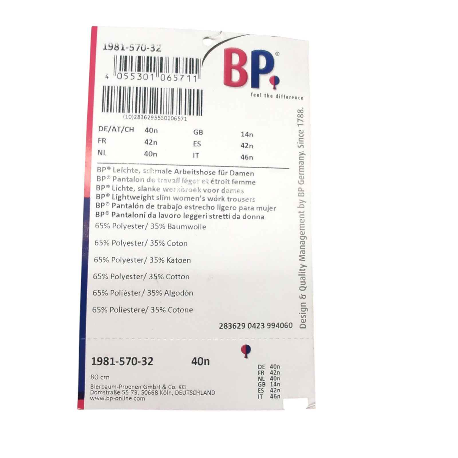 BP BP schmale Damen Arbeitshose elastisch Baumwolle Größe 40
